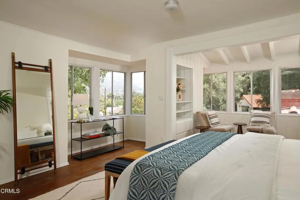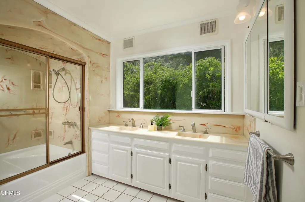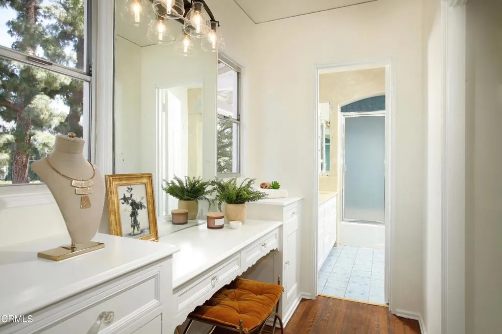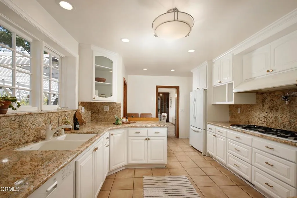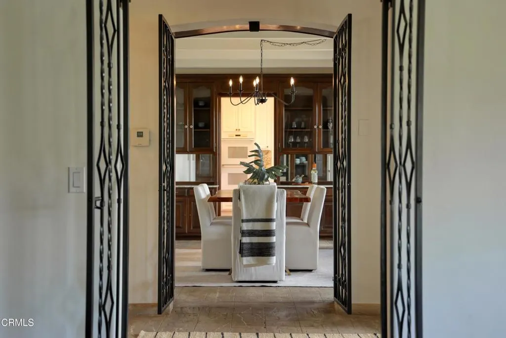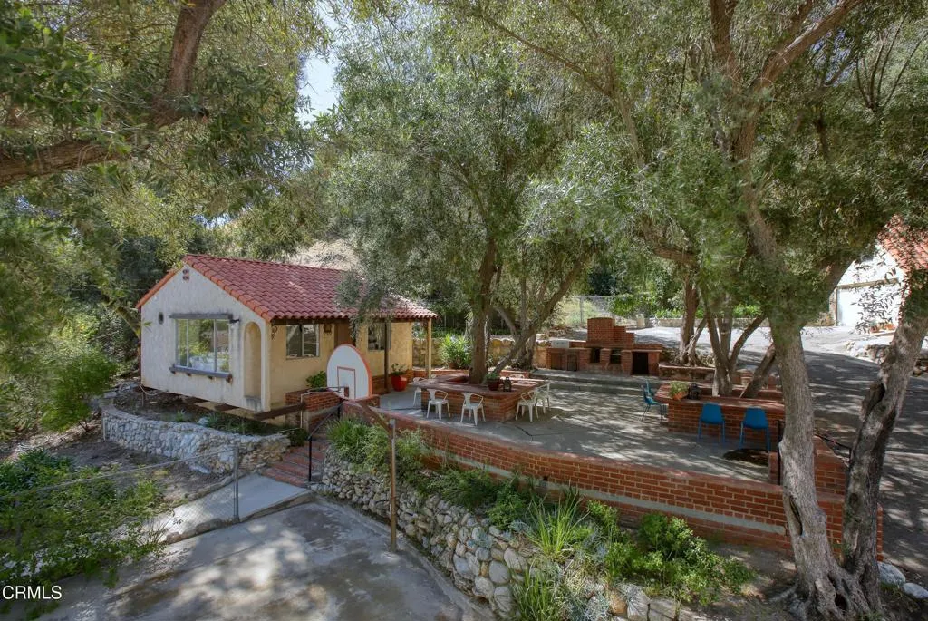 Tucked out of sight on over an acre of land bordering Shadow Hills, this 1935 estate feels like its own private world - layered, unexpected, and full of character. The grounds unfold in all directions, with a guest house, pool and spa, two-story garage, mature gardens, and even a stone chapel - each space offering something different to explore and make your own. Beyond the front gate at the street, a long, winding drive builds anticipation before revealing the house perched above, welcoming you to its stone porch and sunlit patio. Inside, the 4,301 sq ft main home retains its character with wood-beamed ceilings, stone and hardwood floors, wrought iron details, thoughtfully crafted built-ins and intimate seating nooks. Just off the kitchen, a wood-and-stone bar room feels like a hidden bonus space you didn't know you needed. The main level blends formal and relaxed living, with a bright living room, tiled family room, and formal dining space that flows into the kitchen, pantry, and laundry. A large bathroom off the living room is convenient for guests, and the additional bedroom and bath on this floor - likely used originally as a maid's quarters - adds more flexibility. Upstairs, the layout opens up with three more secondary bedrooms, a hall bath, sunroom, and a primary suite with fireplace seating area and a one-of-a-kind stained-glass dressing space - once used as an indoor chapel. The second floor offers plenty of room to reimagine: studio, office, library, or whatever fits your life, with mountain views as the backdrop. Outside, the grounds are designed for both entertaining and retreat. Lounge by the pool and spa, host dinners under the olive grove, set up a game on the sport court, or carve out your own creative corners across the patios and terraces. The detached 465 sq ft guest house is ideal for guests, multigenerational living, a home office, artistic space, recording studio, or future income potential. This is an incredibly unique, character-rich property with space to live, create, and grow into. Come experience a home that gives you room for a little more freedom and individuality.