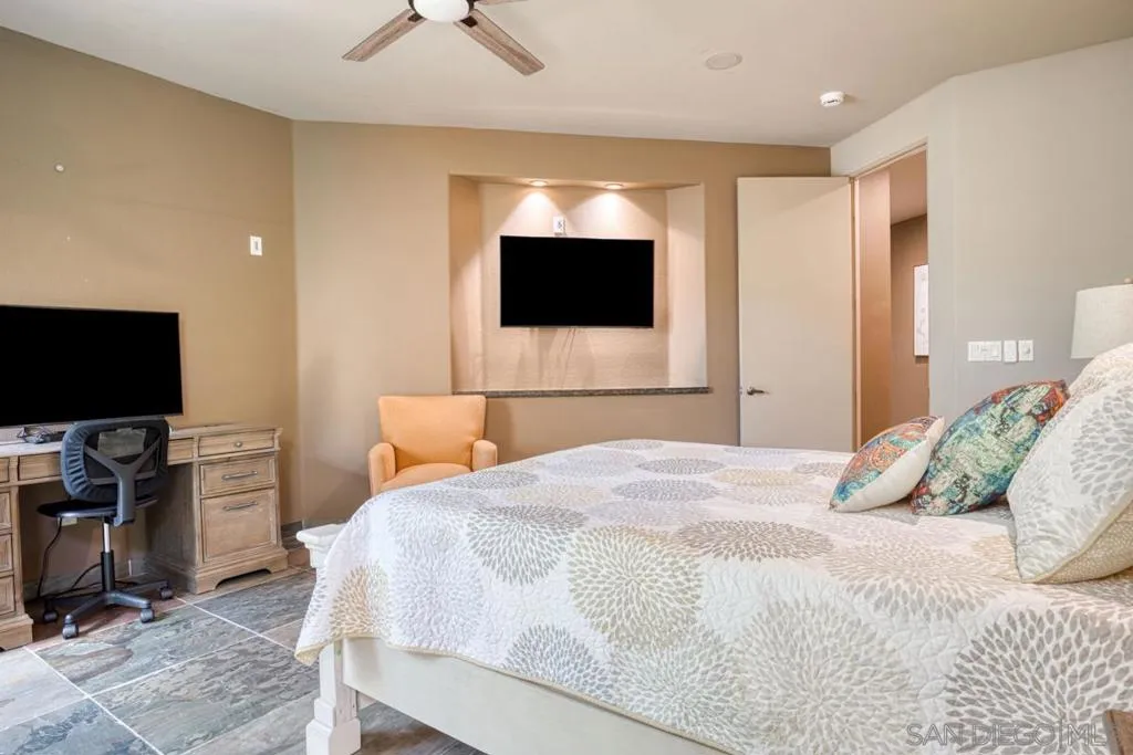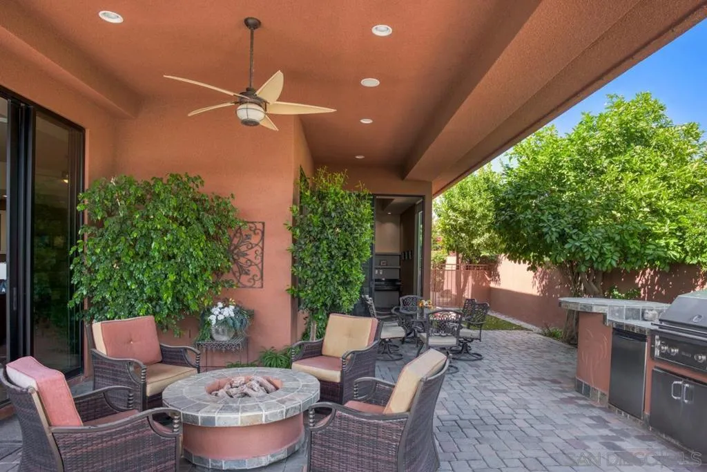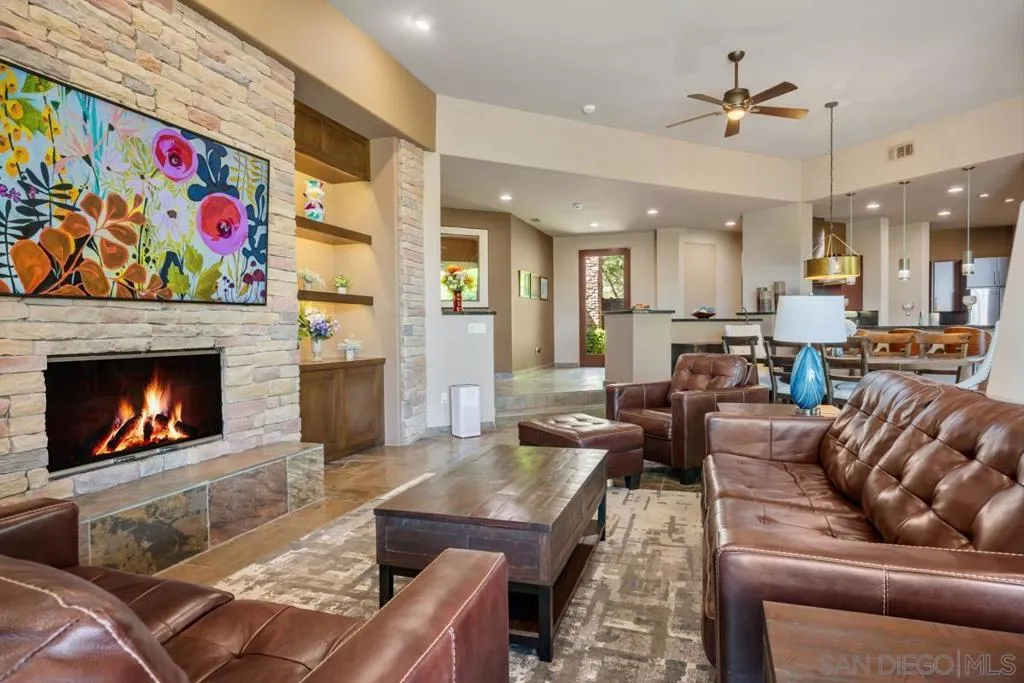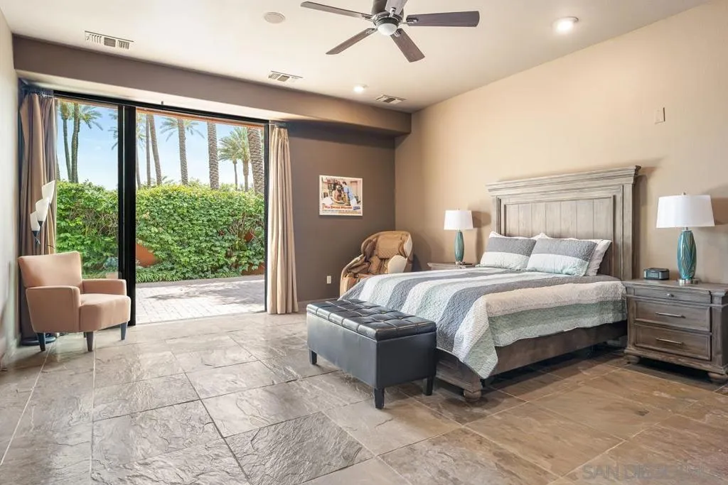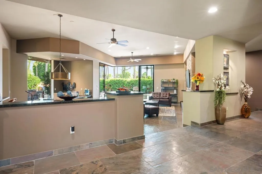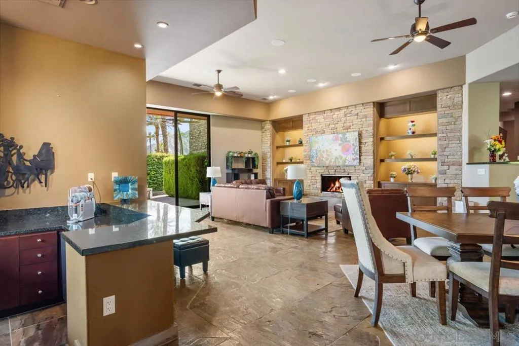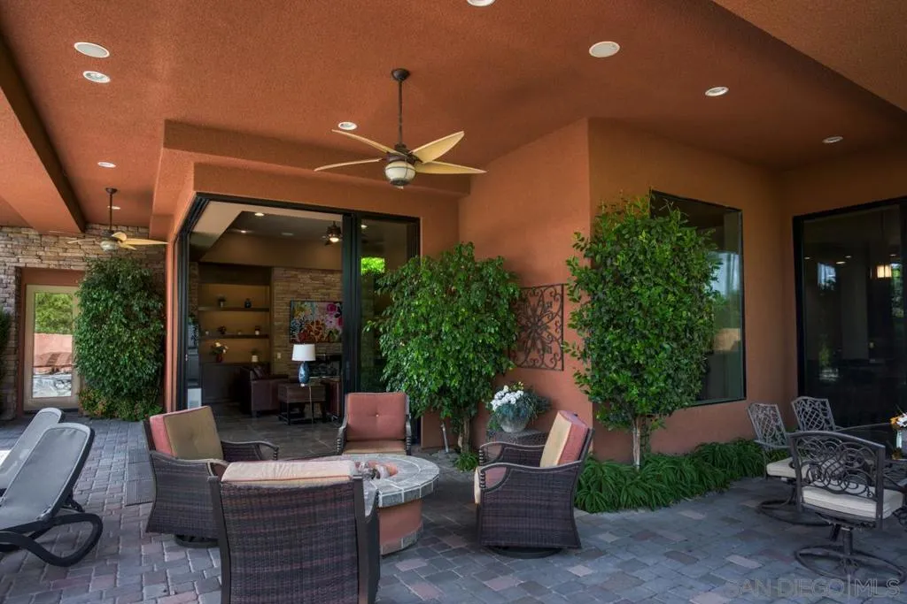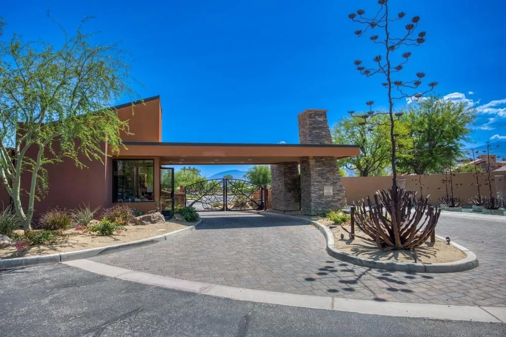 Nestled within the prestigious Palmilla community, this exceptional residence offers a rare blend of privacy, luxury, and breathtaking surroundings. Positioned on an expansive, secluded cul-de-sac lot, the home captures stunning views of the Santa Rosa Mountains and reflects true pride of ownership throughout. The chef’s kitchen is beautifully appointed with high-end stainless steel appliances, anchored by a generous center island—perfect for entertaining and everyday living. The open-concept living room impresses with soaring ceilings, a striking fireplace framed by custom built-in cabinetry, and a stylish bar area that enhances the home’s inviting atmosphere. Adding to the home’s versatility is a dedicated home theater, thoughtfully designed to also function as a potential third bedroom or private office if desired—ideal for evolving lifestyle needs. The thoughtfully designed layout places the primary suite at the rear of the home for added privacy, complete with direct backyard access. An additional en-suite bedroom provides comfort for guests, while the den and secondary bedroom each open to their own private courtyards, creating tranquil indoor-outdoor retreats. The backyard is an entertainer’s dream, featuring a meticulously designed pool and spa area with a covered patio, lush landscaping, and ambient lighting that creates multiple spaces for relaxing and gathering. Recent upgrades include new pool equipment and pumps, as well as a rebuilt spa. Dual water heaters with a recirculating system add to the home’s efficiency. Truly a must see! Residents enjoy the benefits of a well-maintained HOA, including 24-hour guard-gated security, trash service, front landscaping, and common area maintenance. The HOA also maintains the community’s scenic lakes and provides exterior painting every eight years, ensuring lasting beauty and peace of mind in this sought-after neighborhood.