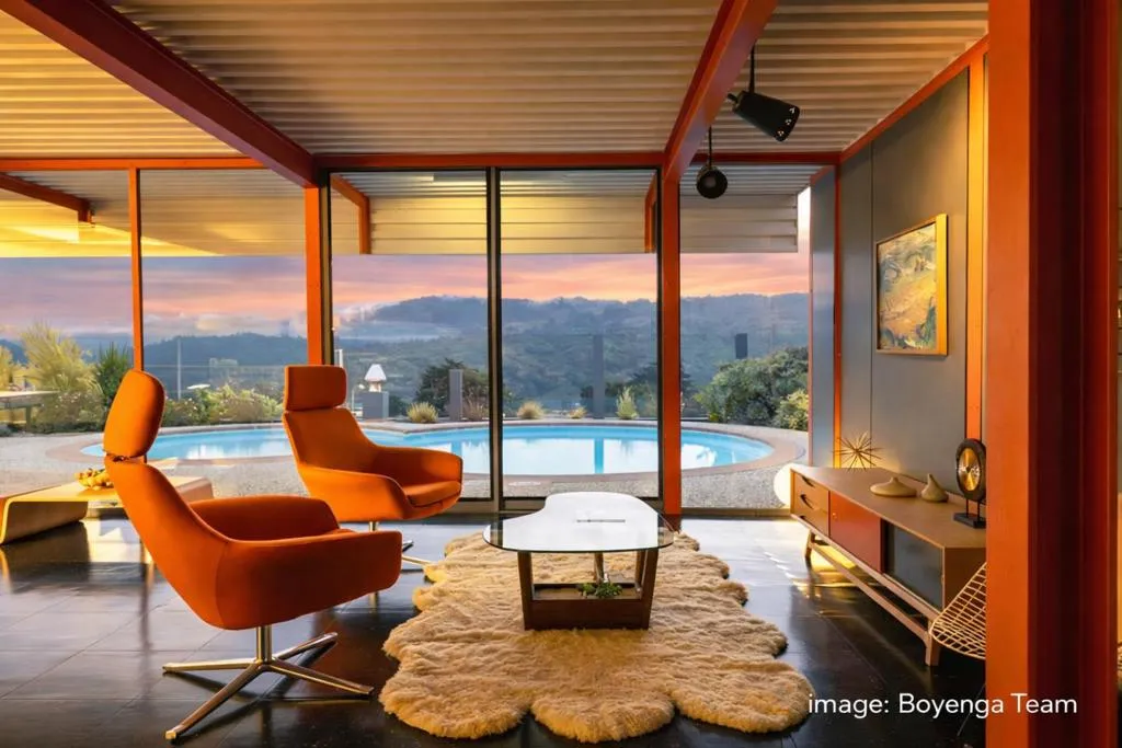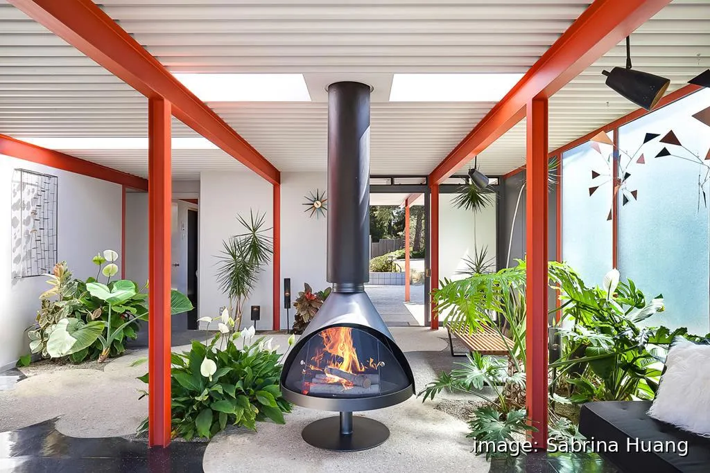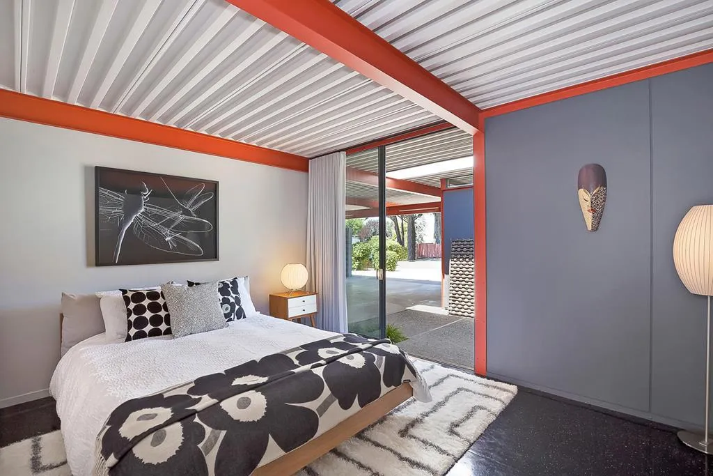 A rare architectural offering this one-of-a-kind 1956 Eichler X-100 prototype by Jones & Emmons represents a pivotal moment in mid-century modern design. Commissioned by Joe Eichler, the home showcases six exposed steel I-beams, eliminating interior load-bearing walls and creating a dramatic open, light-filled environment with seamless indoor-outdoor flow. Thoughtfully restored while honoring its original vision, recent updates include fresh interior/exterior paint, recoated foam roof, refinished vinyl and concrete floors, updated radiant heating, curated furnishings, and refreshed landscaping inspired by original landscape architect Douglas Baylis. The home is organized around two private garden atriums with in-ground planting beds, while 32 feet of skylights flood the interiors with natural light. Signature materials, steel, glass, and Formica, highlight the home's authentic modernist character. Built-ins and kitchen elements are fully integrated into the architecture. Debuted in 1956, the X-100 gained national attention and influenced generations of modern residential design. Shaped CA Modernism. Listed on the National Register of Historic Places, this is a true collector-grade property ideal for design enthusiasts, historians, and those seeking a singular living experience.