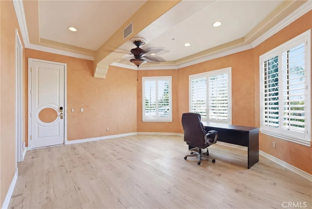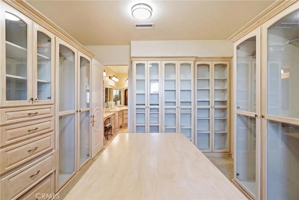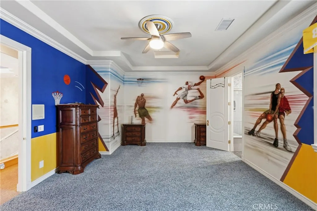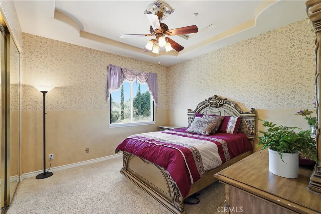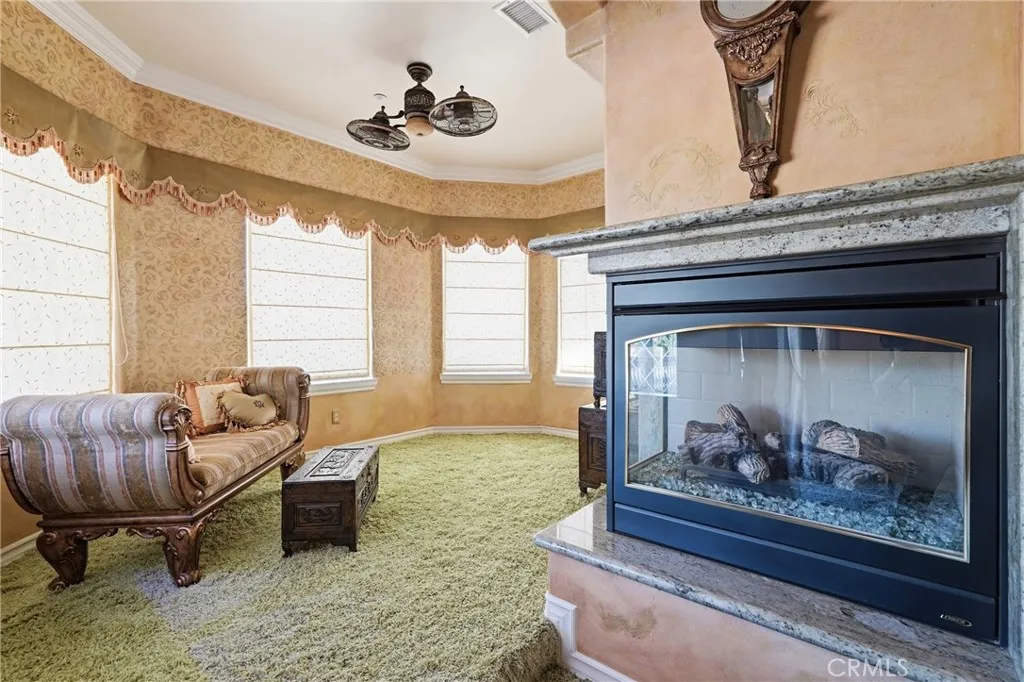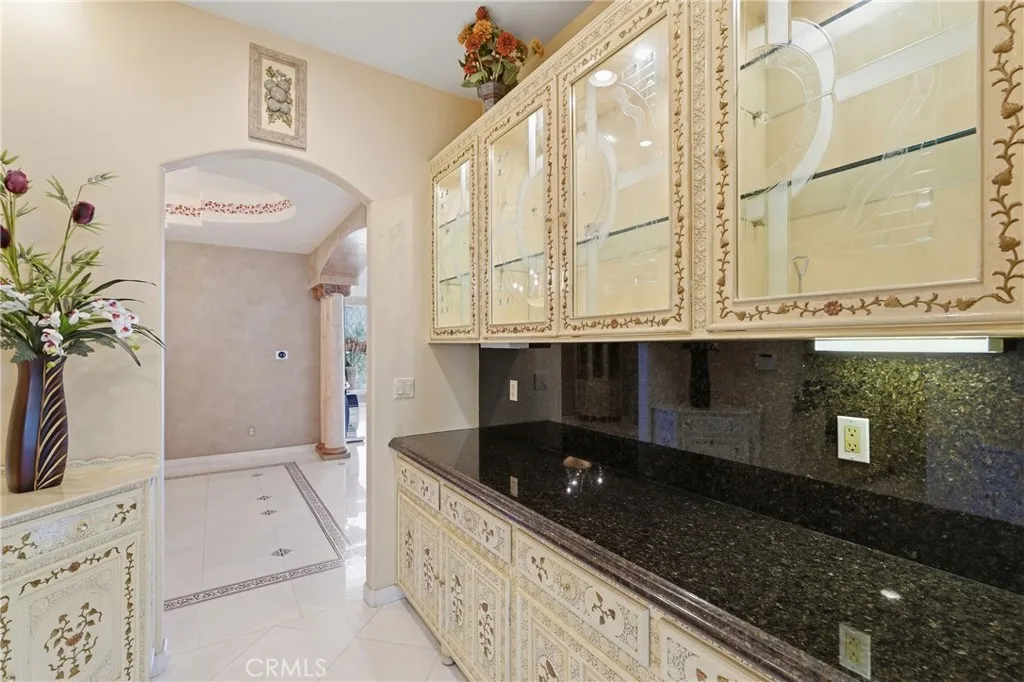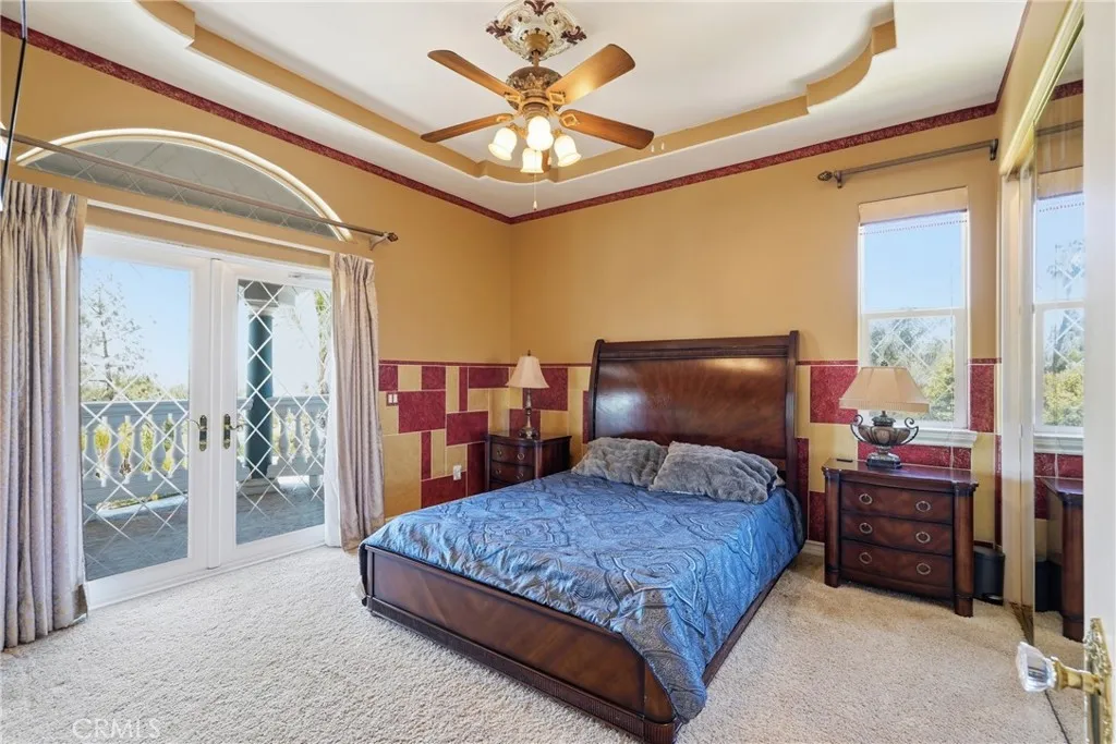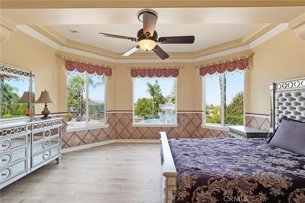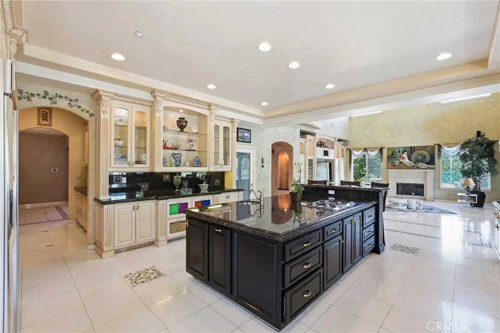 Welcome to one of Alessandro Heights’ premier custom estates, widely regarded as the “Beverly Hills of the Inland Empire”—an exclusive enclave known for estate-sized homes, privacy, and commanding views. For buyers coming from the coast, this is the moment of clarity: what if you could have significantly more home, more land, and more privacy—without compromising on luxury? This custom-built cul-de-sac residence showcases top-tier materials, craftsmanship, and one-of-a-kind design throughout. From the moment you enter, you’re greeted by a dramatic two-story foyer with gorgeous architecture and soaring ceilings that create an immediate sense of grandeur. Designed for both everyday living and large-scale entertaining, the home flows seamlessly through formal living and dining areas with a true chef’s dream kitchen—complete with butler’s pantry, separate cooking areas, heating drawers, and ample space to host gatherings of 150+ guests with ease. Inside, the home is nothing short of striking—featuring gold-accented finishes and custom paint throughout, hand-painted murals, intricate marble flooring with custom inlays incorporating real stone and mother-of-pearl, and a stunning mahogany wood fireplace with marble detail anchoring the formal living room. 6 generously sized bedrooms, including a main-level suite ideal for guests or multigenerational living, along with a dedicated office and multiple flexible-use spaces. Upstairs, enjoy a private theater room and multiple balconies capturing breathtaking panoramic views. The primary suite upstairs is a true retreat, complete with a its own seating area, fireplace, dual walk-in closets, and a private balcony overlooking unobstructed vistas. Additional highlights include two garage structures, paid off solar and a long private automatic gated driveway with parking capacity for over a dozen vehicles—ideal for collectors or large gatherings. The outdoor experience rivals a private resort. The backyard is designed for both relaxation and entertainment, featuring a full sports court (basketball, volleyball, pickleball, and tennis), a resort-style pool and spa with slide, waterfall, and heating, and an expansive outdoor kitchen with wraparound bar seating. Lush palm trees create a true paradise setting, complemented by a variety of fruit trees including pomegranate, persimmon, orange, lemon, avocado, and guava. A private courtyard offers peaceful seating areas with stunning views and ambiance. Extremely low tax rate!