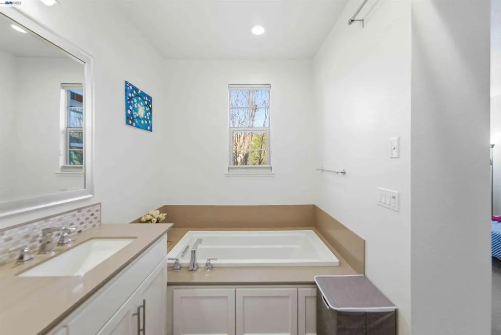 Gorgeous home with a desirable open floor plan in a premium lot location in the Sage community. This beautiful home features 3 spacious bedrooms PLUS OPEN LOFT AREA to enjoy! The Modern style neutral pallet through out features white cabinets, large stone breakfast kitchen island with brushed nickel pendant lighting and matching dining chandelier, designer window curtains, decorative tile backsplash in kitchen & bathrooms, stainless steel appliances & 6 burner gas stove, contemporary espresso engineered wood floors, tankless water heater, laundry room with built in shelves, upgraded carpet, extra large patio area to enjoy with family & friends & more! HOA amenities include: fitness center, swimming pool, bocce ball courts, table tennis, parks, playgrounds and it's located close to freeways, BART & shopping at the San Francisco Premium Outlets. WITH RESORT COMMUNITY AMENITIES LIKE THESE, THIS IS A MUST SEE HOME AND COMMUNITY!