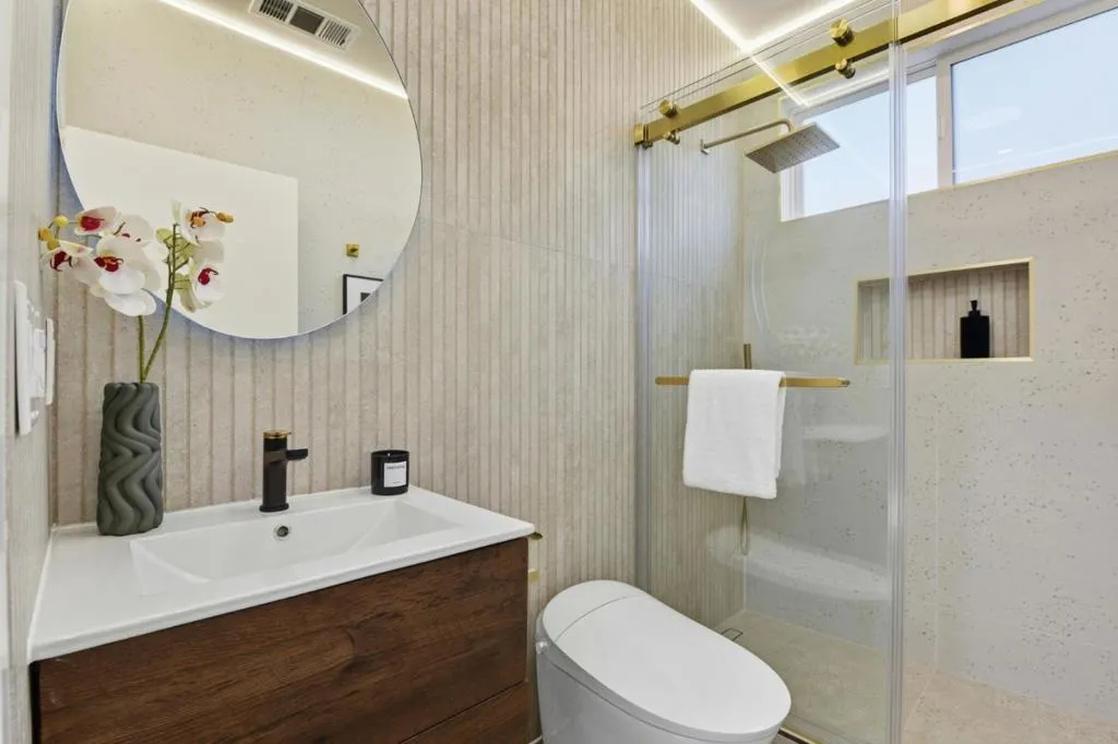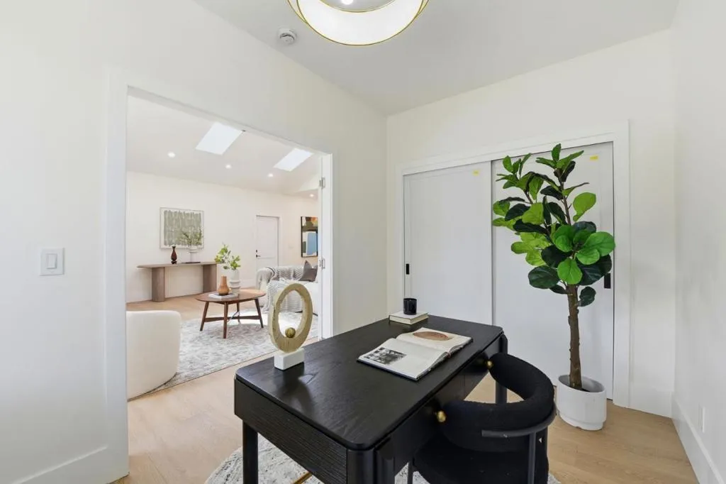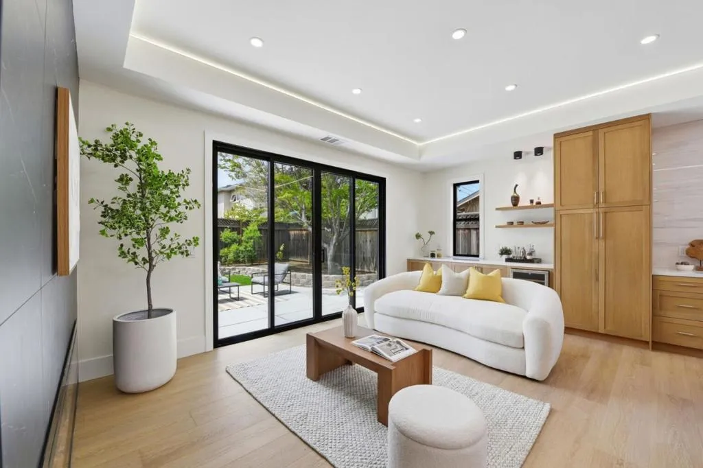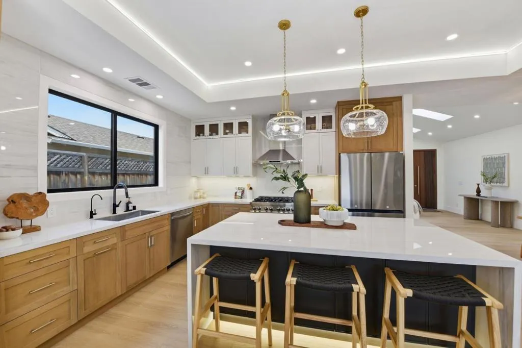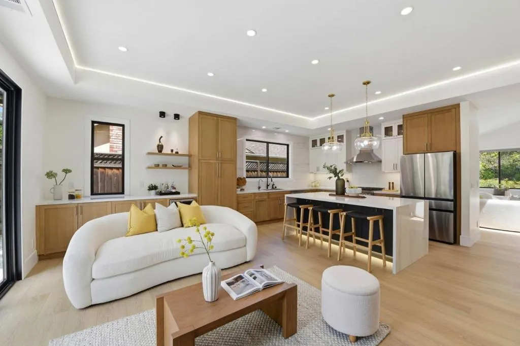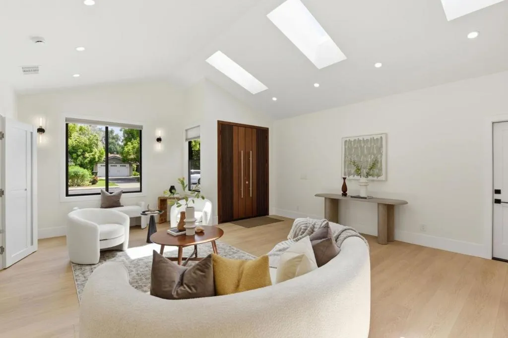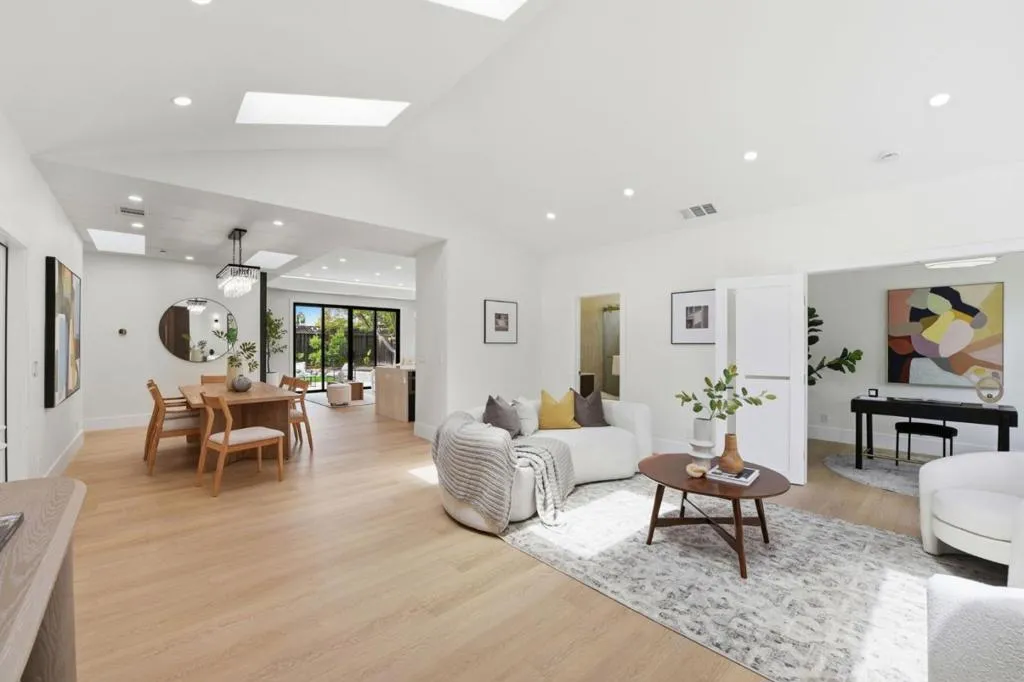 Experience a home that has been entirely transformed and rebuilt from the studs, offering the perfect blend of high-end design and everyday functionality. Spanning 2,080 sq.ft with a completely new open-concept floor plan, this 4-beds, 4-baths masterpiece feels like a brand-new custom build. The living space is defined by soaring 10'+ ceilings and large skylights and windows that flood the home with natural light, creating a bright and airy sanctuary. At the heart of the home, the chefs kitchen serves as a natural gathering spot, featuring a smart refrigerator, gas range, wine unit, & a seamless flow into the great room for effortless indoor-outdoor living. Privacy was a priority in this redesign; three out of the four versatile bedrooms features its own private, luxurious en-suite bathroom complete with slate stone tiling, floating vanities, and LED mirrors. Beyond the aesthetics, the home is equipped for the future w/ an EV-ready garage, all-new systems, and pre-plumbing for a whole-house water filtration system. Perfectly positioned near lush parks & top-rated Cupertino schools, this home offers the rare opportunity to move into a fresh, modern space where every detail has been handled for you. All thats left is to move in and start enjoying the best of Silicon Valley living.