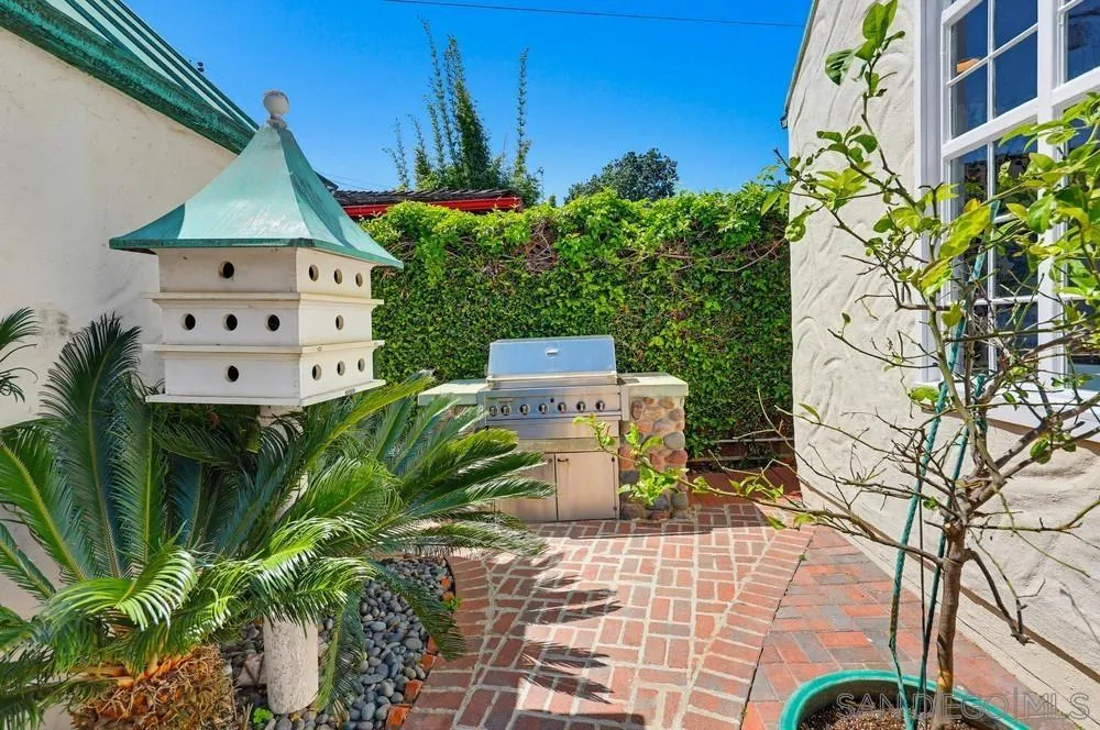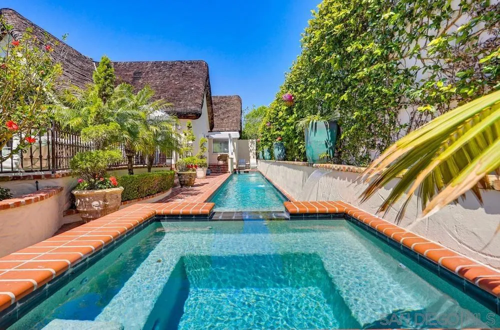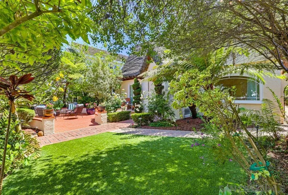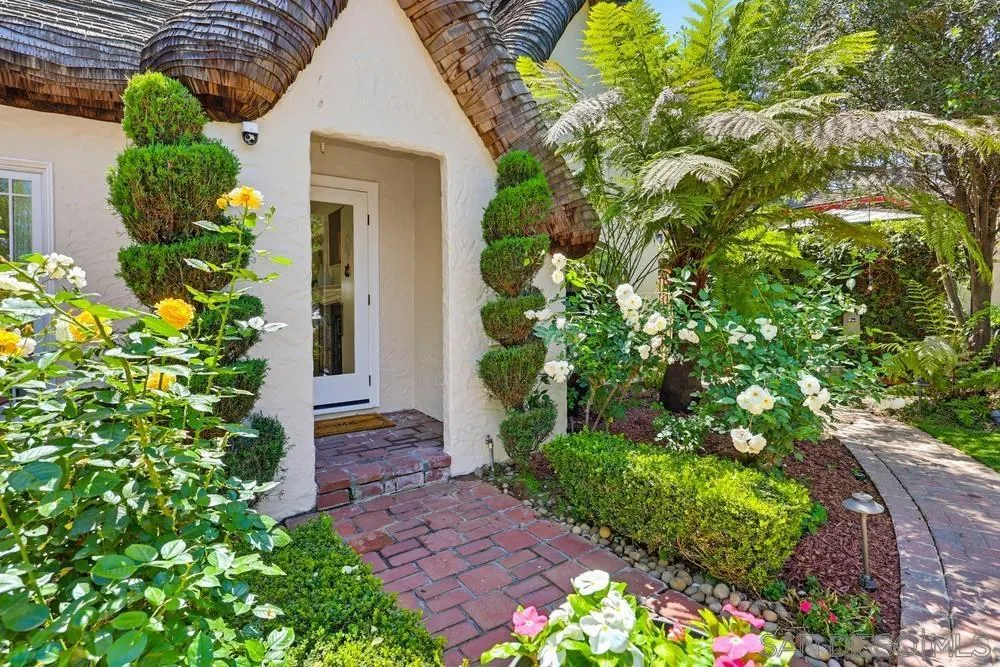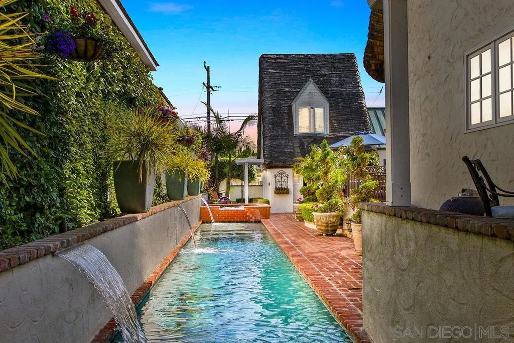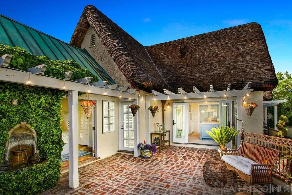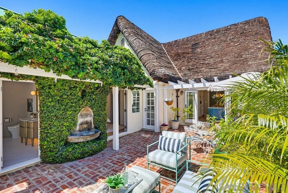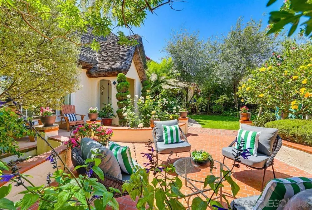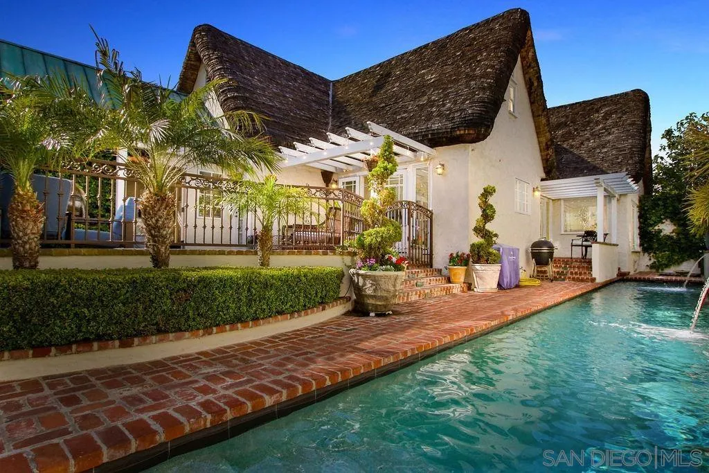 Storybook Tudor cottage on a coveted tree-lined street in Point Loma Heights. This iconic 1929 home blends timeless character w/elevated modern living. 3BR/2BA main home w/vaulted exposed beam ceilings, HW floors, fireplace, zoned HVAC & high-end finishes. Designer kitchen w/Miele built-in coffee center, Miele steam oven & French doors opening to the patio for seamless indoor-outdoor living. Luxe primary suite w/spa-inspired bath featuring a BainUltra thermomasseur soaking tub. Resort-style grounds w/custom brickwork, lap pool, 9-person spa, built-in BBQ, + a detached guest cottage with bay views, full living space, kitchenette, bath & upstairs bedroom. Rare. Timeless. Unforgettable. A storybook home where fairy tales really do come true.