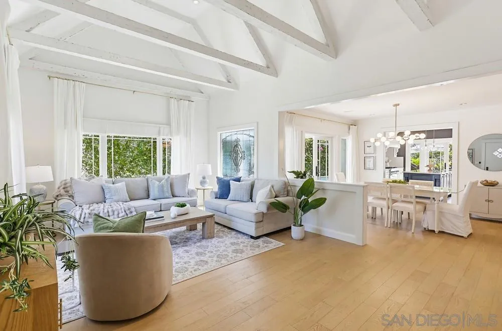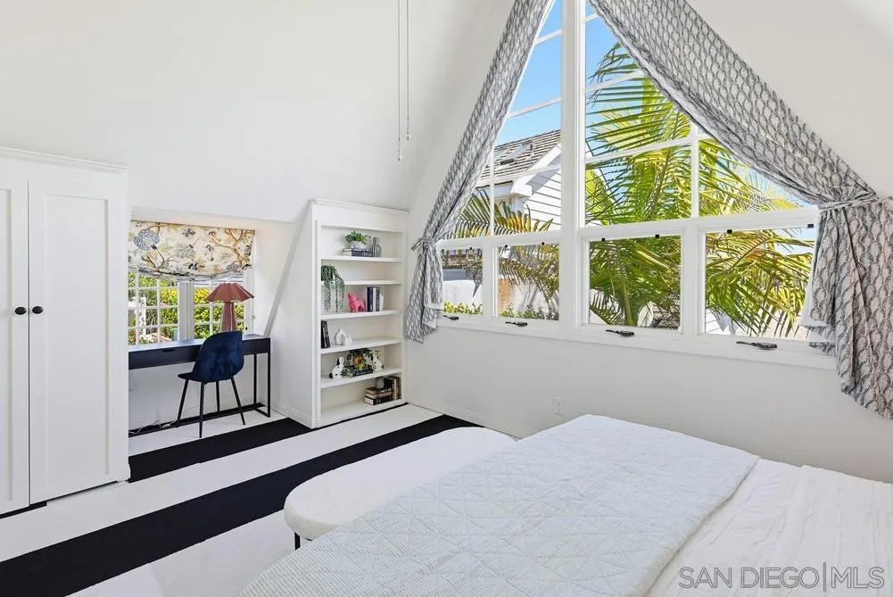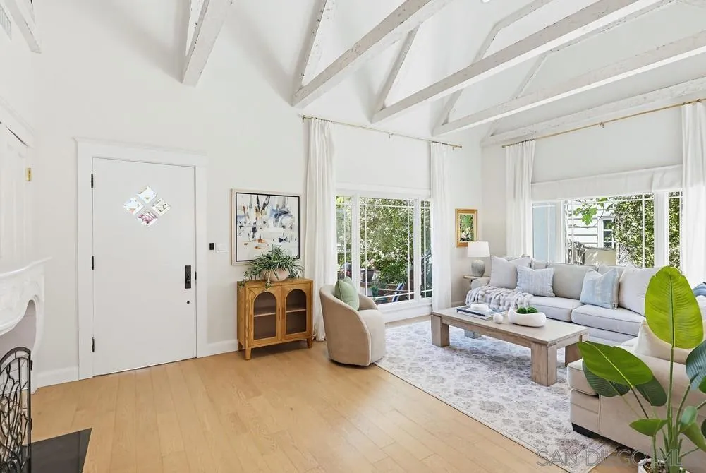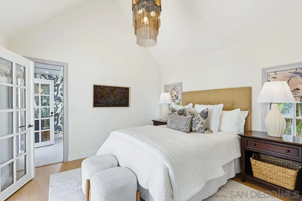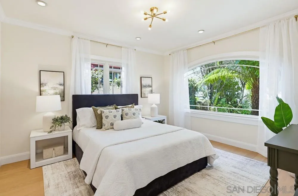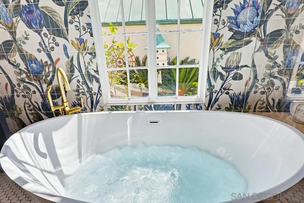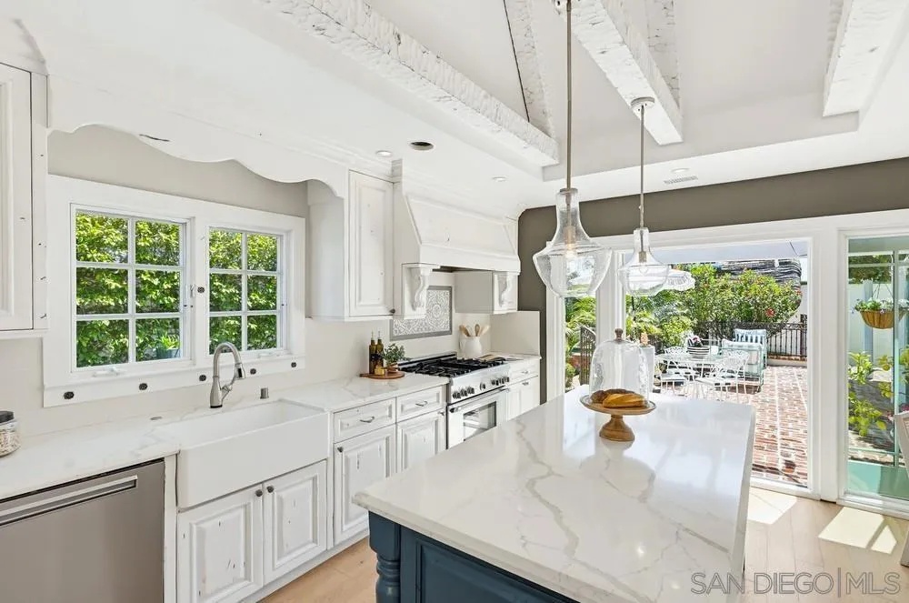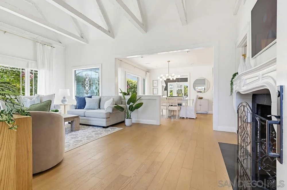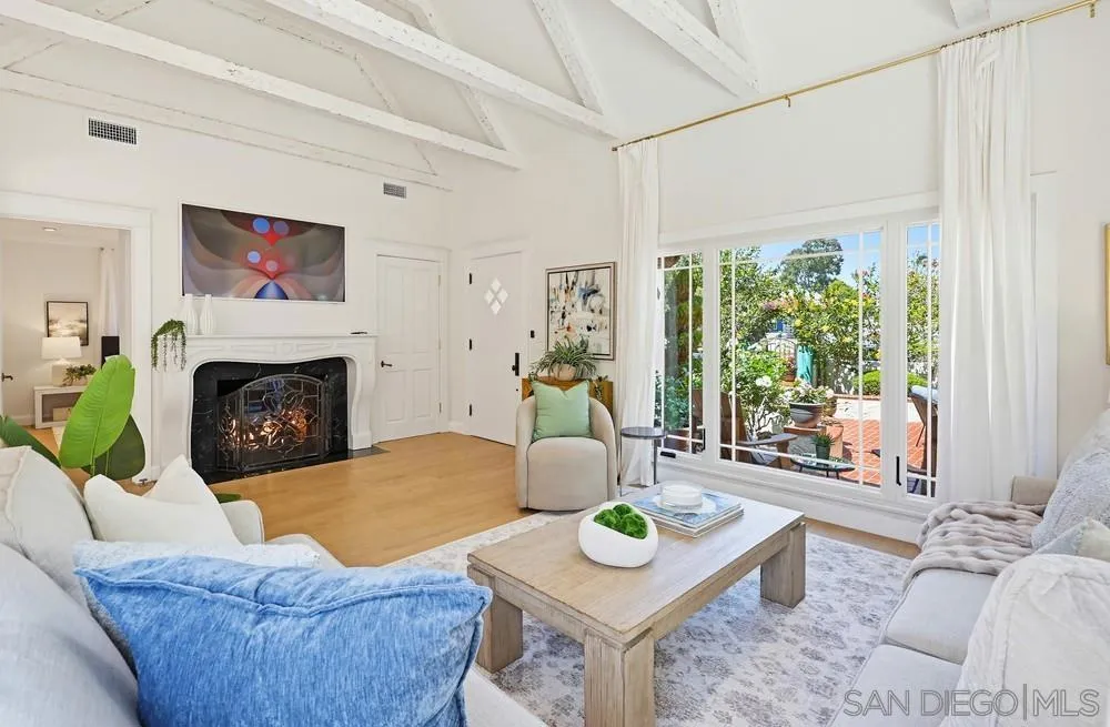 Storybook Tudor cottage on a coveted tree-lined street in Point Loma Heights. This iconic 1929 home blends timeless character w/elevated modern living. 3BR/2BA main home w/vaulted exposed beam ceilings, HW floors, fireplace, zoned HVAC & high-end finishes. Designer kitchen w/Miele built-in coffee center, Miele steam oven & French doors opening to the patio for seamless indoor-outdoor living. Luxe primary suite w/spa-inspired bath featuring a BainUltra thermomasseur soaking tub. Resort-style grounds w/custom brickwork, lap pool, 9-person spa, built-in BBQ, + a detached guest cottage with bay views, full living space, kitchenette, bath & upstairs bedroom. Rare. Timeless. Unforgettable. A storybook home where fairy tales really do come true.