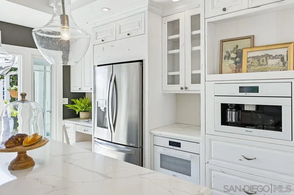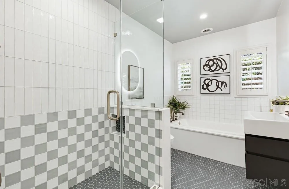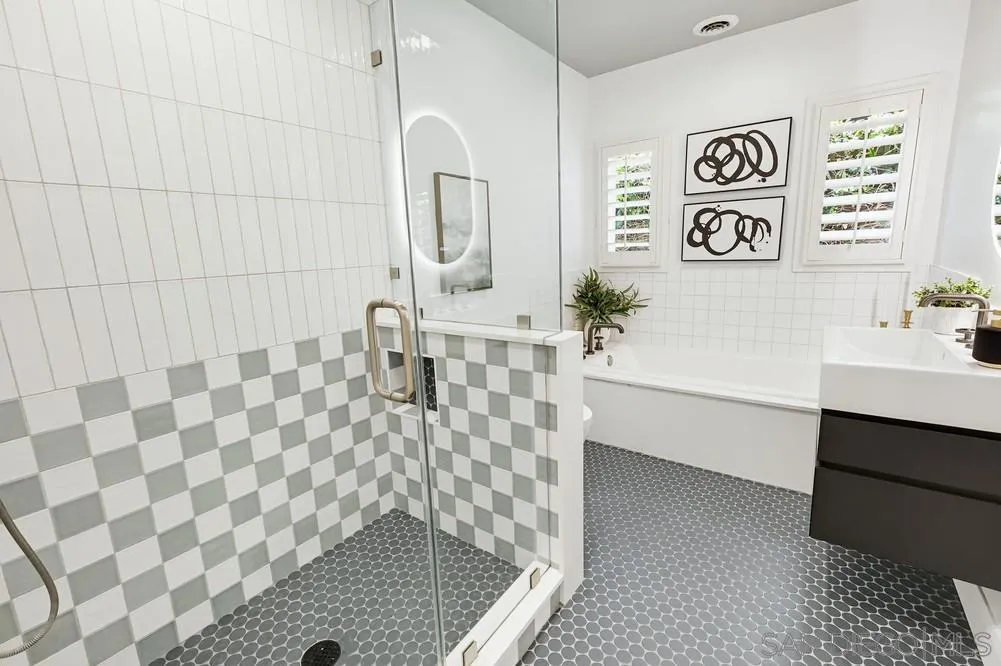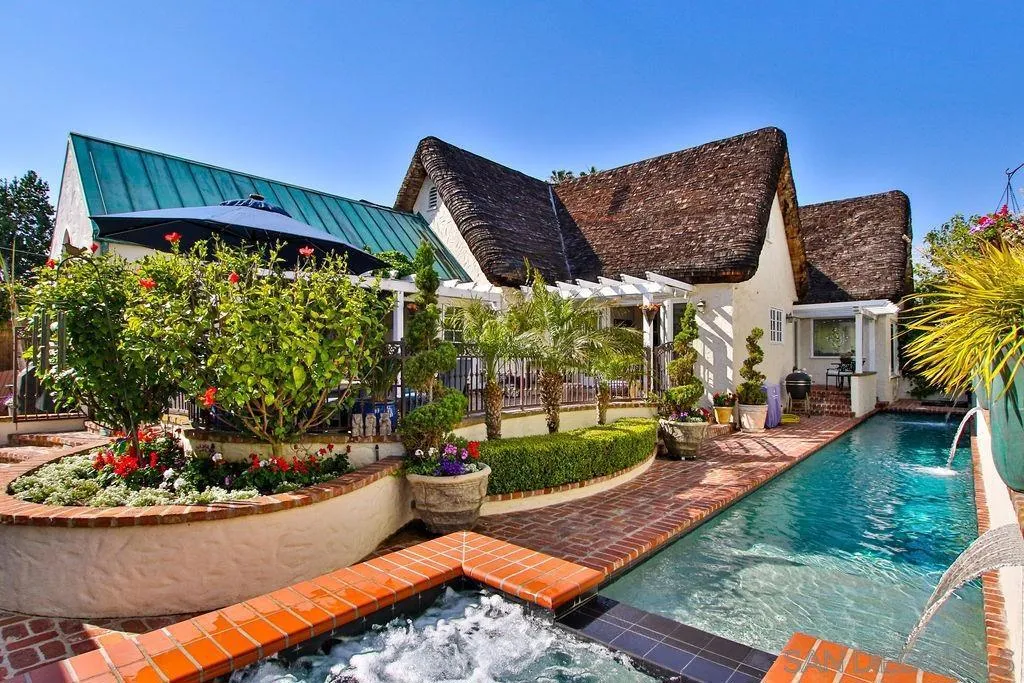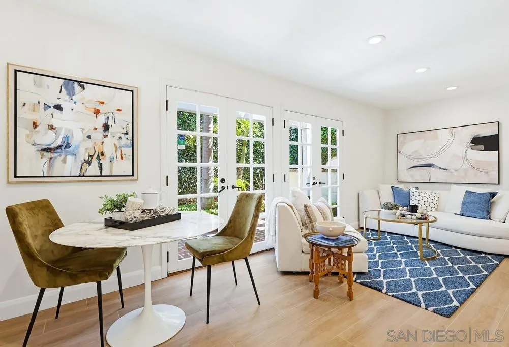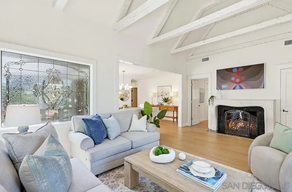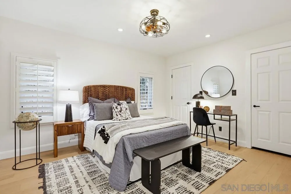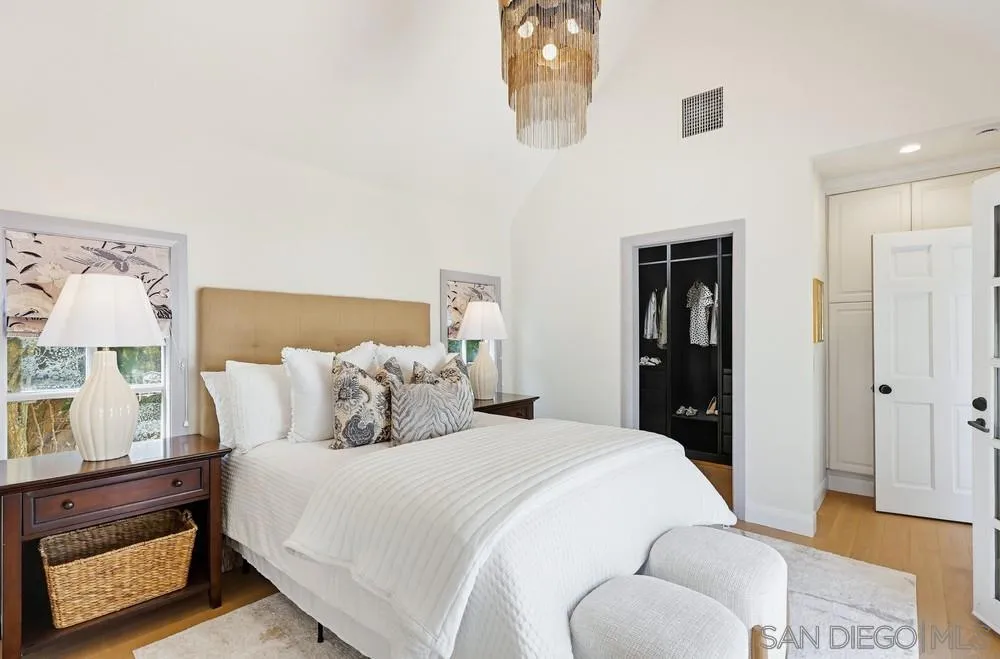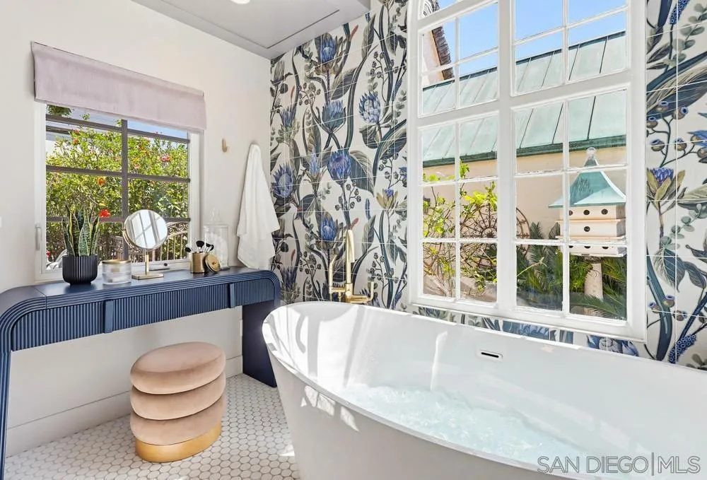 Storybook Tudor cottage on a coveted tree-lined street in Point Loma Heights. This iconic 1929 home blends timeless character w/elevated modern living. 3BR/2BA main home w/vaulted exposed beam ceilings, HW floors, fireplace, zoned HVAC & high-end finishes. Designer kitchen w/Miele built-in coffee center, Miele steam oven & French doors opening to the patio for seamless indoor-outdoor living. Luxe primary suite w/spa-inspired bath featuring a BainUltra thermomasseur soaking tub. Resort-style grounds w/custom brickwork, lap pool, 9-person spa, built-in BBQ, + a detached guest cottage with bay views, full living space, kitchenette, bath & upstairs bedroom. Rare. Timeless. Unforgettable. A storybook home where fairy tales really do come true.