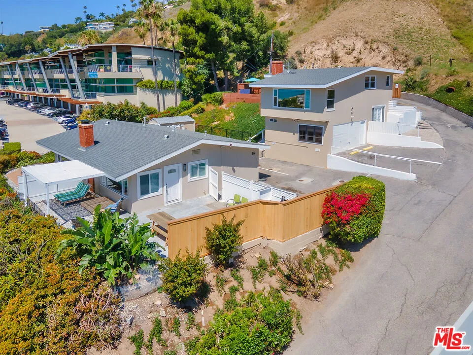This rare and highly desirable ocean-view multi-unit property presents a unique opportunity to own a premier investment in the heart of Malibu. Ideally located above Carbon Beach referred to as Billionaires Beach, the property offers breathtaking panoramic white-water ocean views stretching from the Malibu Pier to the Santa Monica Bay, Palos Verdes Peninsula, & Catalina Island. Situated on the bluff along Pacific Coast Highway, this commercially zoned LCC2 property benefits from exceptional visibility in a high-traffic, Malibu location (LCC2 Local Commercial zoning in the City of Malibu). The offering includes three separate structures comprised of a main house with an attached separate entrance studio and another separate entrance studio/office with private fenced patio, a duplex each with gated private yard areas, and a house with its own fenced yard and driveway gate. Each unit is assigned its own address: 22605, 22607, 22609, and 22609 1/2. Please do not disturb occupants.