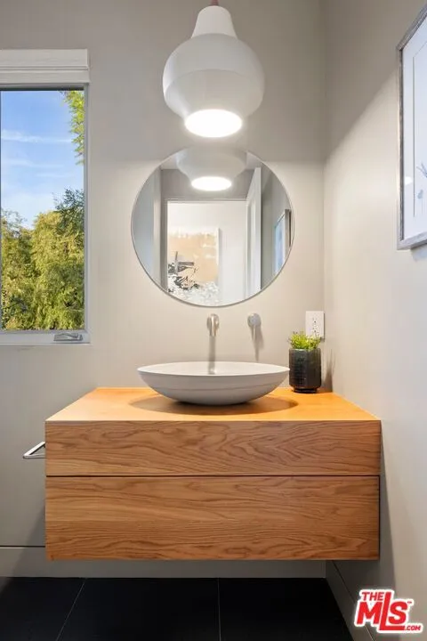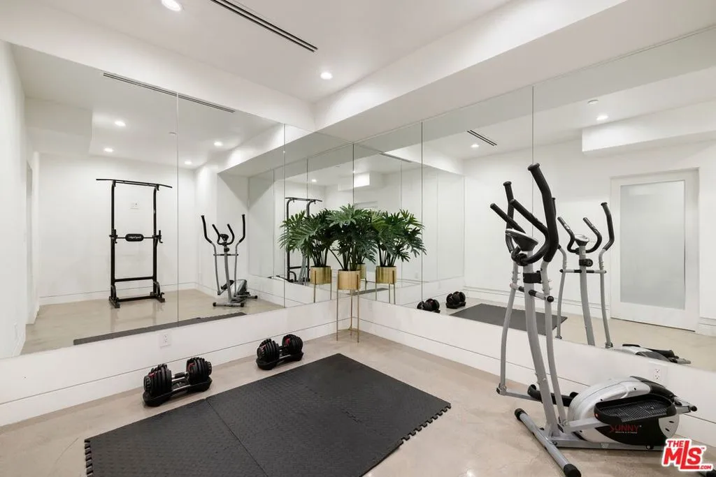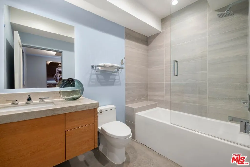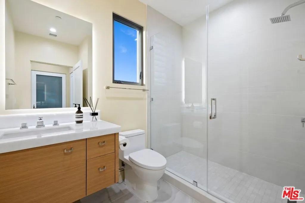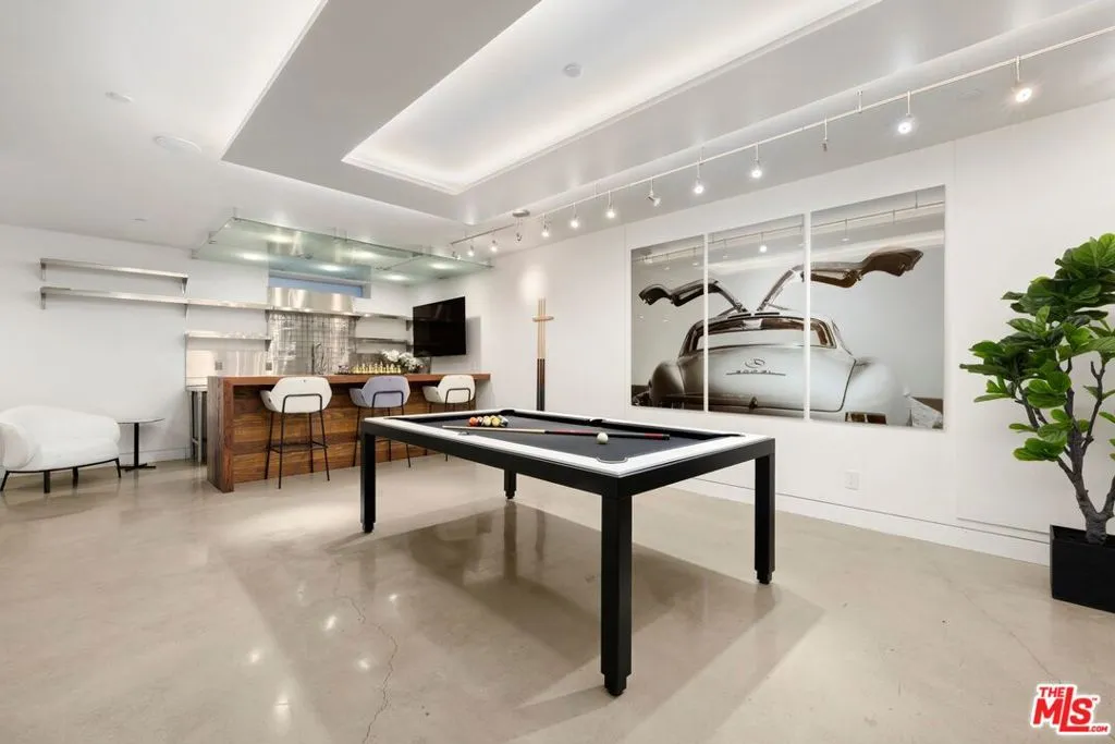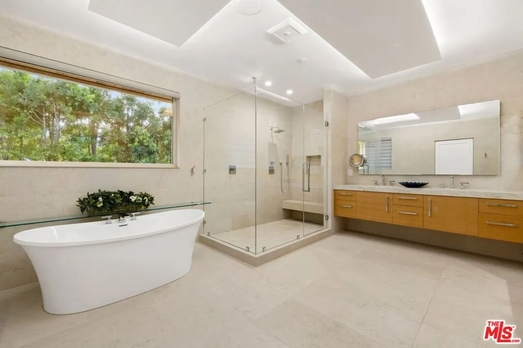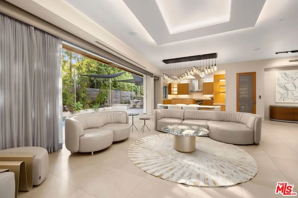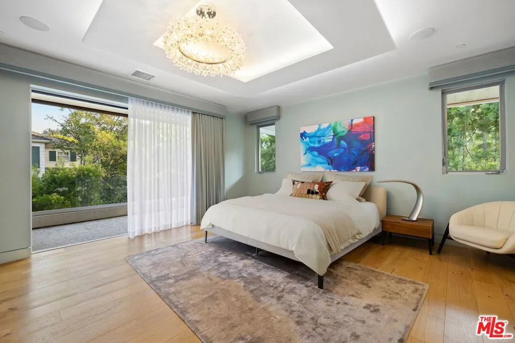 Welcome to this lovely, spacious, and gated contemporary pool home on a corner lot in coveted South-of-the-Boulevard Sherman Oaks, extensively updated throughout with modern finishes for today's lifestyle. Clean lines and geometric shape harmonize with warm woods and sandy brick to form the home's facade, inviting guests within. Inside, cool stone floors flow throughout the open-concept public entertaining spaces. The living room features an elegant fireplace flanked by floating open shelving as Fleetwood doors disappear to provide the ultimate indoor-outdoor experience. Nearby, enjoy meals with friends and family in the dining area, adjacent to the warm, modern kitchen with center island, glossy stone countertops, showcase cabinetry, and top-of-the-line appliances including a chef-grade Miele range with hood. Upstairs, the primary bedroom has wide-plank wood floors, tray ceiling accents, and sliding glass that opens to the large private balcony overlooking the manicured grounds below. The en-suite spa-like bath has a picture window framing greenery, soaking tub, oversized rainwater shower with niche and bench, and floating dual-sink vanity. The walk-in closet is a fashionista's dream, complete with dressing island and custom built-ins. Secondary bedrooms are spacious, two of which also have balcony access, and bathrooms are smartly updated. The fifth bedroom is utilized as an office. Enjoy sought-after amenities including a cinema with snack bar, game room with wet bar, gym, and elevator. Outside, relax in the shimmering pool, gather for conversation around the fire table, or dine al-fresco with lite bites prepared by the built-in barbecue. If that were not enough, there is even a finished rooftop deck offering sweeping 360-degree vistas of the hills and surrounding treetops! This prime location promises the ideal Sherman Oaks-Studio City way of life, located close to the many restaurants along Ventura Boulevard near the thriving social scene at the Sportsmen's Lodge complex, anchored by Erewhon and Equinox, as well as iconic LA landmarks like Casa Vega. Top-rated Dixie Canyon Community Charter is found just up the street, studios are moments away, the 101 Freeway is not far, and an easy canyon drive provides access to West Hollywood, Beverly Hills, and the Westside. Esteemed Harvard-Westlake high school is also nearby.