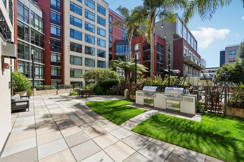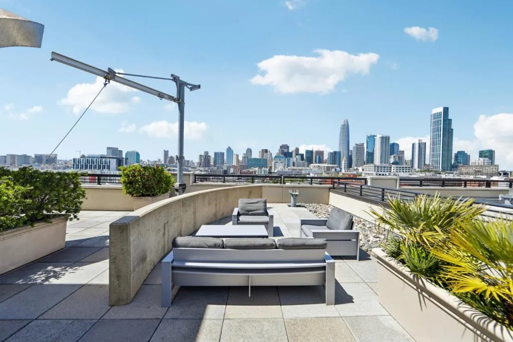 Enjoy exceptional indoor-outdoor living in this rare 2BR/2BA residence at 170 Off Third, featuring city views from the buildings largest private terrace, perfect for entertaining or relaxing above the city. The bright, open layout offers oversized windows, upgraded hardwood floors, custom lighting, and organized closets, plus in-unit washer/dryer and one-car deeded parking with EV charger. The chefs kitchen features custom cabinetry, mosaic glass backsplash, honed black granite countertops, a large island, and stainless steel appliances. Residents enjoy premier amenities including a two-story club room, private movie theater, fitness center, pool, spa, BBQ area, and rooftop deck conveniently located on the same floor as the unit for easy access. Prime South Beach, San Francisco location near Oracle Park, Caltrain, BART, Muni, Chase Center, Embarcadero, and top dining and restaurants.