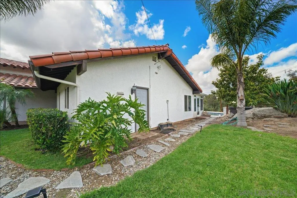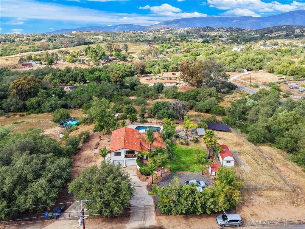 Welcome to your private retreat in the heart of Valley Center! This beautifully maintained 4-bedroom, 2.5-bath home sits on 2.42 mostly flat and fully usable acres, fully fenced, offering the perfect blend of comfort, functionality, and wide-open space with breathtaking mountain and valley views. Inside, you’ll find an updated kitchen featuring granite countertops, ideal for everyday living and entertaining. The home has a hard wired camera system for added security. The spacious living room showcases vaulted ceilings and a cozy wood-burning fireplace, creating a warm and inviting atmosphere. The primary bathroom has been recently and completely remodeled, adding a fresh, modern touch to the home. Major system upgrades provide peace of mind, including a new roof (2020), HVAC system (2020), and tankless water heater. Step outside to enjoy your own backyard oasis featuring a saltwater pool installed in 2020 and an above-ground spa that stays with the property. The expansive lot offers exceptional versatility with RV parking, room for an ADU, two chicken coops, and both a barn and shed with electricity—perfect for hobbyists, animals, storage, or future expansion. A gated circular driveway provides privacy and convenience, along with abundant parking and a 2-car garage equipped with an EV charger. This property delivers the rare combination of space, upgrades, and usability—ideal for those seeking country living with modern amenities. Welcome to your private retreat in the heart of Valley Center! This beautifully maintained 4-bedroom, 2.5-bath home sits on 2.42 mostly flat and fully usable acres, offering the perfect blend of comfort, functionality, and wide-open space with breathtaking mountain and valley views. Inside, you’ll find an updated kitchen featuring granite countertops, ideal for everyday living and entertaining. The spacious living room showcases vaulted ceilings and a cozy wood-burning fireplace, creating a warm and inviting atmosphere. The primary bathroom has been recently and completely remodeled, adding a fresh, modern touch to the home. Major system upgrades provide peace of mind, including a new roof (2020), HVAC system (2020), and tankless water heater. Step outside to enjoy your own backyard oasis featuring a saltwater pool installed in 2020 and an above-ground spa that stays with the property. The expansive lot offers exceptional versatility with RV parking, room for an ADU, two chicken coops, and both a barn and shed with electricity—perfect for hobbyists, animals, storage, or future expansion. A gated circular driveway provides privacy and convenience, along with abundant parking and a 2-car garage equipped with an EV charger. This property delivers the rare combination of space, upgrades, and usability—ideal for those seeking country living with modern amenities.