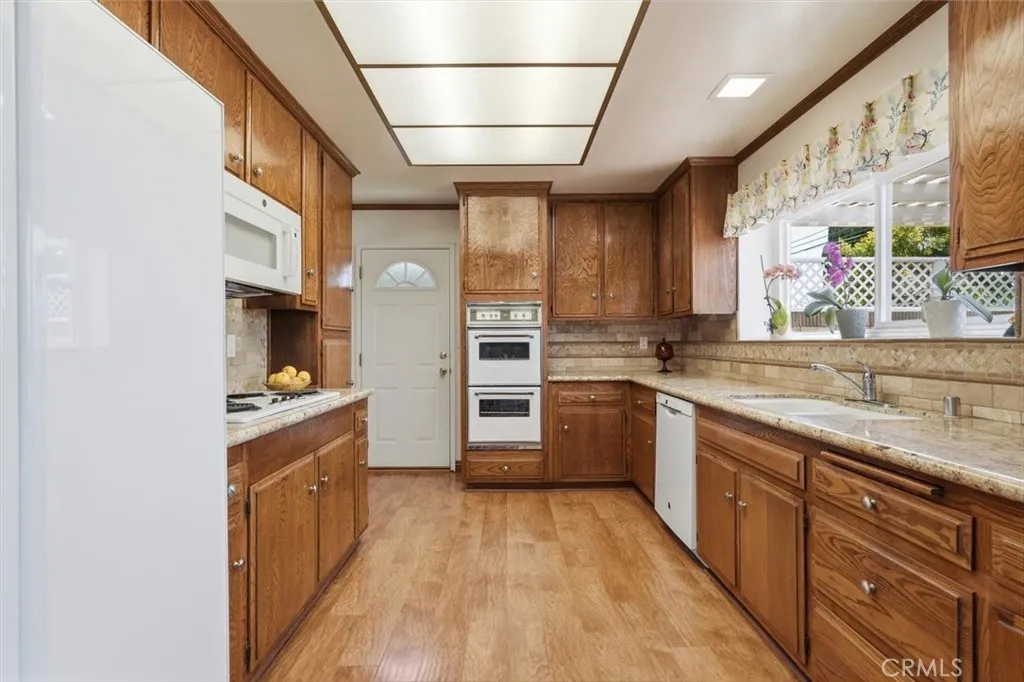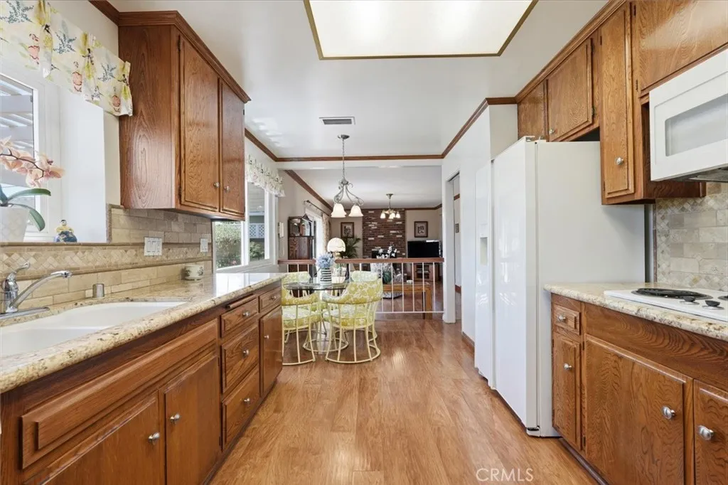 Spacious and well cared for, this two-story home sits on a nicely landscaped lot with great curb appeal. The extra-long gated driveway and wide paver-tiled approach to the garage offer plenty of parking and a welcoming first impression, while the backyard is private, inviting, and ideal for everyday enjoyment or entertaining. The floor plan was thoughtfully modified by the original owner during construction, converting the four-bedroom layout into three bedrooms plus a den on the main level. Currently used as a bar area, this space can easily be converted back into a fourth bedroom if desired. The kitchen is generous in size, with upgraded countertops, well-maintained cabinetry, and a breakfast nook that opens to the family room, all overlooking the backyard. A formal dining area sits just off the kitchen, with a separate living room at the front of the home. Upstairs, the primary suite includes its own bathroom, vanity area, and walk-in closet. Two additional bedrooms share a full hallway bath. Additional features include dual-pane windows throughout, central A/C, and direct access to a two-car garage. Set on a well-maintained street with a strong sense of community, the home is just one block from Hull Middle School—a convenient location with a neighborhood feel.