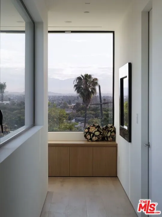Situated on a hillside with spectacular city views, this home, designed by architect Manish Desai and brought to life by Gaia Construction defies expectations. It is at once modern and classic and pays homage to mid-century design. The lines between inside and outside blur as the surrounding nature and the expansive views come alive within the home. There are many unique architectural features, including a glass bridge to the primary suite that makes you feel like you're walking on air, glass walls that open onto the center courtyard, spacious decks, a sound-proof screening room with concrete walls, a basement level that will accommodate whatever your imagination conjures, an elevator, a solar system and a heated pool and spa in the middle of a grassy, private yard. The highest quality materials have been used throughout including Italian tile and porcelain, Miele appliances, custom solid Oak cabinetry, and a Control 4 smart home system. Located in Baldwin Vista, one of the city's most thriving and upcoming communities. The neighborhood backs up to Kenneth Hahn State Park so there is no cut-through traffic and great hiking accessible right from your front door. The hip dining scenes of West Adams and downtown Culver City are moments away, and the entire area is going through a renaissance with several new projects in development. There is truly nothing else like this home on the market.