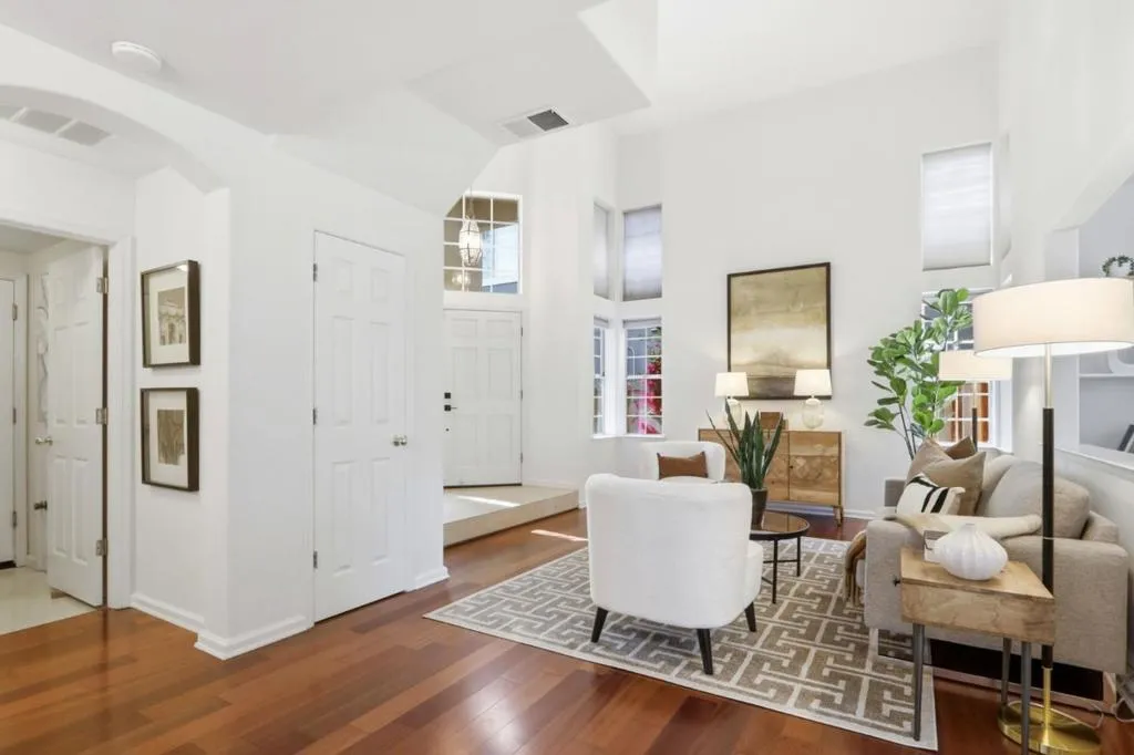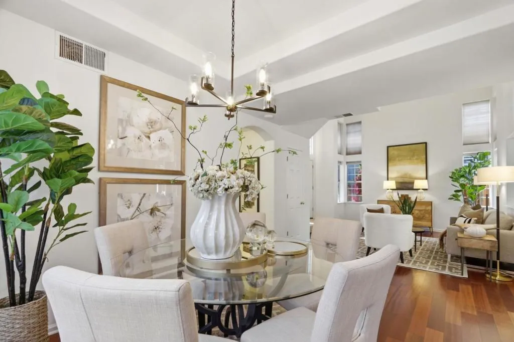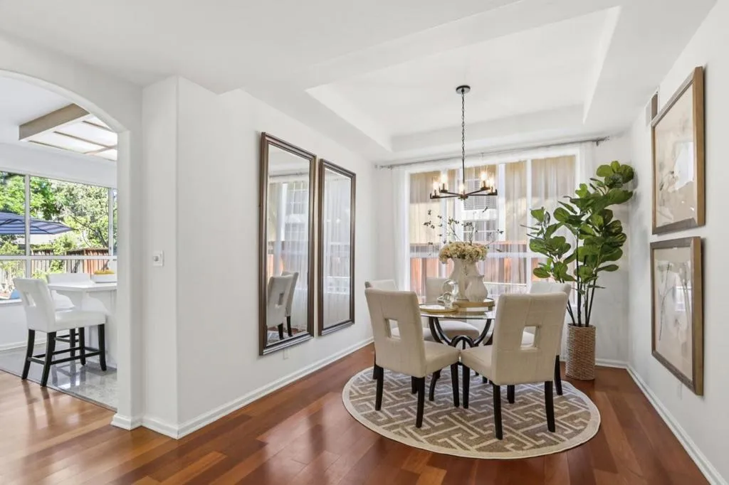 Nestled in the heart of Willow Glen, this inviting east-facing, modern two-story home, built in 1995, offers 4BD, 2.5BA, and 1,792 sq ft of comfortable living. Situated on a spacious lot along a peaceful, tree-lined street, the home features a well-designed layout with generous living areas, a formal dining room, and a high-ceiling living room that enhances natural light and openness. The eat-in kitchen with an island is ideal for everyday living and entertaining, while the primary suite includes a walk-in closet for added comfort and functionality. The recently updated kitchen showcases brand new appliances, quartz countertops, and refinished cabinetry. A remodeled hall bath with dual vanity and new light fixtures adds a fresh, contemporary touch. Hardwood flooring is complemented by carpeting, while dual-pane windows enhance efficiency and comfort. Additional features include HVAC, copper plumbing, a newer roof, and included washer and dryer. The drought-tolerant backyard with a pergola and various fruit trees creates a low-maintenance outdoor retreat, with ample space for entertaining, gardening, or adding an ADU. Conveniently located near downtown Willow Glen, parks, shops, dining, and major commute routes with easy access to Apple, Google, and NVIDIA.
