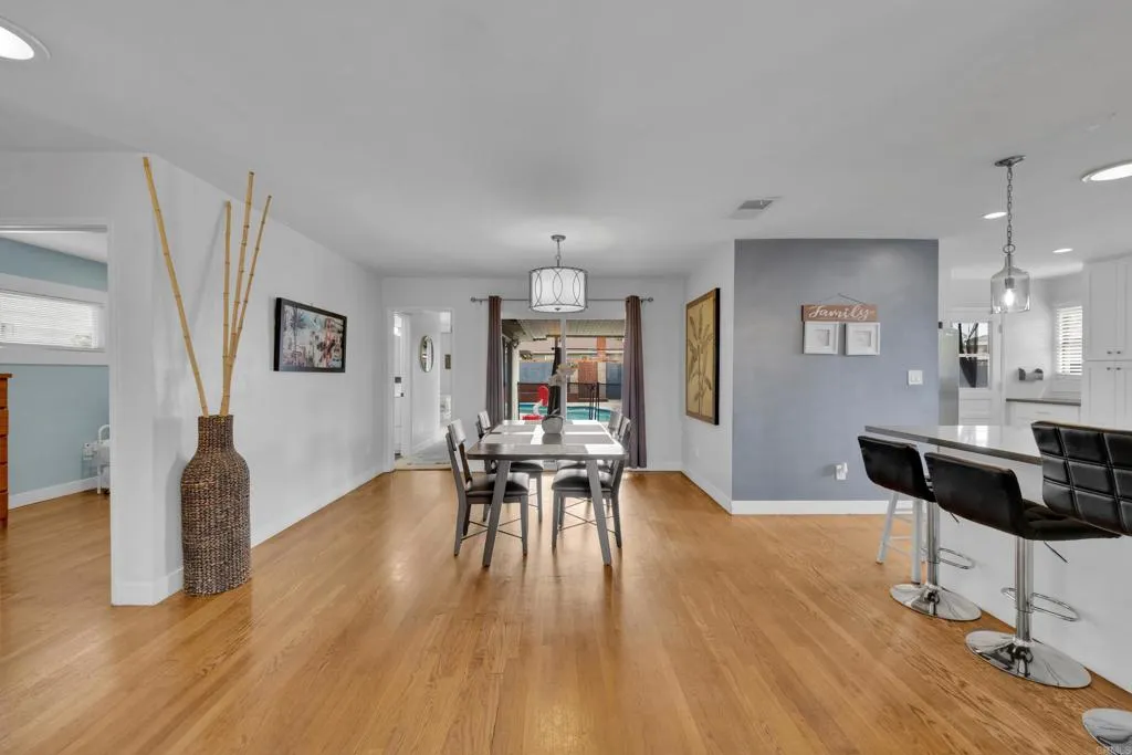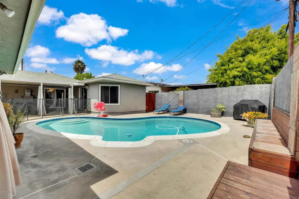 Welcome to 6567 Carthage Street, a beautifully maintained single-story residence nestled in the highly desirable Del Cerro/Allied Gardens neighborhood of San Diego. This charming 3-bedroom, 2-bath home offers approximately 1,453 square feet of thoughtfully designed living space, blending timeless character with modern comfort. From the moment you arrive, you’re greeted by a professionally landscaped front yard with fragrant jasmine and inviting curb appeal. Step inside to discover a bright, open-concept layout featuring stunning hardwood floors and a spacious living area that seamlessly flows to the outdoors—perfect for both everyday living and entertaining. The heart of the home opens to a private backyard retreat, where a sparkling in-ground pool and covered patio create the ultimate Southern California oasis. Whether hosting gatherings or enjoying quiet evenings, this outdoor space is designed for year-round enjoyment. The home features a well-appointed kitchen with ample cabinetry and functionality, along with updated bathrooms and a convenient indoor laundry area. The primary suite offers peaceful backyard views and direct access to the pool area, enhancing the indoor-outdoor lifestyle. Additional highlights include central heating and air conditioning, a detached two-car garage with gated access, and a generously sized lot offering privacy and versatility. (Redfin) Ideally located near shopping, dining, parks, and with easy access to major freeways, this home combines comfort, style, and convenience in one of San Diego’s most sought-after communities. This is a rare opportunity to own a true San Diego gem—where charm, location, and lifestyle come together beautifully.