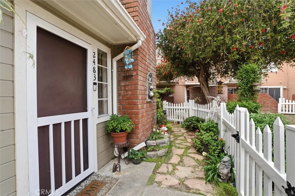 Country Club Village Condos! Welcome to this nicely updated 2-bedroom, 2.5-bath condo featuring two spacious upstairs bedroom suites- with the primary suite larger than most in the complex! The main level includes a bright and inviting family room open to the dining area and a functional galley kitchen! The dining area opens to a private courtyard, creating a seamless indoor-outdoor flow. Enjoy fresh updates throughout, including new flooring and interior paint. A convenient half bath is located downstairs, along with an indoor laundry room just off the kitchen. As an end unit, this home is filled with natural light and enhanced by additional windows. The charming fenced patio with picket detail adds character and a cozy outdoor space to relax. Additional highlights include a detached two-car garage and access to two community pools. Ideally located close to shopping, dining, and everyday conveniences.