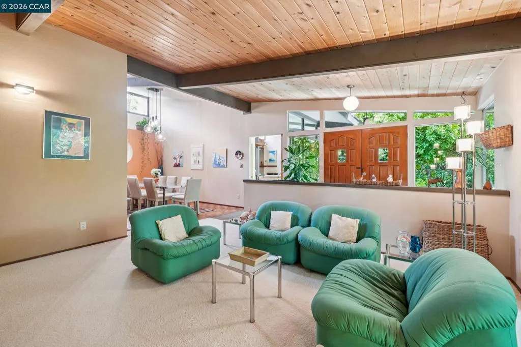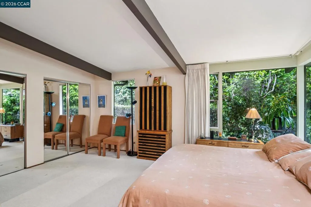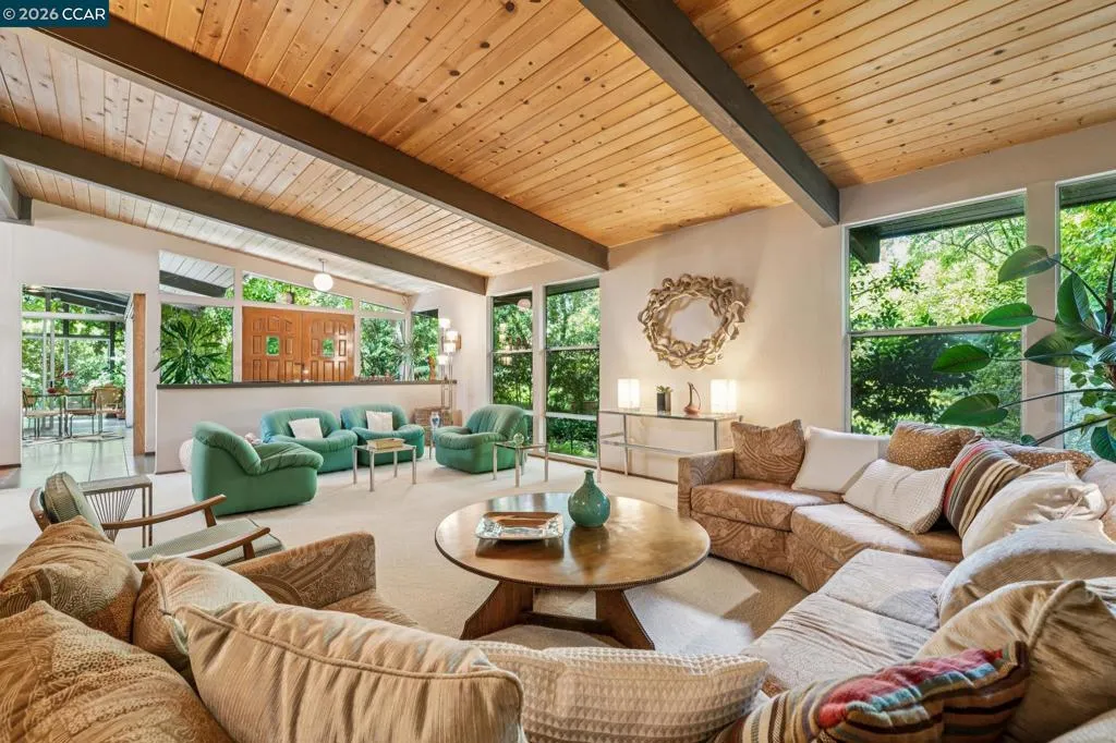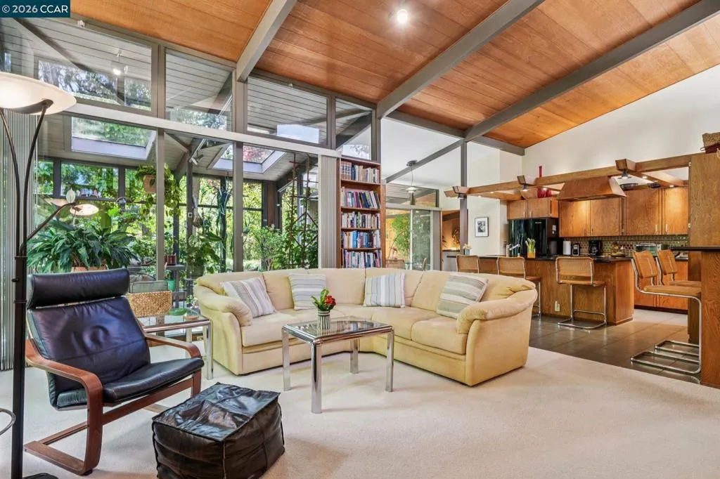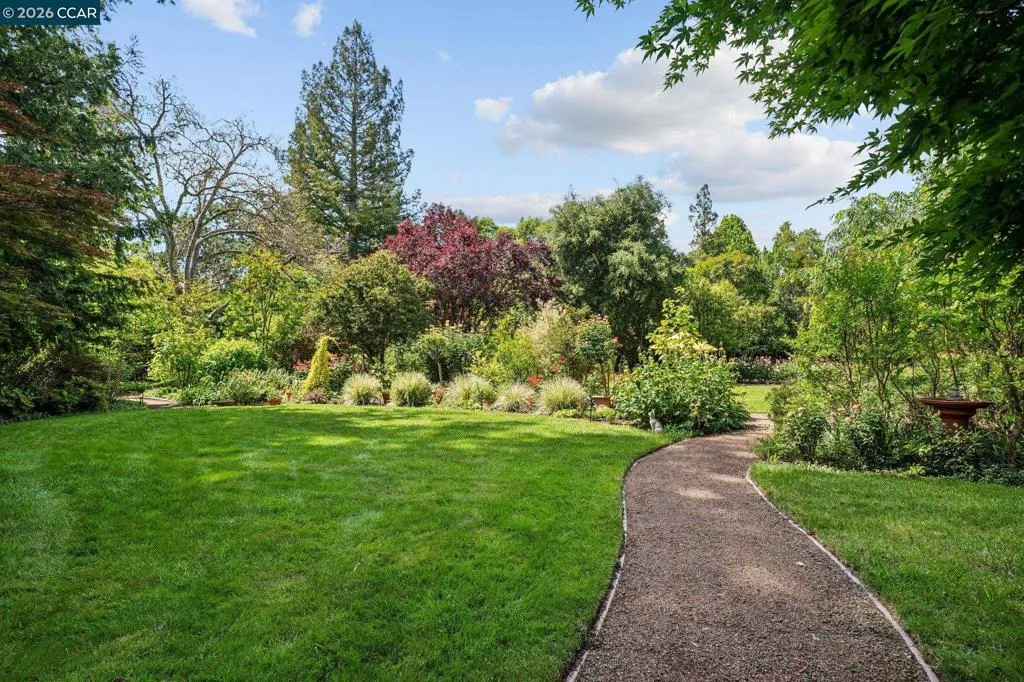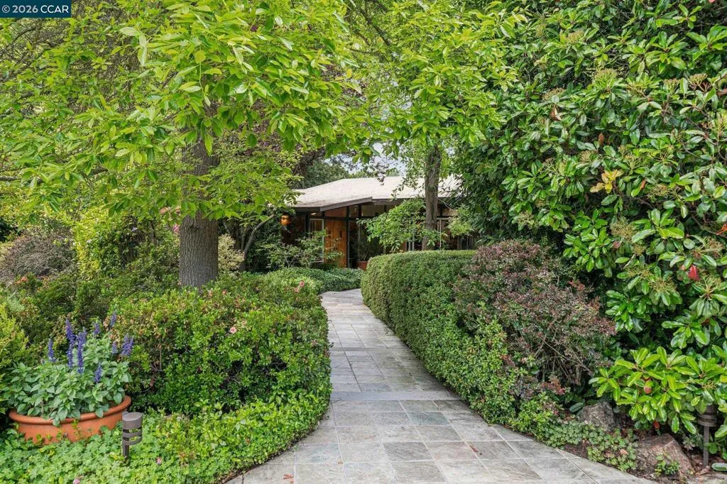 Set on a flat, expansive 1.20-acre lot along one of Alamo’s most sought-after streets, this property offers a rare blend of privacy, scale, and opportunity. The mid-century modern home features radiant heated floors, an open-concept kitchen, and a sun-filled sunroom that seamlessly connects to the outdoors. A detached garage adds flexibility and function. The grounds, curated by a Master Gardener, create a park-like setting with mature landscaping, open lawn areas, and a sense of tranquility rarely found. Ideal for entertaining, relaxation, or future expansion. Moments to downtown Alamo and Danville, the Iron Horse Trail, top-rated schools, and commute routes. A unique opportunity to enjoy as-is or create a custom estate in a premier location.