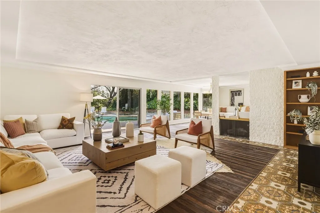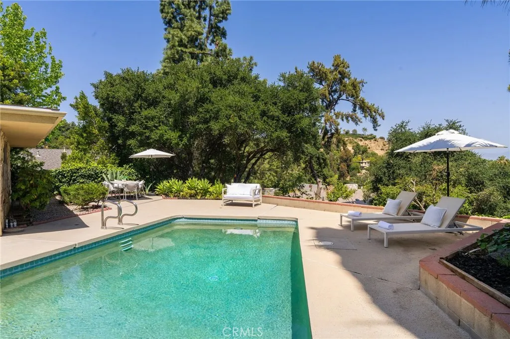 Perched in the coveted Royal Woods enclave of Sherman Oaks, this mid-century gem is a true standout, offering sweeping views of the Valley and endless possibilities to make it your own. Designed for effortless single-story living, the home offers 4 spacious bedrooms, 3 bathrooms, and a layout that flows seamlessly for that quintessential California lifestyle. The primary suite is a serene retreat, opening out to a private backyard oasis where a pool invites you to bask in the sunshine and savor quiet moments. Light pours into the living and dining areas, with walls of windows and sliding glass doors that blend indoor and outdoor living. Step outside and take in breathtaking views of the pool and the Valley beyond—perfect for entertaining or simply unwinding in your own private sanctuary. The cozy family room and a generous bonus space offer ultimate versatility—imagine hosting gatherings, relaxing after a long day, or reimagining the space to suit your vision. Lovingly held by the same family for over 50 years, this home is rich with history and brimming with potential, ready for its next chapter. Set in a peaceful hillside sanctuary, you’ll feel worlds away while still being just minutes from the bustling shops, restaurants, and cafés of Ventura Blvd. Plus, with easy access to the Westside via the Sepulveda Pass, the location is as practical as it is desirable. Whether you're dreaming of transforming this classic beauty into your forever home or seeking an investment in one of Sherman Oaks' most sought-after neighborhoods, the opportunity is now. Don’t let this rare find slip away—your piece of Royal Woods awaits!