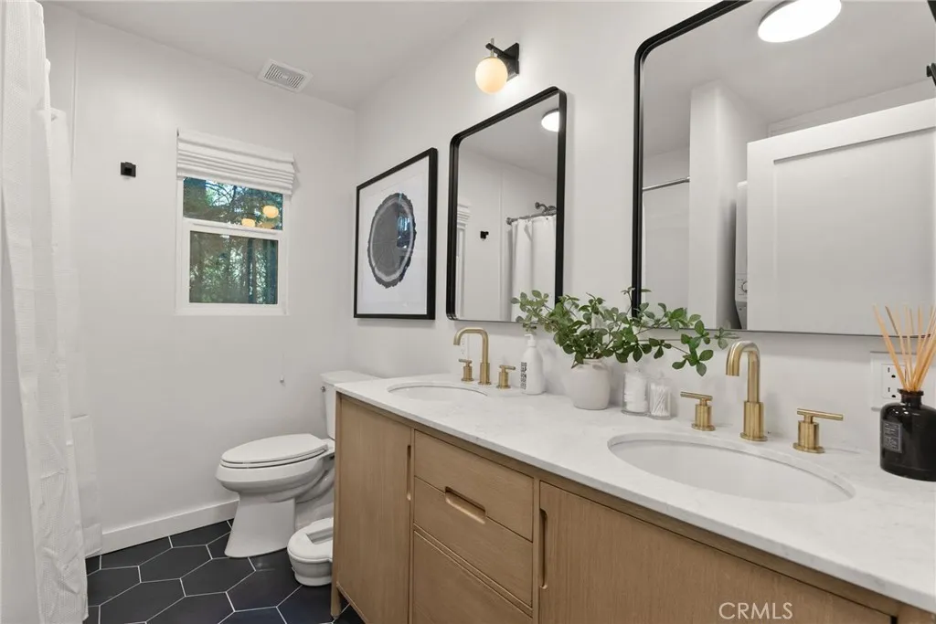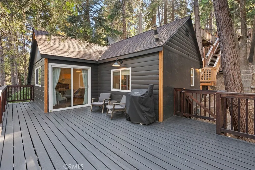 This is great personal getaway and an amazing investment property as it is a very active vacation rental. Beautifully renovated one-bedroom, one loft, two-bathroom cabin embodies a designer-inspired ambiance that effortlessly blends contemporary comfort with the warmth of nature, making it the ultimate haven for both relaxation and adventure. With the large downstairs bedroom, open living room and additional loft, this cabin accommodates up to 6 guests and is perfect for family gatherings, fun-filled weekends with friends or continue to use as a short term rental - income property. As you step inside, you’ll be greeted by a bright and inviting living room that exudes charm, featuring all-new finishes, contemporary cabinetry, new flooring and brand new kitchen. The cabin has a large deck to enjoy summer al-fresco dining and gatherings and a place to set your eyes on as you watch the snow fall on winter days snuggled up by the warm fireplace. This space is more than just a cabin; it’s an experience waiting to unfold. Whether you’re cozying up for a night in, hosting friends, or exploring the lucrative potential of an vacation rental, this cabin is designed for creating lasting memories. Centrally located in the highly sought-after Lake Arrowhead area, you’ll enjoy unparalleled access to local attractions, breathtaking scenic views, and a plethora of outdoor activities. Notable upgrades include a newer roof, updated electrical wiring and panel, replaced plumbing, beautiful new cabinetry, and elegantly redesigned kitchen, bathrooms and finishes. Your Twin Peaks & Lake Arrowhead adventure awaits! Please note - the cabin has been continuously booked for STR!