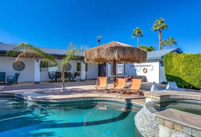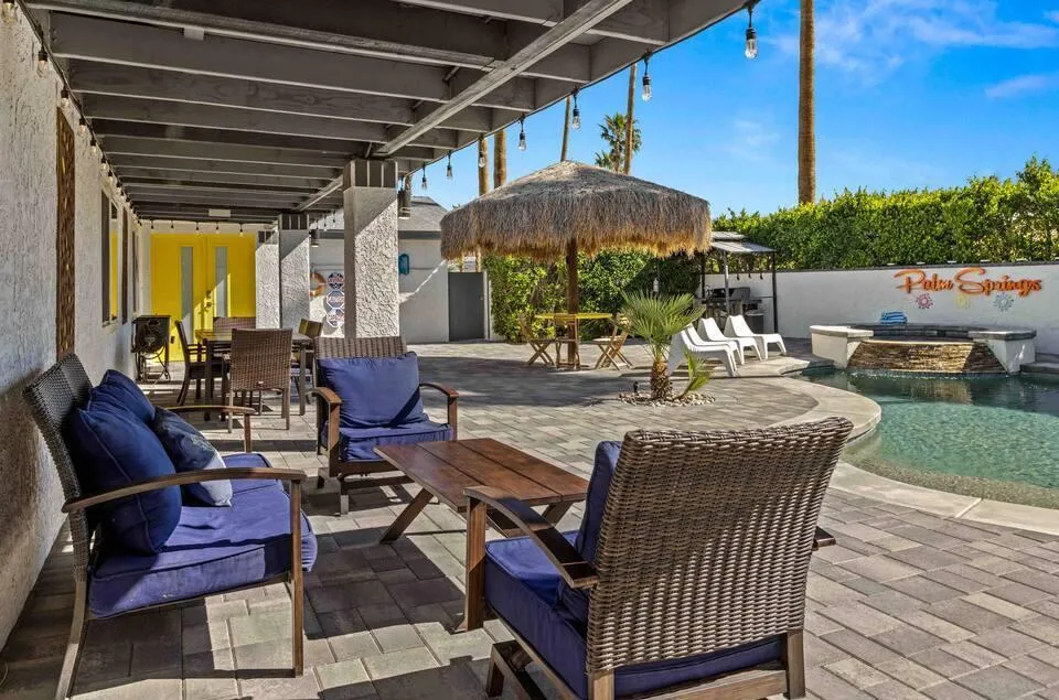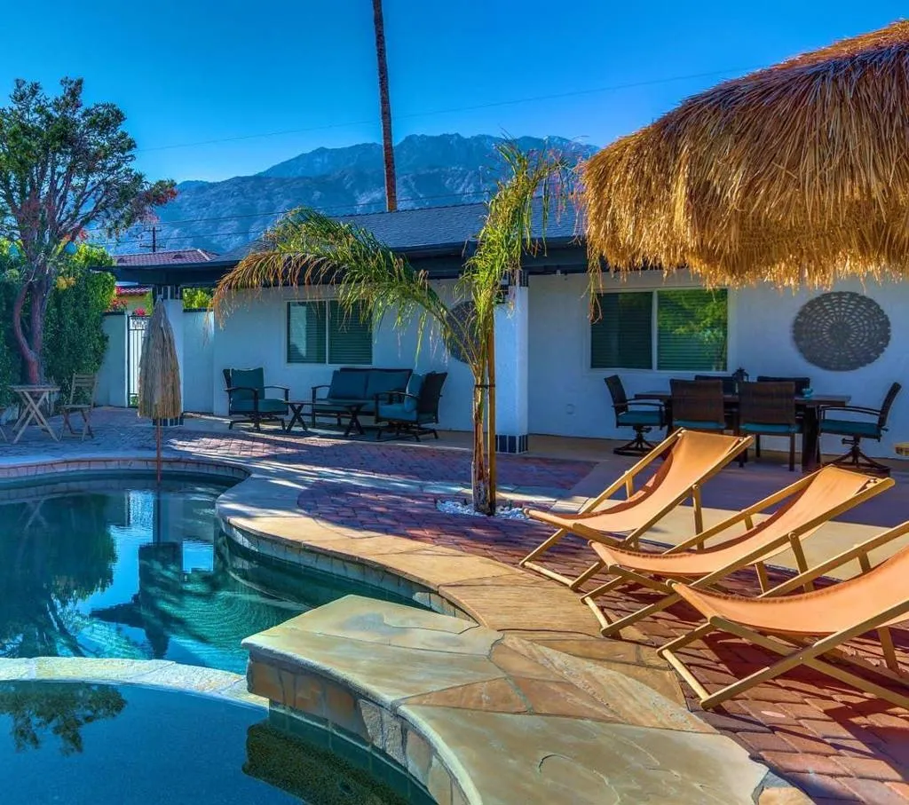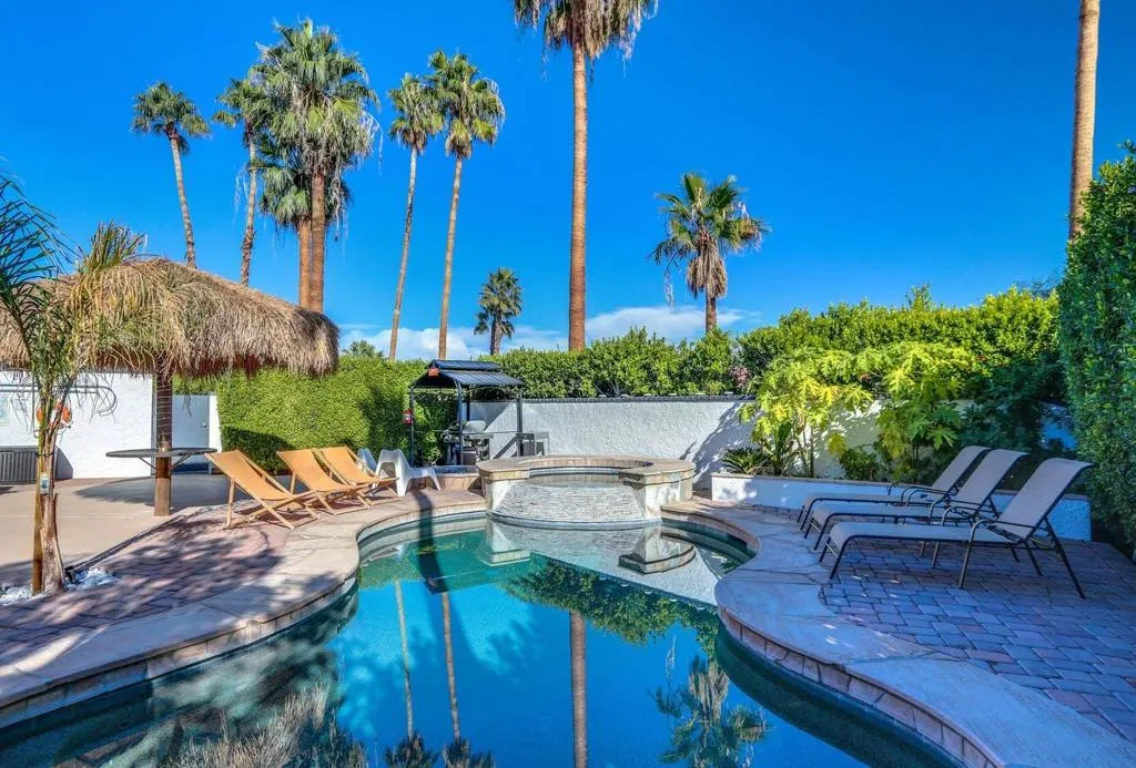 Resort property completely renovated and turn key furnished, this four bedroom two bath open floor plan takes advantage of the outside living in Palm Springs. Pool ,spa, outside recreation and games like foosball ping-pong and more, Enjoy the outside bar while you lay out by the pool and enjoy the Palm Springs life, this property has been set up like a five star hotel , enjoy as an Airbnb or as your own resort , as an Airbnb it was a money maker.