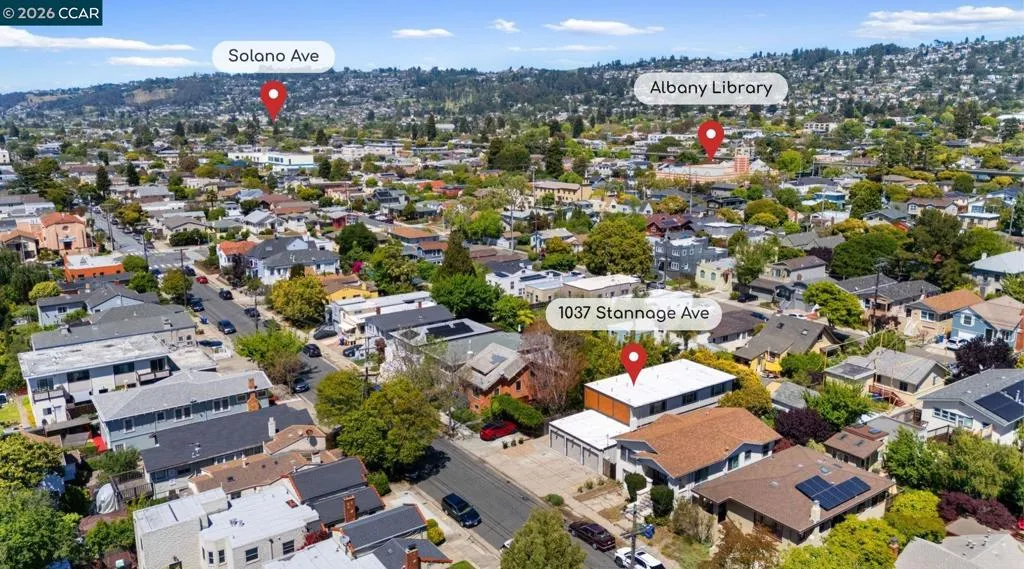 Rare side-by-side, townhome-style triplex in one of Albany’s most convenient locations, just steps from Solano Ave restaurants, shops, everyday conveniences, and the Albany Library. The property consists of three separate units: Unit 1 is 2BD/1BA, Unit 2 is 1BD/1BA, and Unit 3 is 1BD/1BA, offering excellent flexibility for an owner-occupant, multi-generational living, or house-hacking potential. Set on a 4,100 sq ft lot with approximately 2,625 sq ft of building area, each unit spans two stories with its own private fenced patio, creating a desirable single-family feel that is hard to find in a multi-unit property. The property has been thoughtfully updated with fresh exterior paint, renovated kitchens and baths, and a clean, polished presentation throughout. Additional highlights include a common laundry room, 3-car garage, storage room, wide driveway, and extra off-street parking. Strong rental appeal with access to Albany schools, buyer to verify.