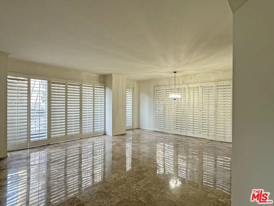Located in The Wilshire Thayer, this first-floor corner residence presents one of the best values on the Wilshire Corridor. The Wilshire Thayer is an intimate, full-service high-rise offering just 50 residences in a prime, prestigious location. This single-level, first-floor unit features 2 bedrooms, 2 bathrooms, and approximately 1,711 square feet of living space. The home offers a well-designed floor plan with classic architectural details and a neutral palette, providing an excellent opportunity for updates and customization. The entry welcomes you with marble flooring and leads into a spacious living room highlighted by floor-to-ceiling windows on two sides, allowing for abundant natural light. Situated just above street level, the unit opens to private balconies with views of Thayer Avenue, Wilshire Boulevard, and the tree-lined street below, creating a pleasant indoor-outdoor connection. The primary suite includes two spacious closets and an en-suite bathroom with dual vanities, a soaking tub, and a separate spacious shower. While functional, the space is ready for thoughtful renovation. Additional features include new flooring in select areas and recessed kitchen lighting, enhancing the home's original charm. Residents enjoy full-service amenities, including valet parking, concierge, 24-hour security, gated garage parking, controlled access, an elegant lobby, and additional storage. Ideally located near Century City, Beverly Hills, Westwood, UCLA, and world-class shopping, dining, and cultural attractions, this Wilshire Corridor residence offers a rare opportunity to remodel and create a custom home in a highly desirable setting.