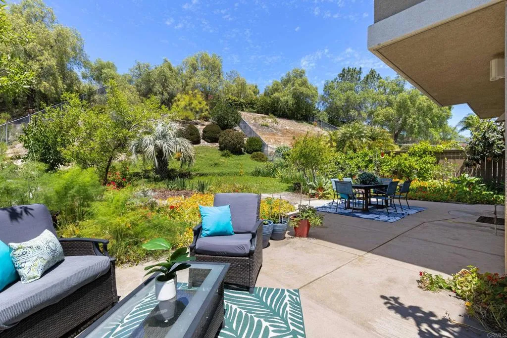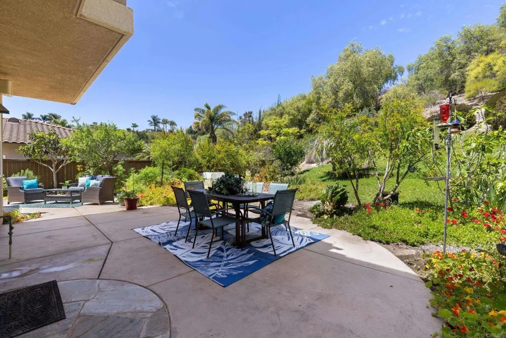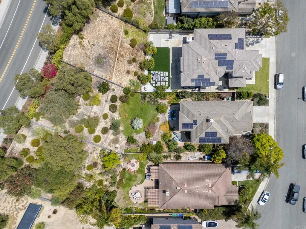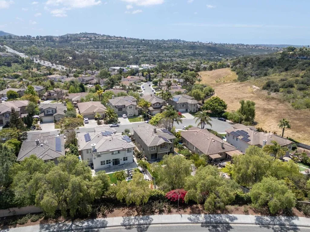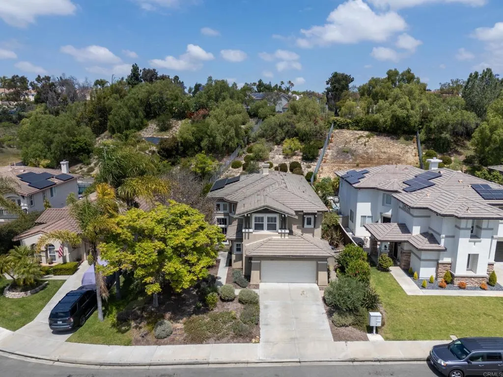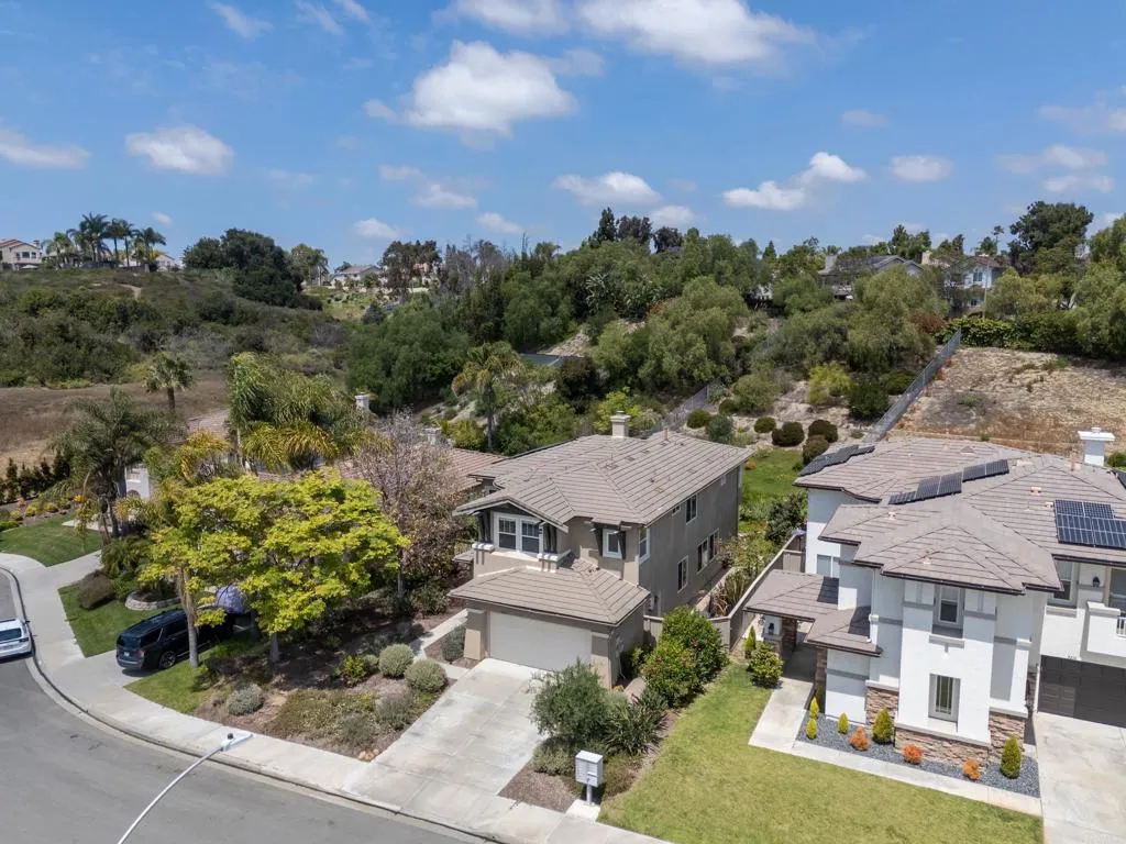 Spacious 4-bedroom, 2.5-bathroom single-family home in the Quintana community of Carlsbad, California, tucked at the end of a quiet cul-de-sac and backing to open space — just 10 minutes from the beach. At 2,855 square feet, this light-filled home offers an open, airy layout with vaulted ceilings and wood flooring throughout. The kitchen features a large center island, walk-in pantry, and gas cooktop. The main living areas flow naturally together with generous room sizes and an abundance of natural light. A bonus room upstairs adds flexible square footage ideal for a playroom, media room, home office, or gym. The oversized primary suite is a true retreat, featuring vaulted ceilings, a huge walk-in closet, and a private bath. The additional three bedrooms offer comfortable space for family, guests, or a dedicated home office — with room to grow into however your lifestyle evolves. Outside, the property shines. The large private backyard includes a productive edible food forest — a rare find in Carlsbad — with space to garden, entertain, and unwind. Paid solar and a new roof deliver long-term efficiency and peace of mind from day one. Backing to open space, the yard feels private and expansive with no rear neighbors. Residents of Rancho Carrillo enjoy access to a community pool, clubhouse, scenic neighborhood trails, and RV storage. Designated public schools for this address are Carrillo Elementary, San Elijo Middle School, and San Marcos High School — buyers to verify enrollment eligibility with San Marcos Unified School District. Located in the heart of Carlsbad with easy access to dining, shopping, and everyday essentials. Outdoor recreation is minutes away — Batiquitos Lagoon, Carlsbad State Beach, Calavera Hills trails, local parks, golf courses, and Legoland California Resort are all within a short drive. This Rancho Carrillo home delivers the full coastal California lifestyle — beach access, lagoon views, and nature trails nearby — with the privacy and space of a cul-de-sac lot backing open space.