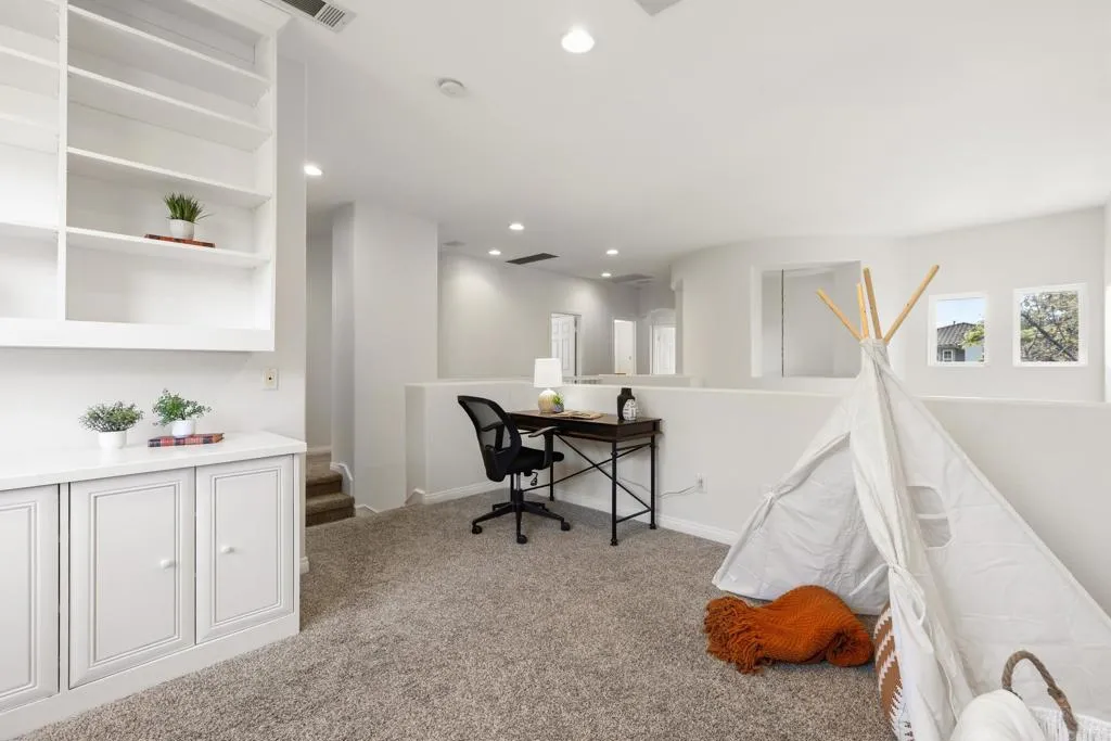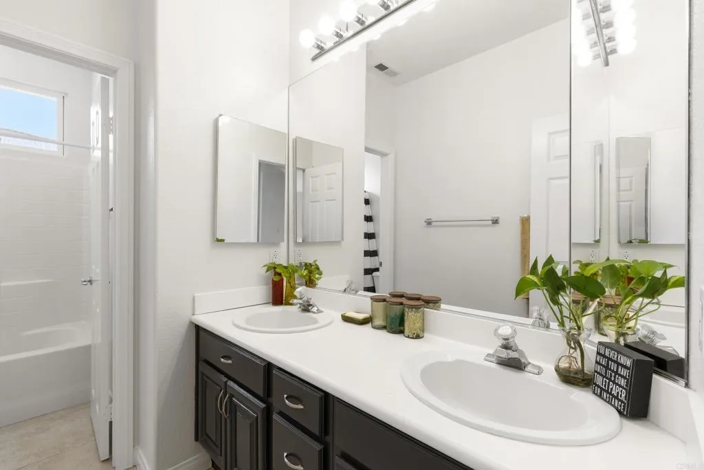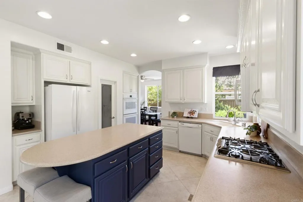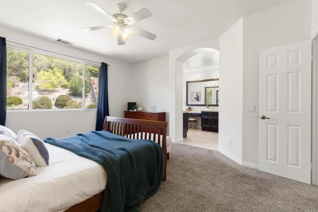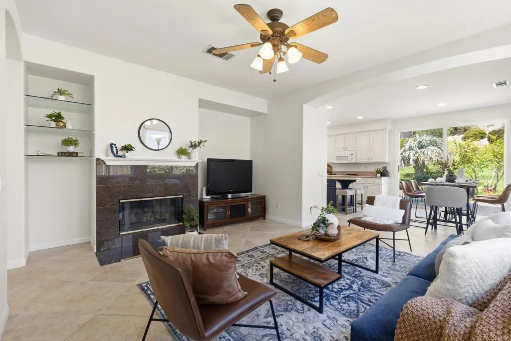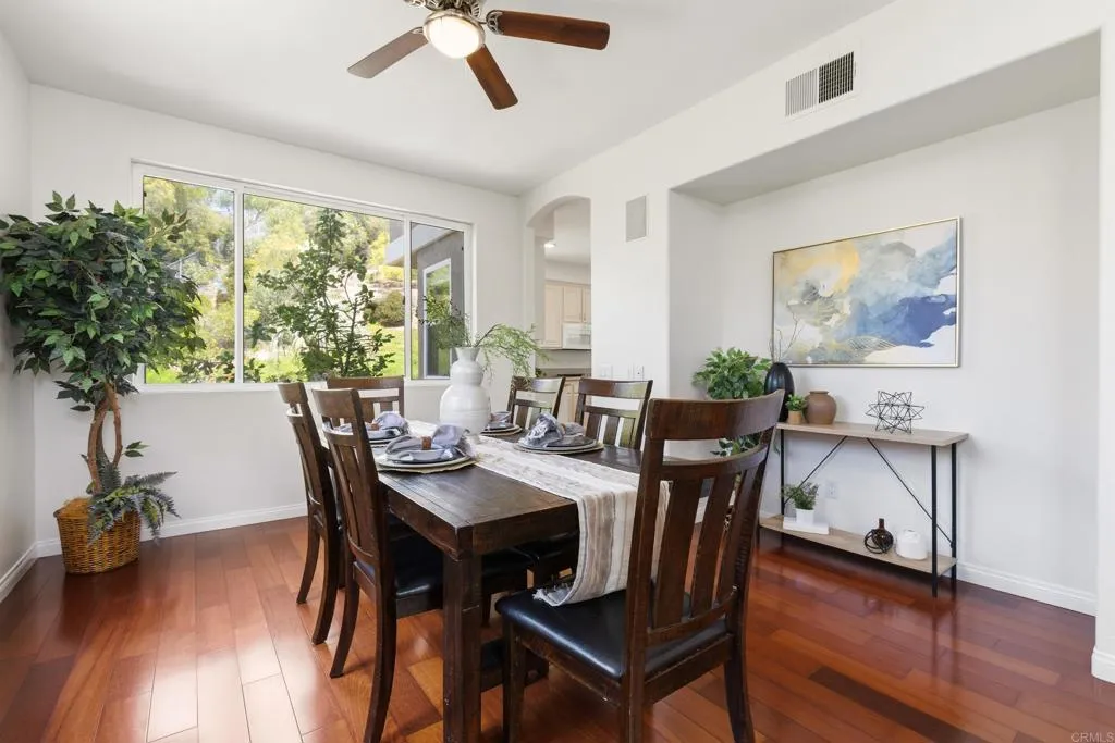 Spacious 4-bedroom, 2.5-bathroom single-family home in the Quintana community of Carlsbad, California, tucked at the end of a quiet cul-de-sac and backing to open space — just 10 minutes from the beach. At 2,855 square feet, this light-filled home offers an open, airy layout with vaulted ceilings and wood flooring throughout. The kitchen features a large center island, walk-in pantry, and gas cooktop. The main living areas flow naturally together with generous room sizes and an abundance of natural light. A bonus room upstairs adds flexible square footage ideal for a playroom, media room, home office, or gym. The oversized primary suite is a true retreat, featuring vaulted ceilings, a huge walk-in closet, and a private bath. The additional three bedrooms offer comfortable space for family, guests, or a dedicated home office — with room to grow into however your lifestyle evolves. Outside, the property shines. The large private backyard includes a productive edible food forest — a rare find in Carlsbad — with space to garden, entertain, and unwind. Paid solar and a new roof deliver long-term efficiency and peace of mind from day one. Backing to open space, the yard feels private and expansive with no rear neighbors. Residents of Rancho Carrillo enjoy access to a community pool, clubhouse, scenic neighborhood trails, and RV storage. Designated public schools for this address are Carrillo Elementary, San Elijo Middle School, and San Marcos High School — buyers to verify enrollment eligibility with San Marcos Unified School District. Located in the heart of Carlsbad with easy access to dining, shopping, and everyday essentials. Outdoor recreation is minutes away — Batiquitos Lagoon, Carlsbad State Beach, Calavera Hills trails, local parks, golf courses, and Legoland California Resort are all within a short drive. This Rancho Carrillo home delivers the full coastal California lifestyle — beach access, lagoon views, and nature trails nearby — with the privacy and space of a cul-de-sac lot backing open space.