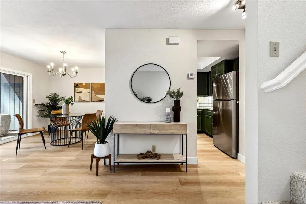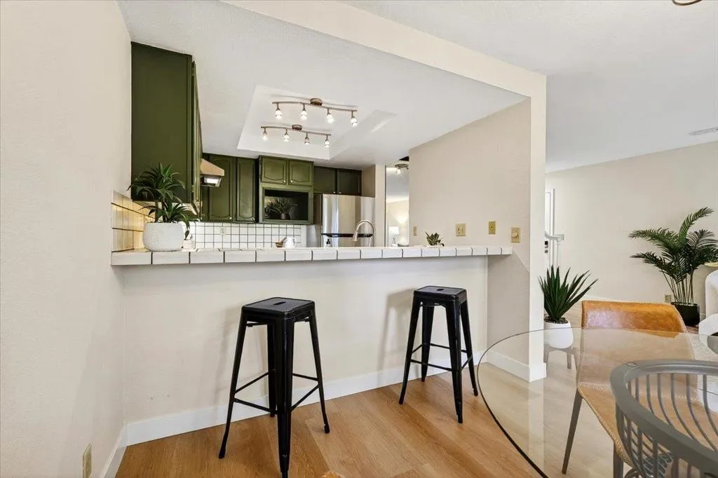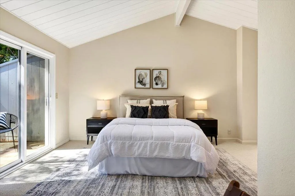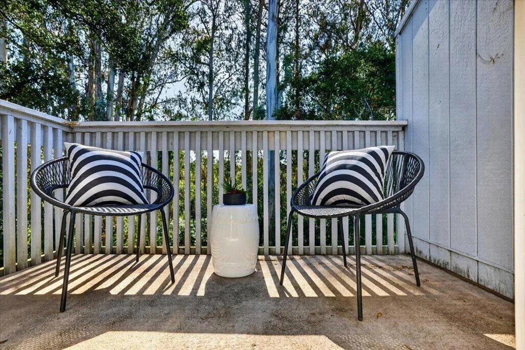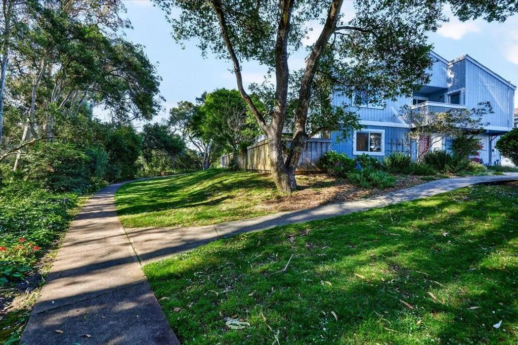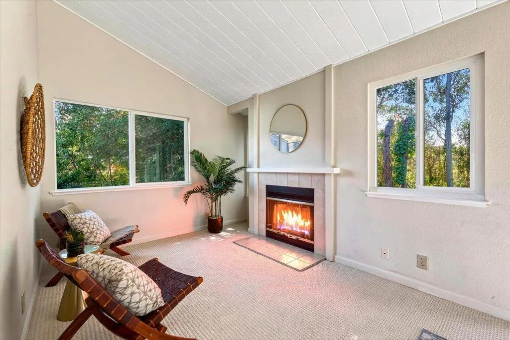 Perfectly positioned along a greenbelt, this beautifully updated home offers the ideal blend of comfort, style, and privacy. Fresh paint and new flooring create a crisp, modern feel, while vaulted ceilings and an open floorplan enhance the sense of space and light throughout. Natural light pours in through dual-pane windows, illuminating both living room and bedroomsthe primary suite, is anchored by one of two cozy fireplaces. The kitchen shines with new appliances, making it both functional and welcoming for everyday living or entertaining. Outdoor living is abundant, with three private balconies/decks and a serene patio complete with fountain. Perfect for relaxing or hosting guests. The attached two-car garage adds convenience, while the homes placement within the community provides exceptional privacy. Residents enjoy access to a well-maintained complex featuring a pool, scenic sidewalks, and a warm, connected neighborhood atmosphere. All of this is just minutes from beautiful beaches, popular surf spots, great shopping, and standout local eatery destinations. Solar panels help with energy costs. A rare opportunity with both tranquility and accessibility in one inviting home.
