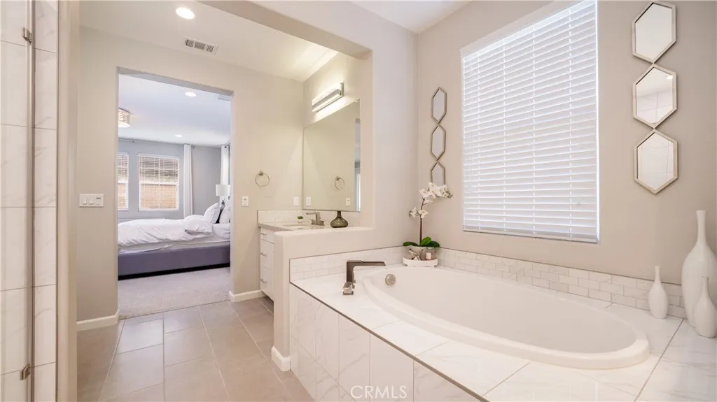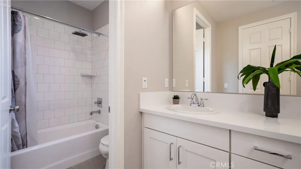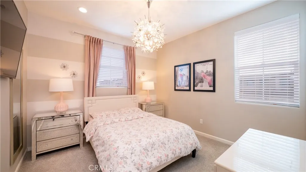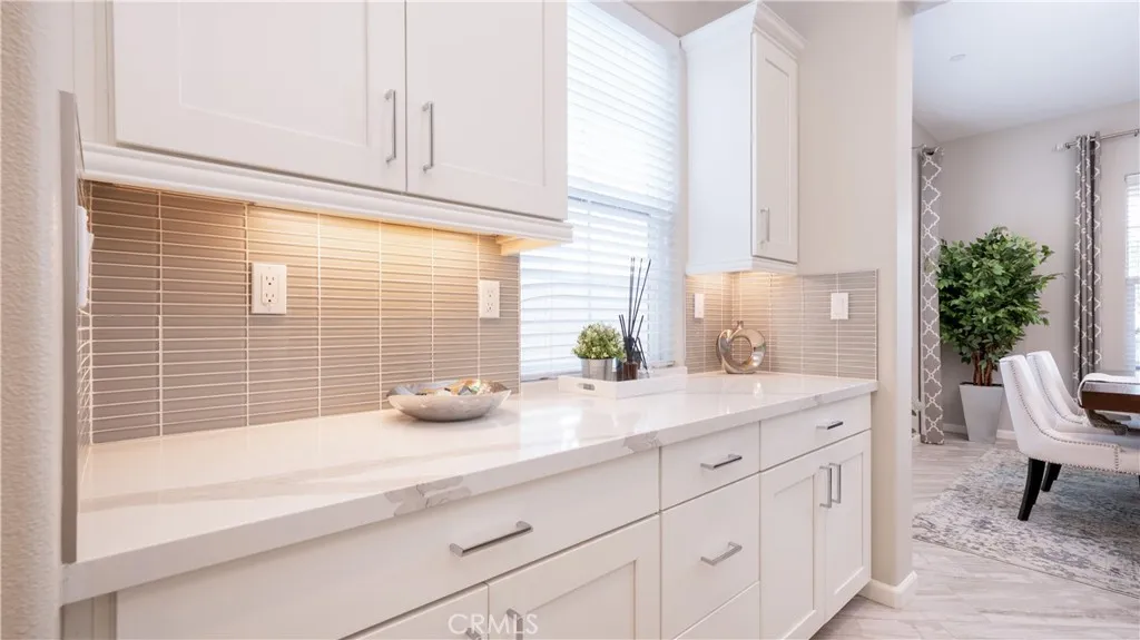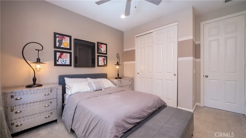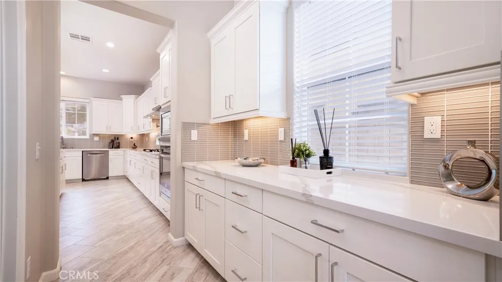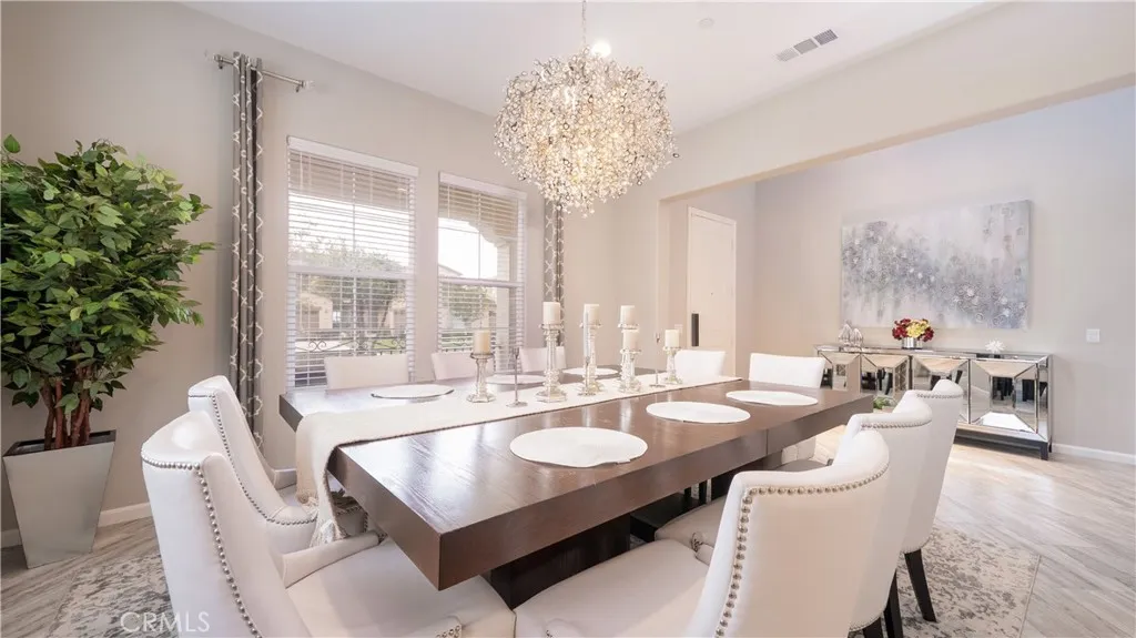 Located in the highly sought-after Rancho Etiwanda Estates, a prestigious gated community, this beautifully designed home offers style, space, and comfort throughout. With approximately 3,300 square feet of living space, the home features 4-bedrooms & 3.5 baths, including a convenient downstairs bedroom with a full en-suite bath, ideal for guests or multi-generational living. From the moment you arrive, the inviting front porch welcomes you with a comfortable seating area and peaceful neighborhood views. The home has been freshly painted inside and out and features striking, modern, custom lighting throughout. A Smart keyless front door and a camera doorbell add both convenience and security. Inside, you will find a formal dining room highlighted by a modern chandelier, along with a butler's pantry complete with quartz countertops, full backsplash, and under-cabinet lighting. The spacious walk-in pantry offers plenty of storage. This kitchen is truly the centerpiece of the home, designed with both function and style in mind. It features an oversized quartz island with breakfast bar seating, sleek pendant lighting, stainless steel appliances, including a built-in refrigerator, oven, microwave, dishwasher, and a 5-burner cooktop with a pot filler and powerful range hood. A glass tile backsplash adds a refined finishing touch. The family room is warm and inviting, featuring a fireplace, an oversized ceiling fan, and a panoramic sliding door that opens seamlessly to the backyard. The indoor-outdoor flow is perfect for entertaining, leading to a covered CA room equipped with ceiling fans, recessed lighting & electrical outlets. Upstairs, a spacious loft with recessed lighting and French doors that open to a private balcony with unobstructed mountain views. The primary suite offers a relaxing retreat with custom lighting, balcony access, and a luxurious en-suite bathroom. Enjoy a separate soaking tub, an oversized walk-in shower with rain shower, floor-to-ceiling tile work, and a built-in bench. Dual vanities, a dedicated glam station, and a large walk-in closet with custom organizers complete the space. The 3-car garage features epoxy-coated flooring and insulated doors. Additional highlights include dual Honeywell Smart thermostats, a fire sprinkler system, & a tankless water heater. The backyard has been freshly sodded and is ready for your touch. This is a rare opportunity to own a thoughtfully upgraded home in one of the area's most desirable communities.