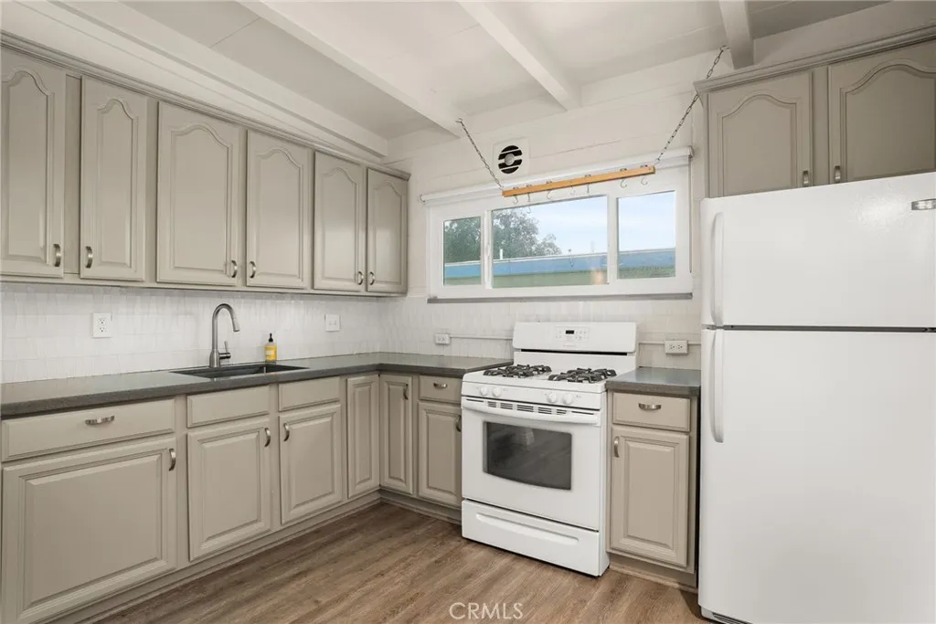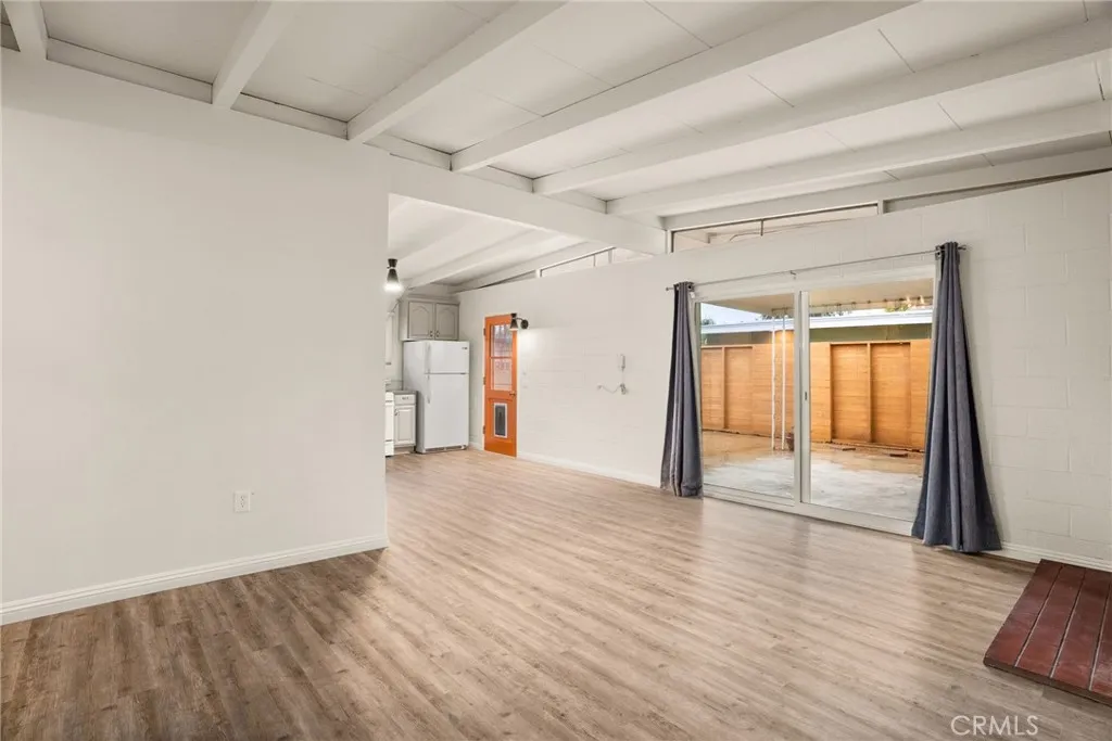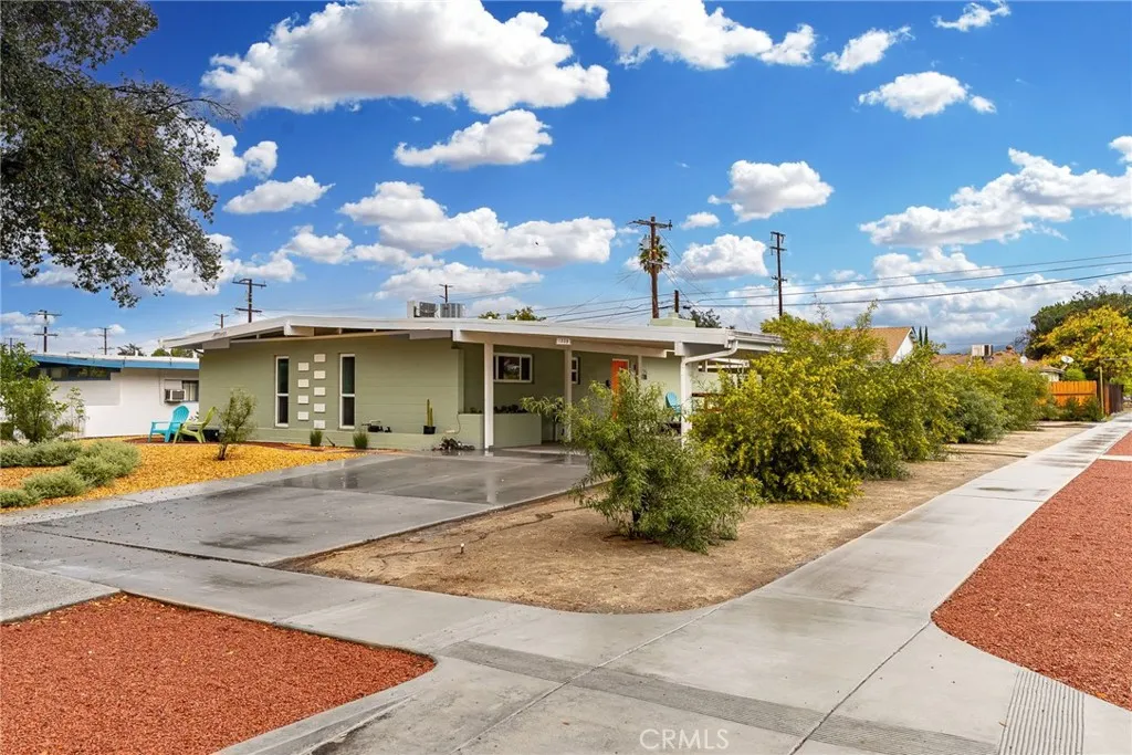 Single story mid-century home one block from the University of Redlands. This 3 bed, 2 bathroom home has it's own small, private yard and an attached carport. There is central heat and air, and each bedroom has it's own split system air conditioner with heat pump. The fridge, washer and dryer are included. The kitchen features quartz countertops and updated cabinets. Their is luxury vinyl flooring throughout the entire home, and all of the windows were replaced in 2023. Drought tolerant landscaping keeps water bills down in the summer. This block home with exposed beams has lot's of character throughout. One bathroom features a shower with tub, and the second bathroom has a walk in shower.