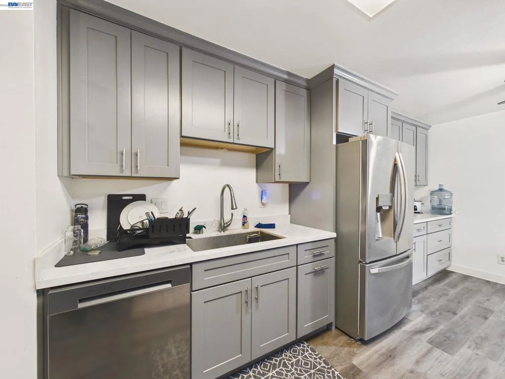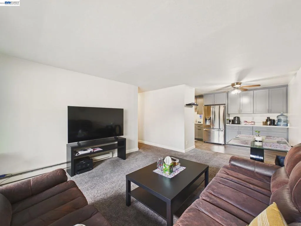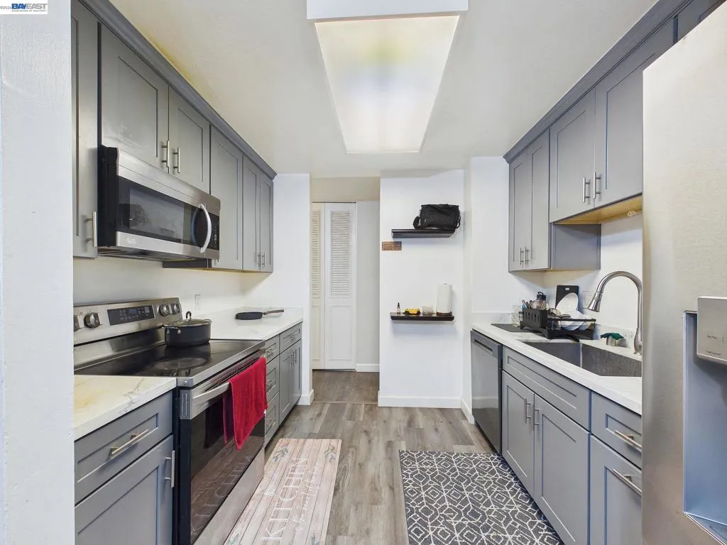 This beautifully updated and highly desirable 2-bedroom, 2-bathroom condominium offers a bright, modern living space designed for comfort and convenience. The upgraded kitchen features a full suite of appliances including a stove/range, dishwasher, and microwave and flows seamlessly into a separate dining area. The spacious living room is filled with natural light and opens through a large sliding glass door to a private deck, creating an effortless indoor-outdoor living experience. Newer laminate flooring in the kitchen, entryway, and bathrooms adds a fresh, contemporary touch throughout the home. Ideally located less than two miles from the new Apple campus and near numerous major tech companies, this home provides easy access to freeways, expressways, and a wide variety of shopping and dining options. The HOA fee covers water, sewer, garbage, hot water, WiFi, basic cable, security, and access to all community amenities. Residents enjoy a resort-style setting featuring two swimming pools, a spa, fitness center, sauna, community room, pool and ping pong tables, tennis courts, BBQ areas, a car wash station, elevators, and expansive green spaces. This exceptional community offers the perfect blend of comfort, lifestyle, and prime location. Showings by appointment only.