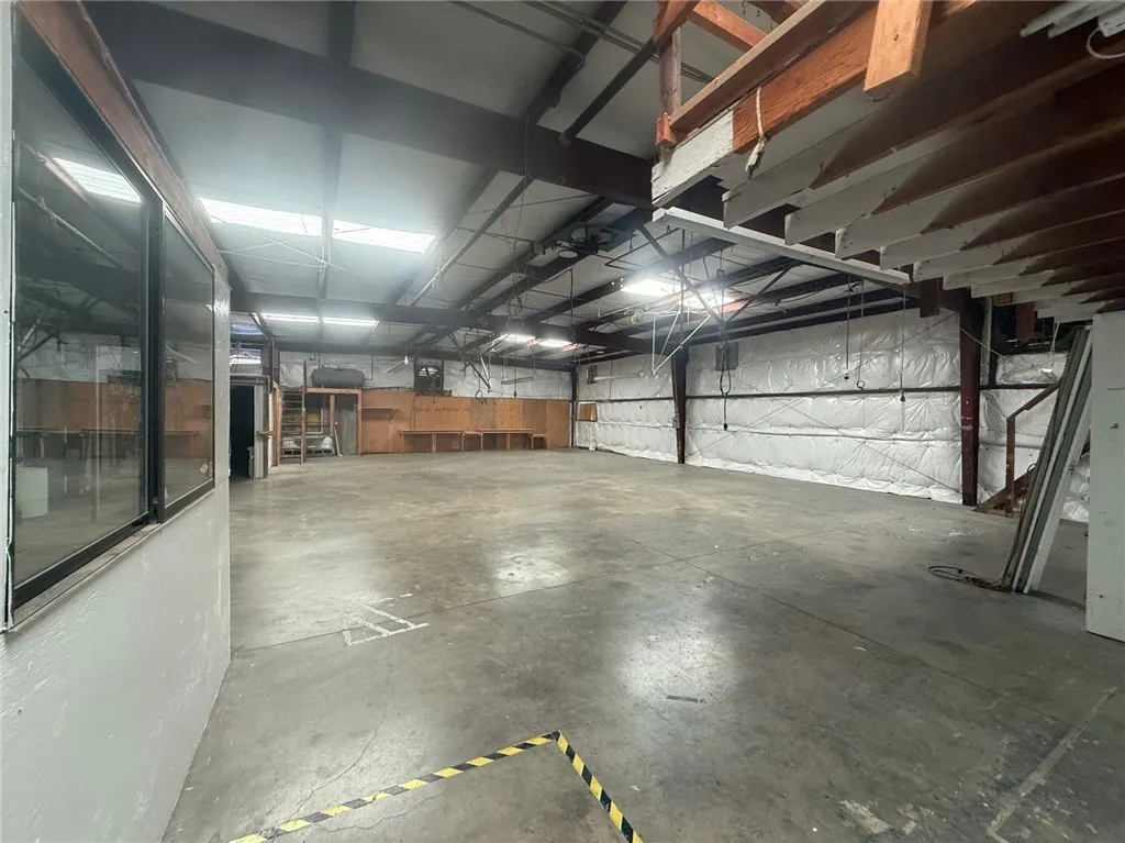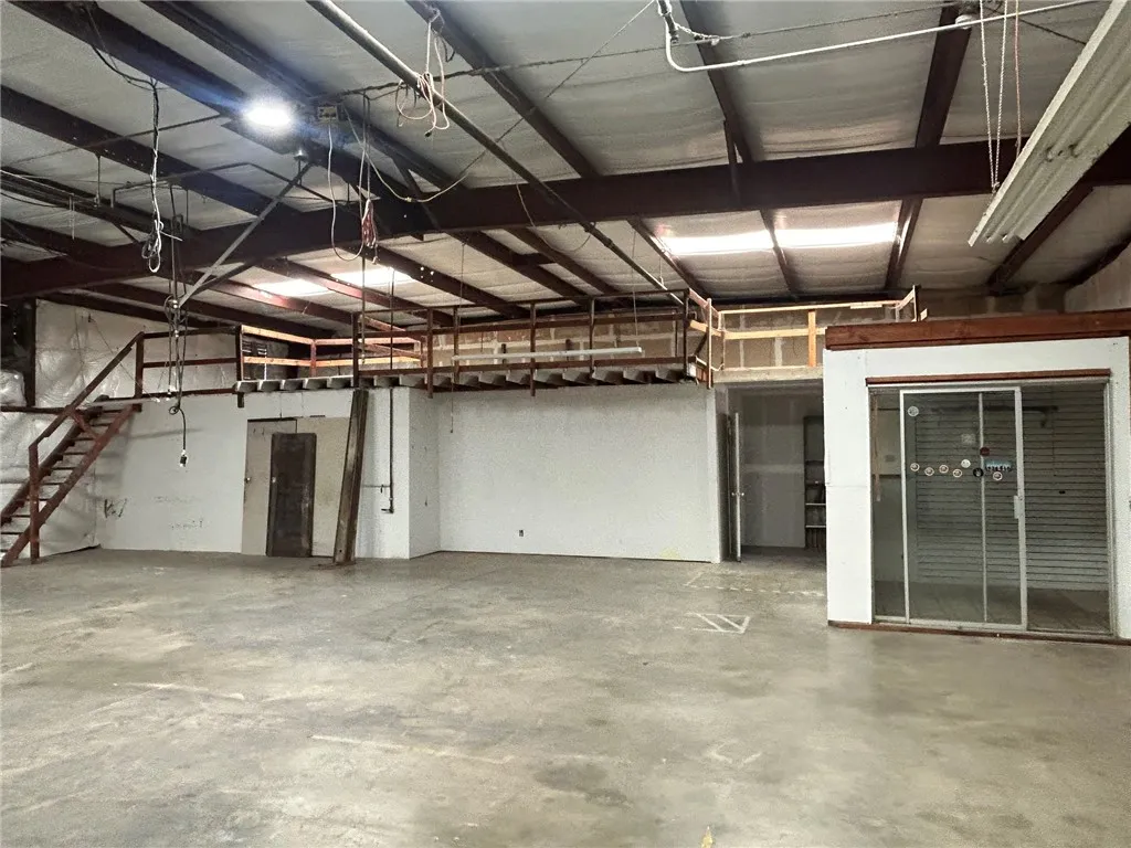 Warehouse with bright lighting, mezzanine storage, roll-up door, and plenty of built-in power. Ideal for a variety of uses, including light manufacturing, distribution, storage, or contractor operations. Tenant pays electric, telephone, and internet, Landlord pays water and trash.