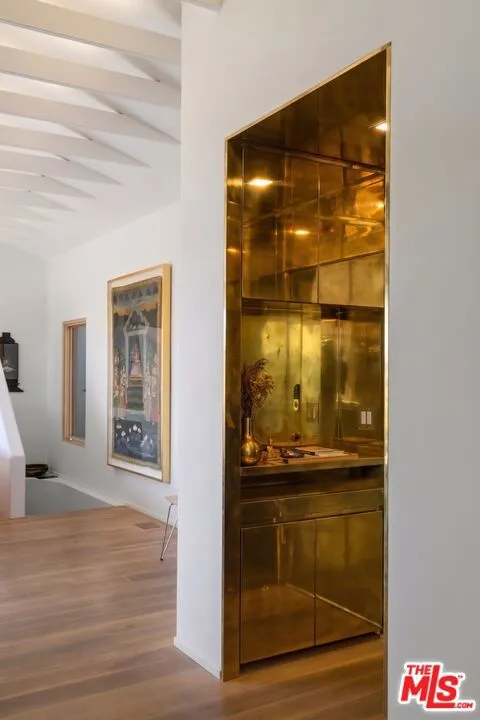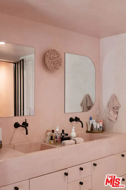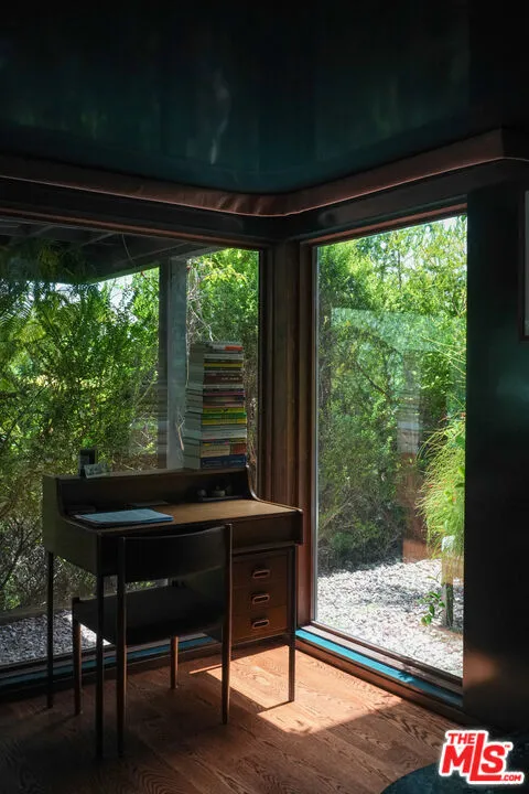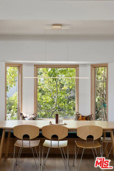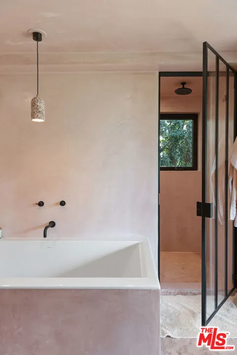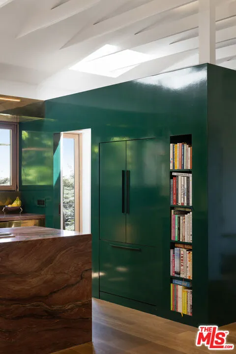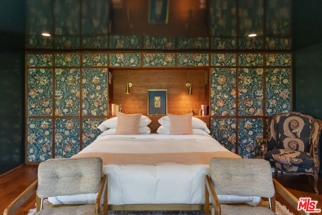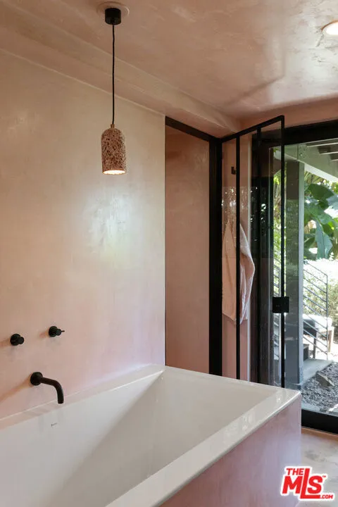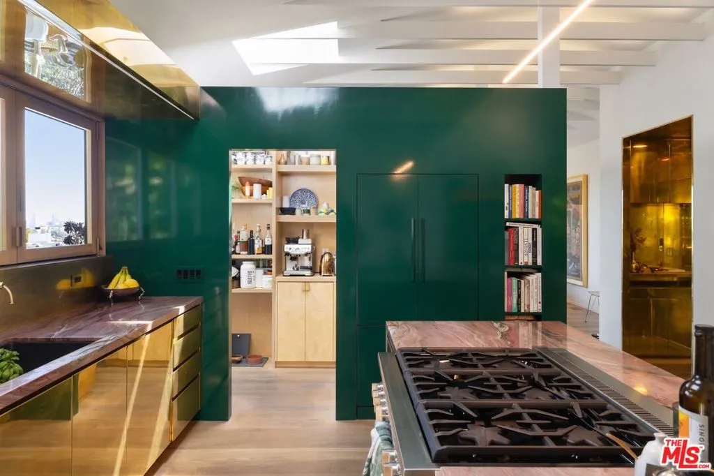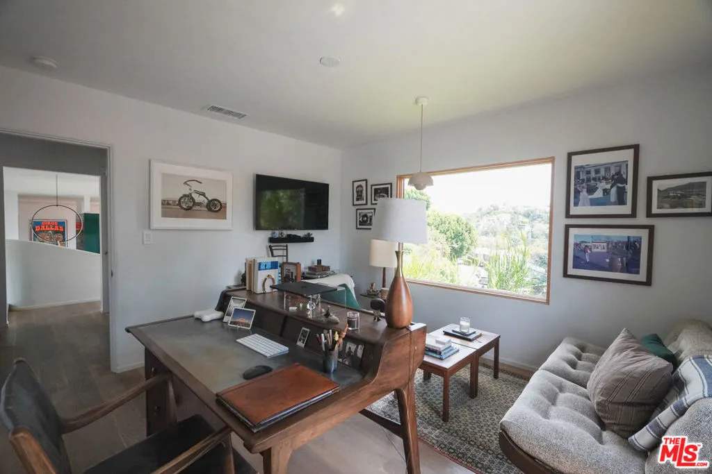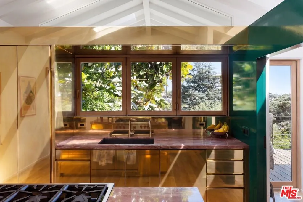 This is your invitation to live within the pages of design history. 1710 N. Dillon Ave is the celebrated Silver Lake Hills bungalow that has captivated the design world. Featured in Elle Decor, Interior Design Magazine, and Los Angeles Interiors following its redesign by the acclaimed LAUN studio, this 1930s gem has been thoughtfully expanded to 2,200 square feet. The result is a 3 bedroom, 2 bath sanctuary where bold vision meets timeless elegance. Step through the yellow-drenched front door into a brass-clad entryway, glowing with warm metallic tones and refined sophistication. The sunlit, loft-like upper level unfolds with white oak floors and soaring beamed ceilings, flowing seamlessly into an open living, dining, and kitchen space that feels both expansive and intimate. At its center stands the "mother of all kitchen islands"-- a monolithic pink marble statement piece paired with custom unlacquered brass cabinetry that will develop a rich patina over time. Overhead skylights, brass-framed outswing tri-panel windows above the sink, and Thermador luxury appliances elevate the space into a true entertainer's dream. A sculptural, high-gloss lacquered green box rises like a jewel, artfully separating the kitchen from the living area while discreetly concealing a butler's pantry, refrigerator, coat closet, integrated dog door, and recessed gallery wall-- function and artistry in perfect balance. From the living room, sliding glass doors open to a 400-square-foot cumaru wood deck with sweeping, unobstructed views of the Downtown Los Angeles skyline. Here, everyday moments become unforgettable-- whether hosting under the stars or savoring a quiet morning coffee above the city. Down the hall, two spacious secondary bedrooms are filled with natural light and offer generous closet space-- ideal for guests, a home office, or creative pursuits. The powder room features Maison C wallpaper, custom green tile flooring, and Grohe fixtures, bringing a refined, playful edge. Throughout the home, custom Italian brass door handles by Ferramenta Spinardi of Milan adds a subtle layer of craftsmanship. The reimagined staircase descends past the two-car garage to the private garden-level primary suite. A hand-carved marble step marks the transition into a richly layered retreat, where saturated tones, House of Hackney wallpaper, and high-gloss finishes create an atmosphere of quiet luxury. The expansive walk-in closet is complemented by additional concealed storage behind the bed, thoughtfully integrated for both beauty and function. The spa-like primary bath is a soft blush sanctuary, featuring pink-tinted cement floors and sink, matte black fixtures, dual shower heads, and a BainUltra deep soaking tub designed for complete relaxation. Floor-to-ceiling openings and sliding doors in the primary reveal the true piece de resistance: a sprawling private garden with lush greenery, winding pathways, and a tranquil fountain--an immersive escape that feels worlds away from the city below. Every detail at 1710 N. Dillon Ave creates more than a home-- it offers a deeply personal retreat that balances airy openness with jewel-toned intimacy. Nestled in the heart of Silver Lake, moments from the reservoir, cafes, boutiques, and some of LA's most vibrant dining and creative scenes, yet perched in serene privacy above it all. This magazine-worthy residence is more than a lease-- it is a rare opportunity to inhabit architectural artistry and timeless design. Elevate your address to a true work of art. Available for a 12 month lease starting June 15th. Owner pays for gardener/landscaping and water. Tenant pays for gas, electricity, trash, and internet. Washer and dryer in garage. Refrigerator and microwave included. Home equipped with Nest Thermostat. Option to use SimpliSafe Security System. Brand new tankless water heater and newly upgraded HVAC system. Can come partially furnished. Inquire to listing agent.