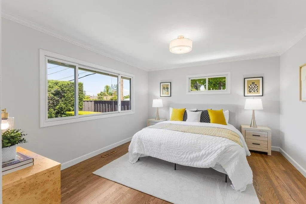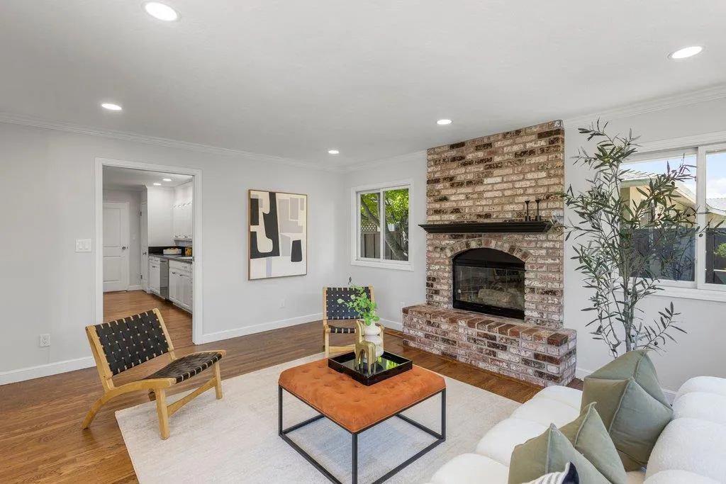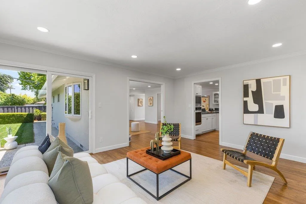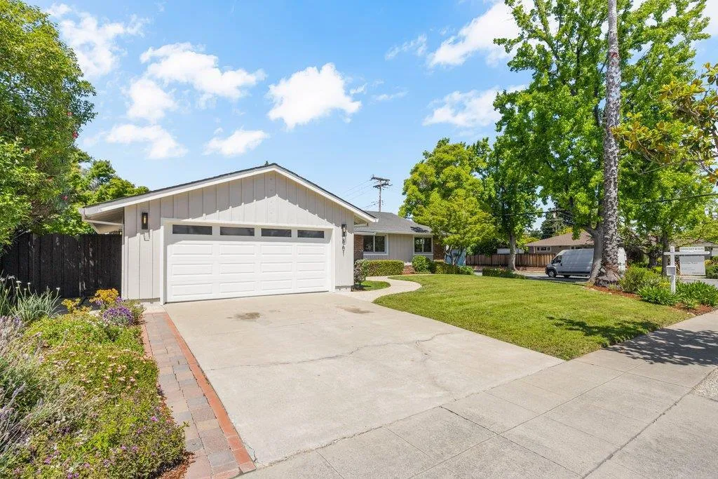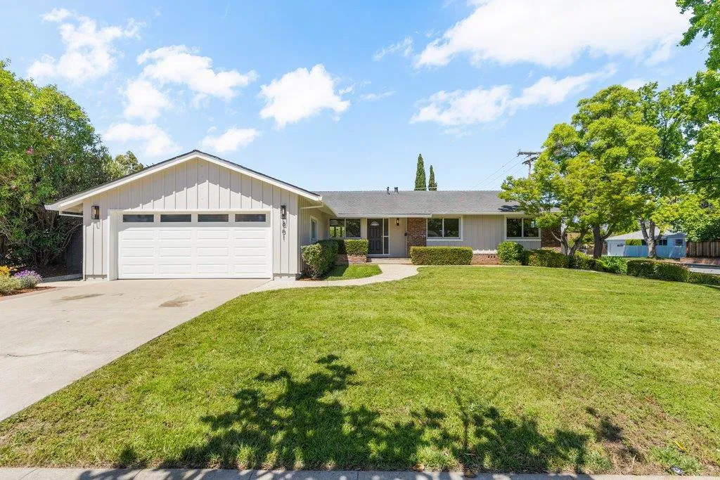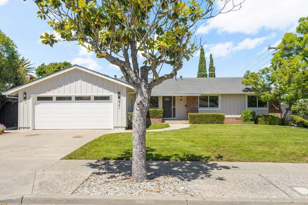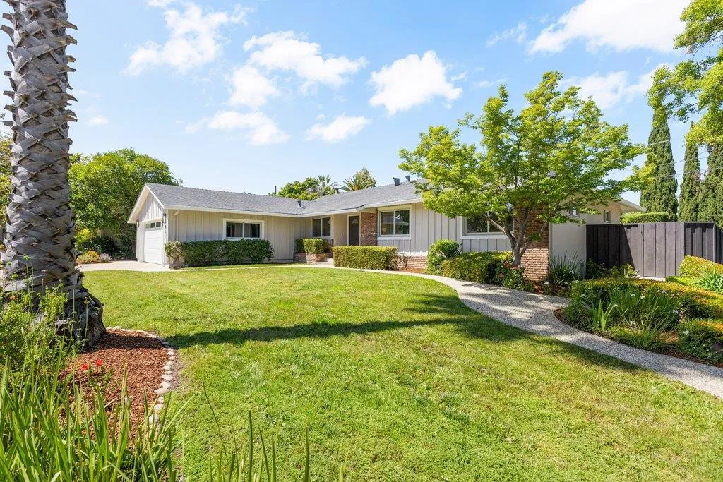 Turnkey ranch living in the West Sunnyvale's Cherry Hill neighborhood. This beautifully remodeled single-story home offers 3 bedrooms, 2 bathrooms, and 1,738 sf on an expansive 8,276 sf lot. Thoughtfully upgraded throughout with fresh interior and exterior paint, refinished wood flooring, upgraded all-wood windows, and a light, open layout ideal for everyday living and entertaining. The remodeled kitchen features granite countertops, freshly painted custom cabinetry, and stainless steel appliances, including a 5-burner gas stove, hood, and wine fridge, with a formal dining room just off the kitchen. Spacious living room featuring a contemporary bay window and recessed lighting. The inviting family room includes a brick fireplace and opens to the backyard through an upgraded sliding glass door, complemented by recessed lighting. The hall bath is fully remodeled with dual sinks, quartz countertop, designer tile, and updated lighting. The spacious primary suite offers dual closets and an updated bath with quartz countertop and vessel sink. The private backyard features a pebbled-aggregate patio, mature shrubs and trees, while the front yard offers great curb appeal with a lawn, a palm tree, and lush landscaping. Top Cupertino Schools: West Valley, Cupertino Middle, & Homestead High.