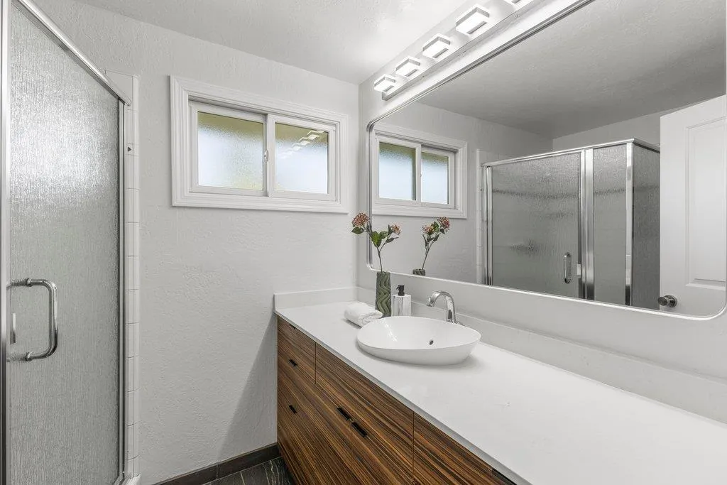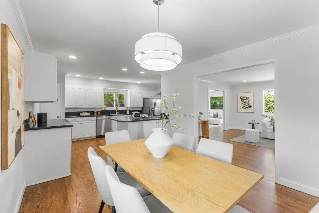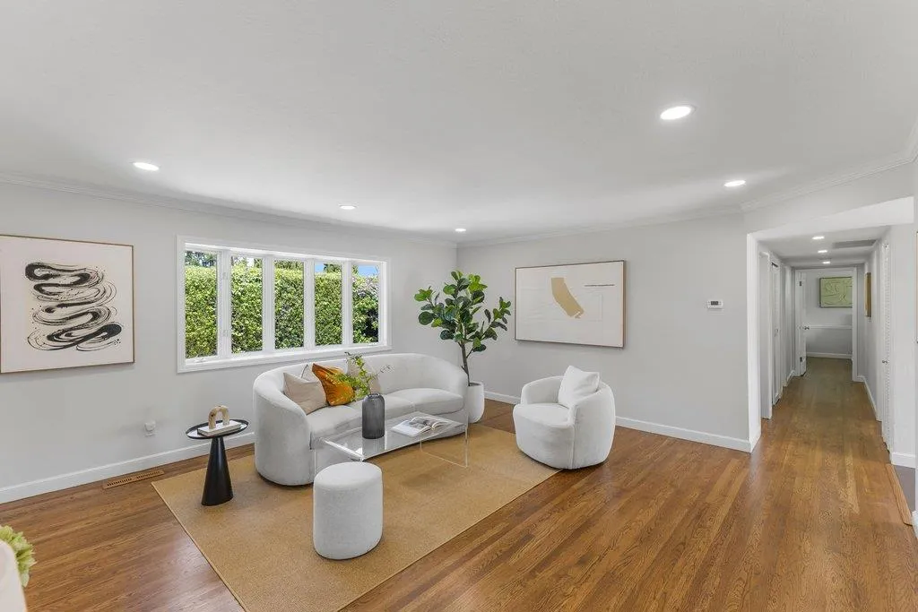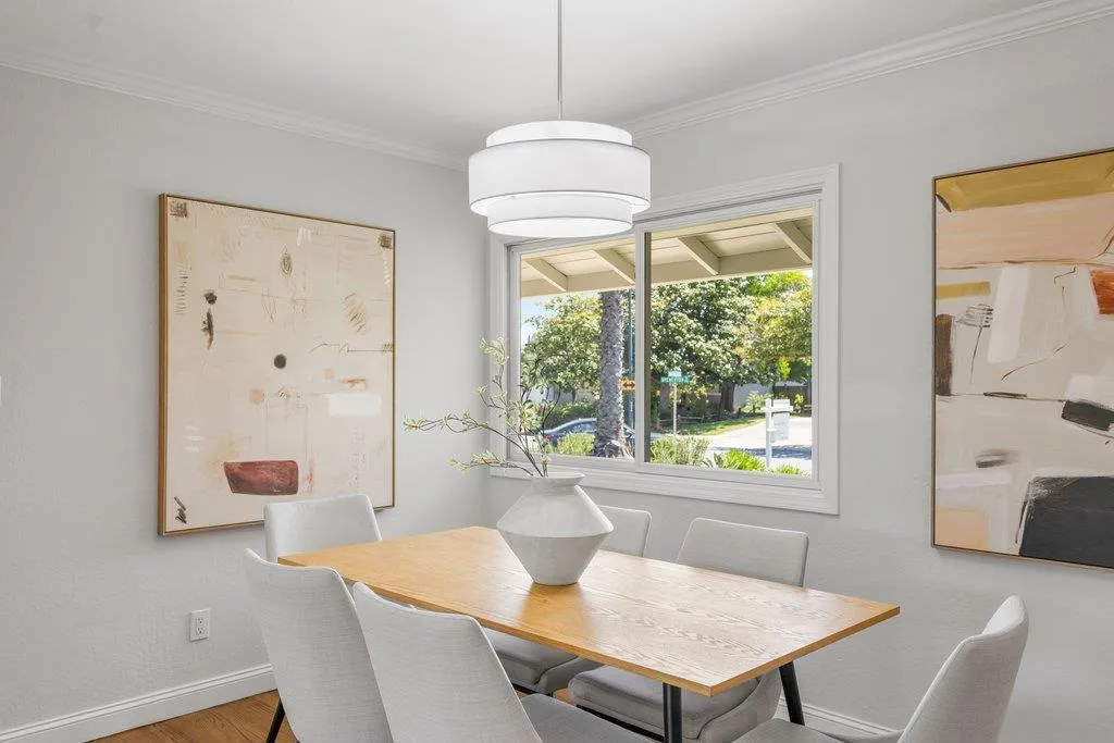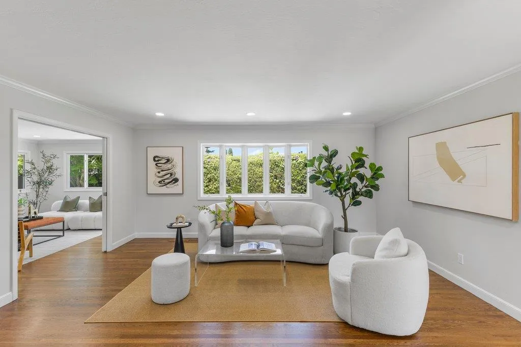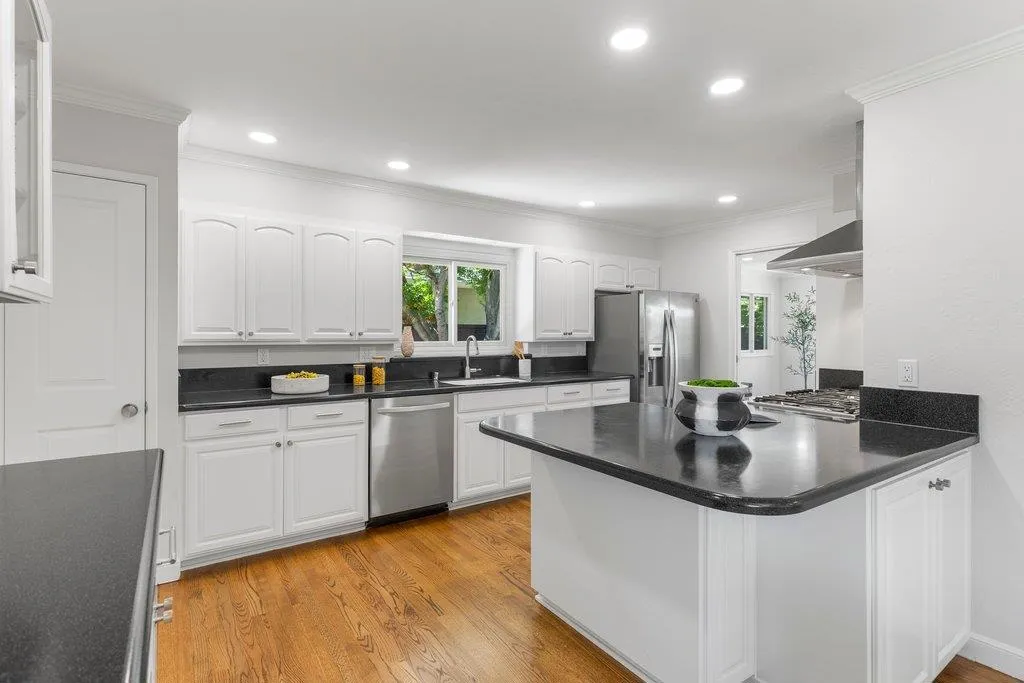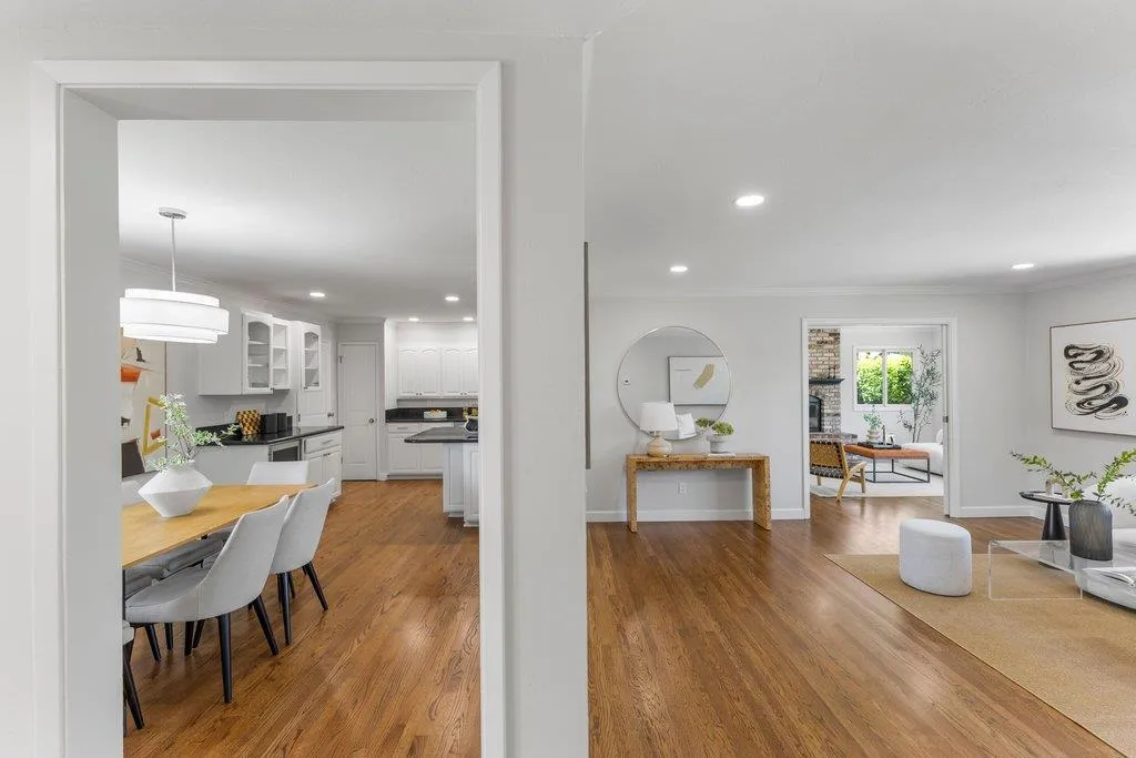 Turnkey ranch living in the West Sunnyvale's Cherry Hill neighborhood. This beautifully remodeled single-story home offers 3 bedrooms, 2 bathrooms, and 1,738 sf on an expansive 8,276 sf lot. Thoughtfully upgraded throughout with fresh interior and exterior paint, refinished wood flooring, upgraded all-wood windows, and a light, open layout ideal for everyday living and entertaining. The remodeled kitchen features granite countertops, freshly painted custom cabinetry, and stainless steel appliances, including a 5-burner gas stove, hood, and wine fridge, with a formal dining room just off the kitchen. Spacious living room featuring a contemporary bay window and recessed lighting. The inviting family room includes a brick fireplace and opens to the backyard through an upgraded sliding glass door, complemented by recessed lighting. The hall bath is fully remodeled with dual sinks, quartz countertop, designer tile, and updated lighting. The spacious primary suite offers dual closets and an updated bath with quartz countertop and vessel sink. The private backyard features a pebbled-aggregate patio, mature shrubs and trees, while the front yard offers great curb appeal with a lawn, a palm tree, and lush landscaping. Top Cupertino Schools: West Valley, Cupertino Middle, & Homestead High.