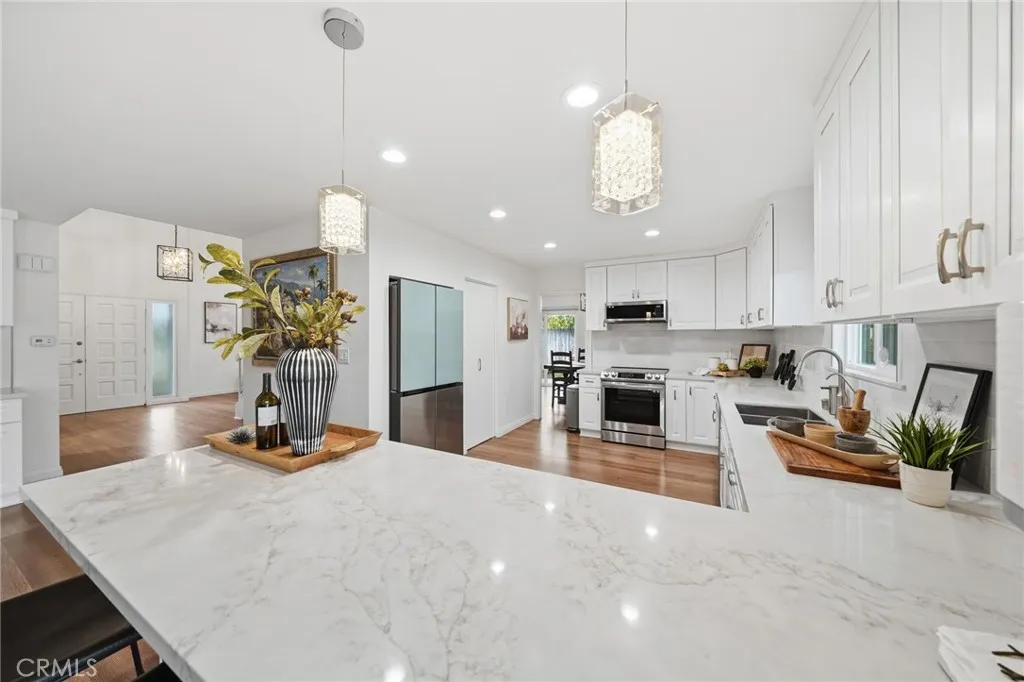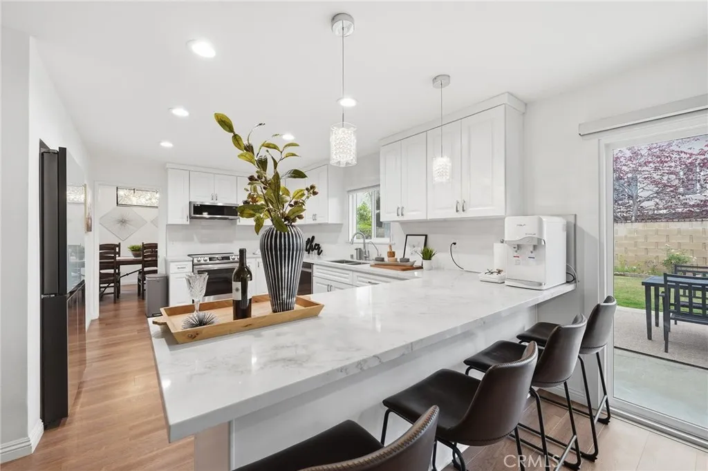 Situated in the prestigious community of Villa Park, 17862 Beckley Circle showcases a fully remodeled residence defined by sleek, modern design and elevated living. This exceptional 5-bedroom, 3-bathroom home has been thoughtfully reimagined with clean lines, open spaces, and high-end contemporary finishes throughout. The main level features a stylishly appointed bedroom, ideal for guests or a private office, offering both flexibility and convenience. Upstairs, the luxurious primary suite serves as a serene retreat, complete with a private balcony—perfect for enjoying quiet mornings and evening sunsets. The home’s modern aesthetic is complemented by a functional, open-concept layout designed for effortless living and sophisticated entertaining. Spacious secondary bedrooms provide comfort and versatility, while the overall design emphasizes natural light and seamless flow. Set on an expansive, estate-sized lot, the property offers privacy, exclusivity, and room to expand. Blending contemporary style with substantial land value, this turnkey residence delivers a rare opportunity to own a modern home in one of Orange County’s most sought-after neighborhoods.