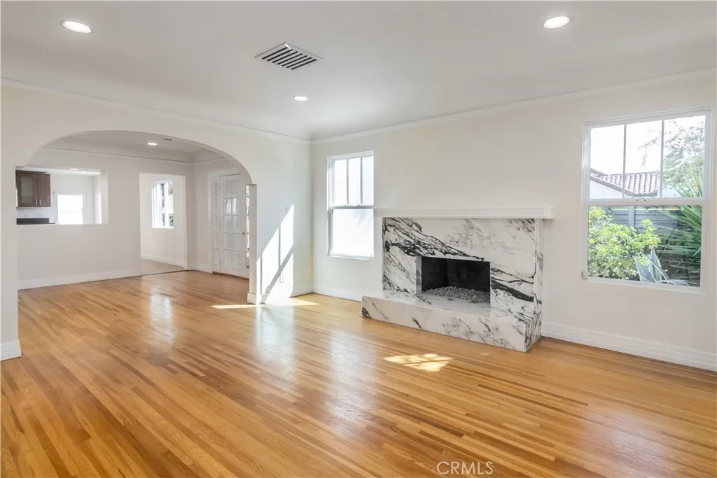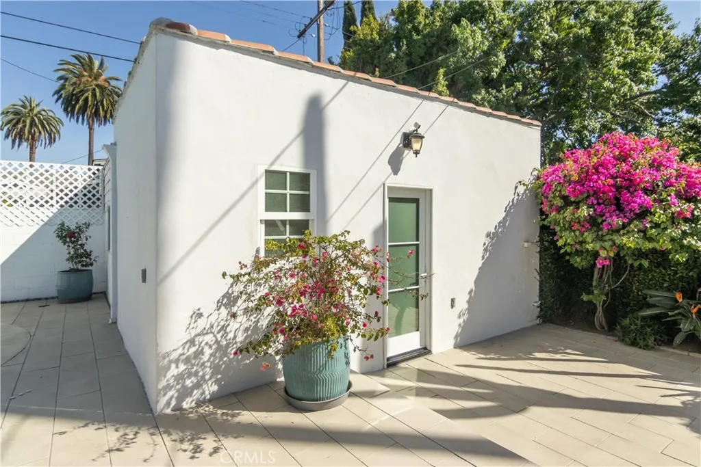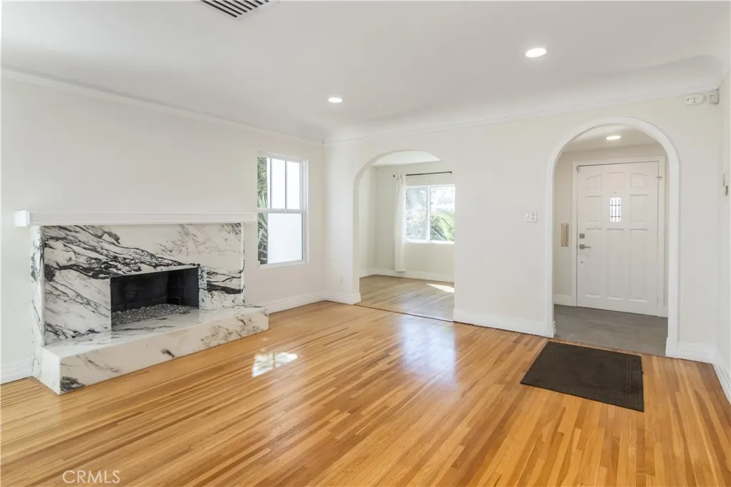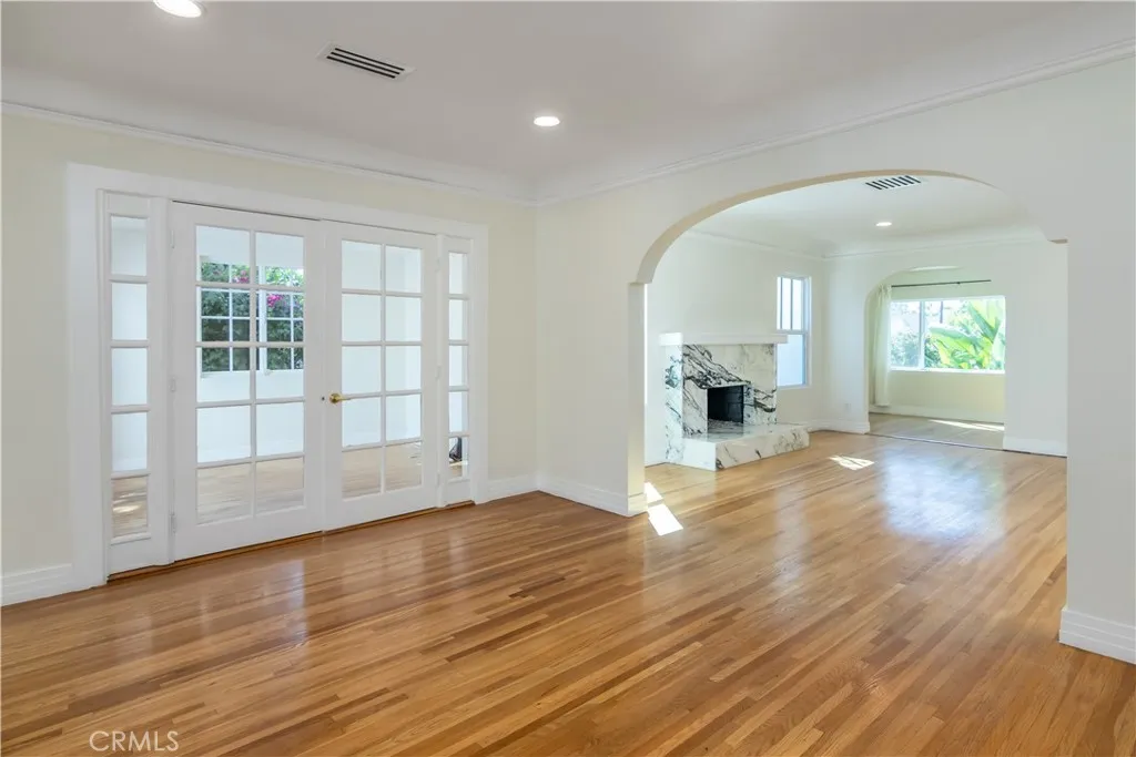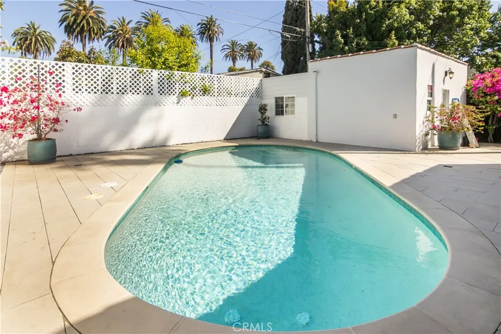 A rare Mid-Wilshire Spanish compound with a pool, privately set on a 6,000 sq. ft. corner lot, blending historic character with modern comfort. This 3-bedroom, 2-bath main residence offers thoughtfully updated living, along with a detached, poolside bonus retreat that adds exceptional flexibility, in one of Los Angeles’ most sought-after neighborhoods. Nestled behind hedges and mature landscaping, the home welcomes with classic curb appeal and a sense of privacy that’s increasingly hard to find. Just off the entry, a sunlit sitting room offers a flexible space ideal for a media lounge, reading retreat, or home office. The expansive living room is filled with natural light and anchored by a striking marble fireplace, with original hardwood floors and arched openings that reflect the home’s Spanish character. The formal dining room connects beautifully to a bright sunroom through French doors, creating a seamless transition to indoor-outdoor living. A second set of French doors leads from the sunroom to a raised wood entertaining deck and newly built backyard retreat, where a sparkling pool sets the stage for quintessential California living. The updated kitchen features a large center island with abundant storage, along with a charming breakfast nook and adjacent laundry closet for everyday convenience. Both bathrooms in the main house have been tastefully updated, blending modern finishes with the home’s original charm. Outdoors, the newly completed pool and deck create a true private oasis. A private, poolside bonus retreat with bath and kitchenette adds flexible space for guests, work, or creative use. Located just minutes from The Grove, LACMA, Beverly Hills, and some of Los Angeles’ best dining, shopping, and cultural destinations, this property delivers the perfect balance of central convenience and private, resort-like living.