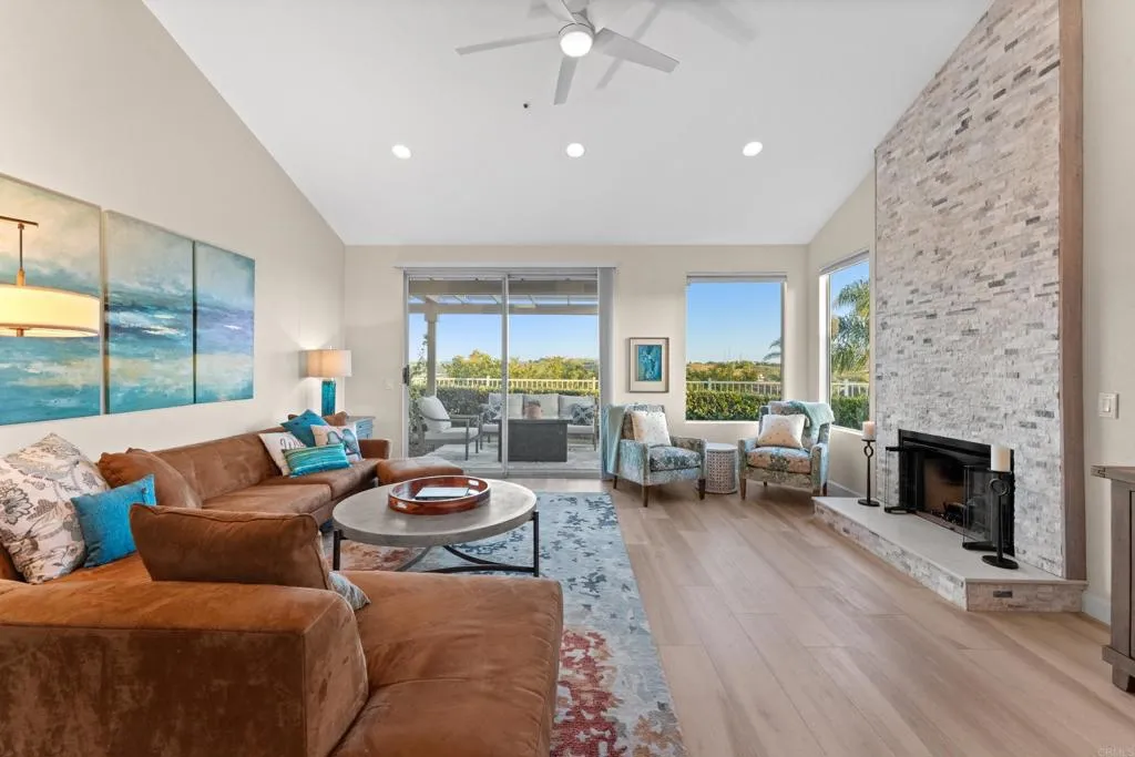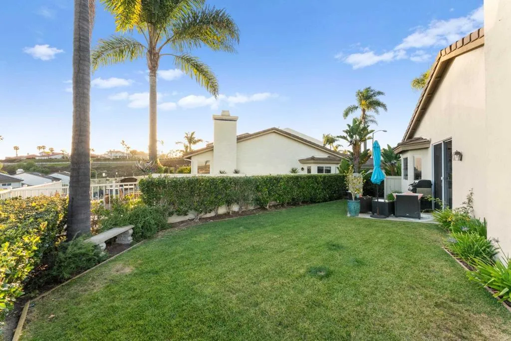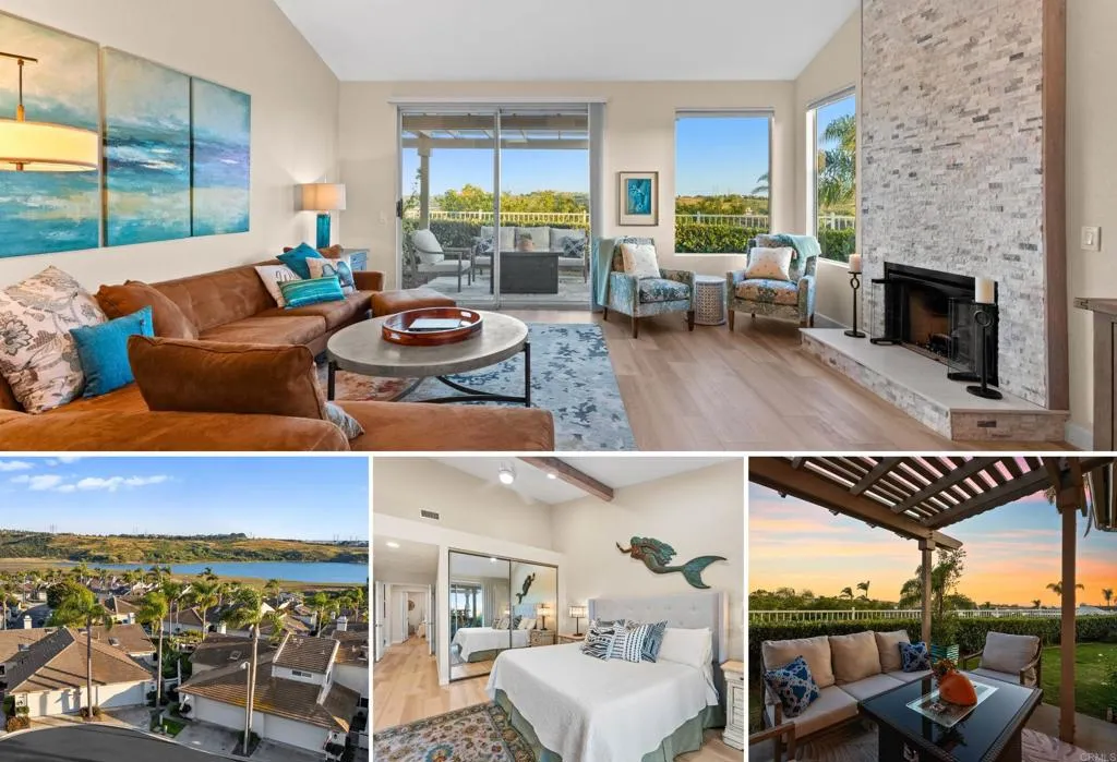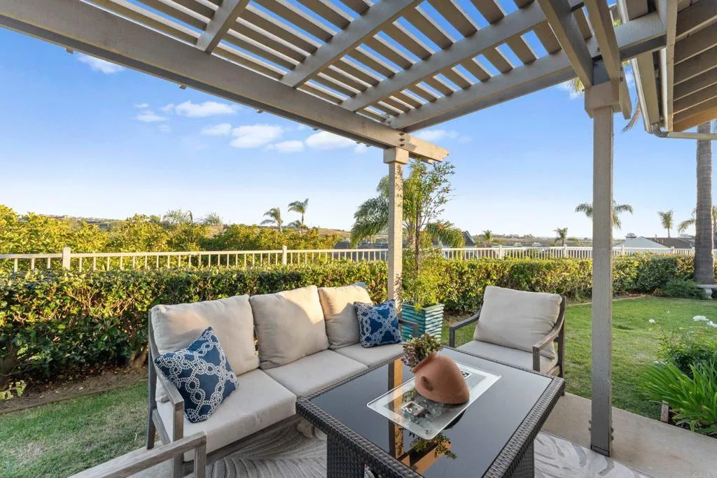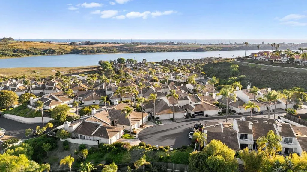 Perched at the top of the hill in Laguna Del Mar, this single story home offers one of the most breathtaking 180 degree panoramic view settings in all of Carlsbad, capturing the ocean, lagoon, and rolling hillsides. From this elevated vantage point, you can enjoy both sunrise and sunset views from the privacy of your own backyard, creating a dynamic and ever changing backdrop throughout the day. Inside, vaulted ceilings and an open layout create a light, airy feel that flows seamlessly to the expansive backyard and side yard, perfect for entertaining or simply taking in the view. The home features two bedrooms, two bathrooms, and a spacious two car garage, offering both comfort and convenience. Over the past few years, the home has been thoughtfully upgraded with a custom pergola, new landscaping, an upgraded bathroom with a soaking tub, a brand new HVAC system with a heat pump, and an enhanced kitchen featuring a high end gas range. Located just minutes from the beach, Carlsbad Village, the lagoon, coastal trails, dining, and shopping, this home offers the ideal balance of convenience and coastal living. Laguna Del Mar residents also enjoy access to a community pool, spa, tennis courts, and nearby hiking and biking trails. Single level homes with this level of view, location, and lifestyle rarely come available.