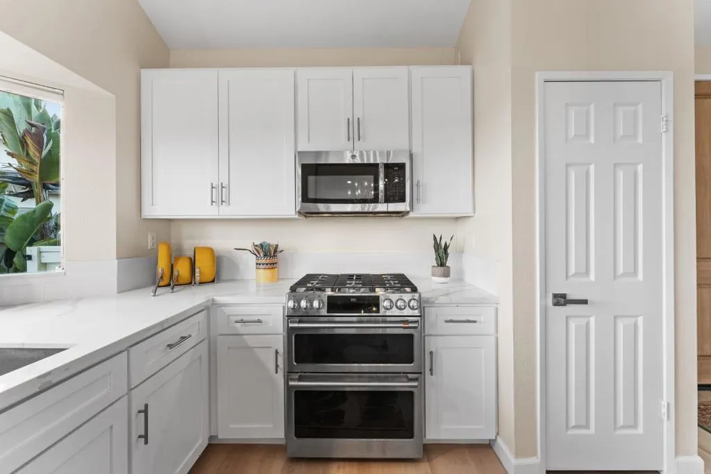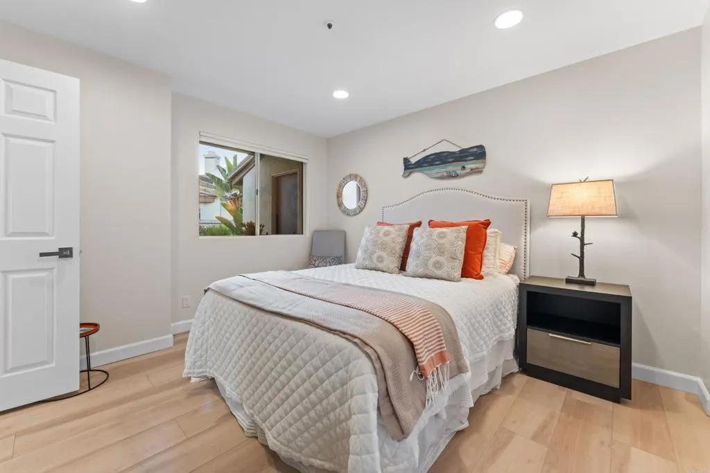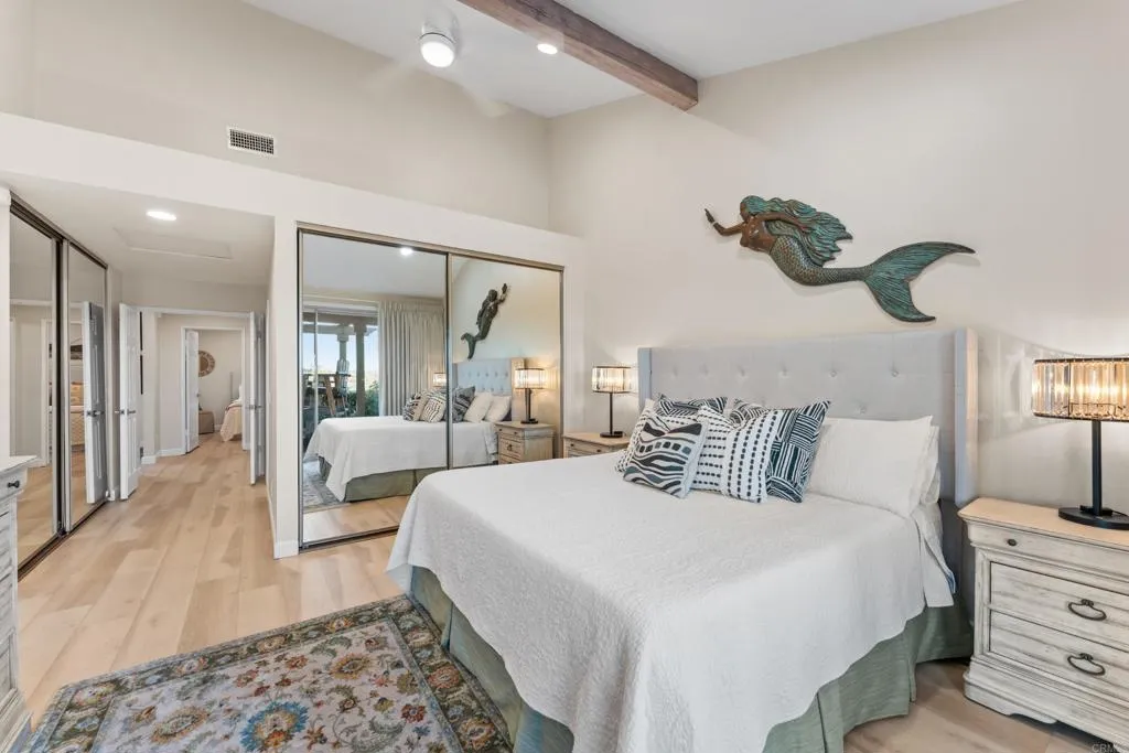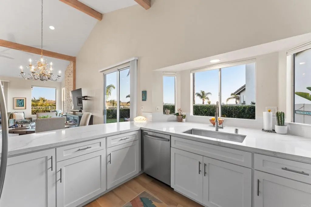 Perched at the top of the hill in Laguna Del Mar, this single story home offers one of the most breathtaking 180 degree panoramic view settings in all of Carlsbad, capturing the ocean, lagoon, and rolling hillsides. From this elevated vantage point, you can enjoy both sunrise and sunset views from the privacy of your own backyard, creating a dynamic and ever changing backdrop throughout the day. Inside, vaulted ceilings and an open layout create a light, airy feel that flows seamlessly to the expansive backyard and side yard, perfect for entertaining or simply taking in the view. The home features two bedrooms, two bathrooms, and a spacious two car garage, offering both comfort and convenience. Over the past few years, the home has been thoughtfully upgraded with a custom pergola, new landscaping, an upgraded bathroom with a soaking tub, a brand new HVAC system with a heat pump, and an enhanced kitchen featuring a high end gas range. Located just minutes from the beach, Carlsbad Village, the lagoon, coastal trails, dining, and shopping, this home offers the ideal balance of convenience and coastal living. Laguna Del Mar residents also enjoy access to a community pool, spa, tennis courts, and nearby hiking and biking trails. Single level homes with this level of view, location, and lifestyle rarely come available.