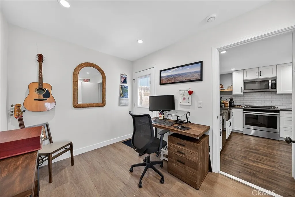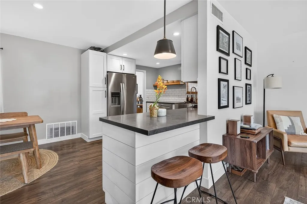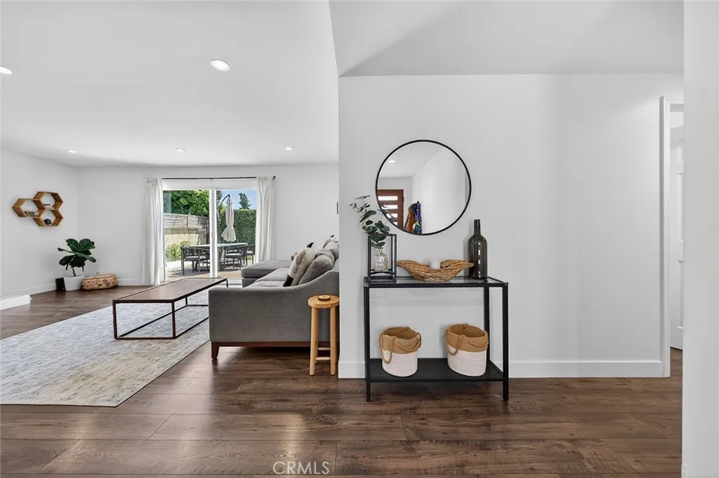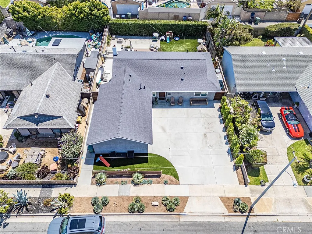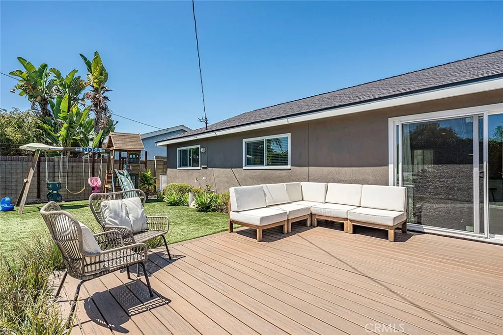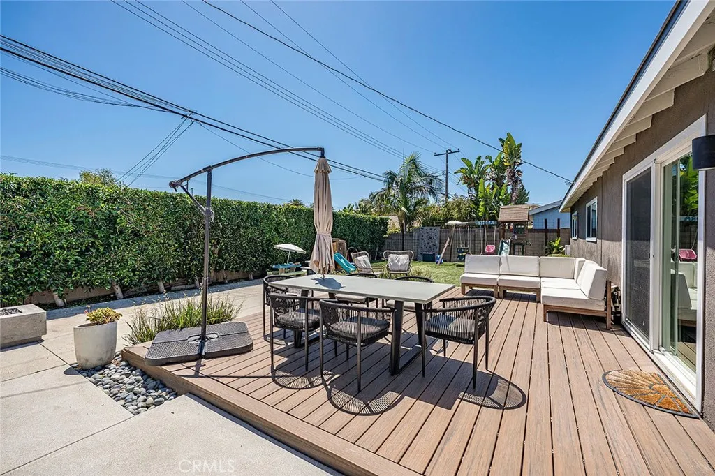 Perched within the established Huntington Village community, 5832 Middlecoff is an extensively updated single-level residence offering 3 bedrooms and 2 bathrooms, thoughtfully designed for comfortable coastal living. A well-designed open-concept floor plan connects the kitchen, dining, and living areas, creating a natural flow enhanced by abundant light. The remodeled kitchen includes updated cabinetry, countertops, appliances, and a peninsula with breakfast bar seating, opening directly to the main living spaces. The living room features a fireplace and sliding glass doors that lead to the backyard, creating an easy indoor-outdoor connection. Outdoor areas offer multiple spaces for use and entertaining, including a patio, elevated deck, fire pit area, and lawn. The primary suite includes a large closet and an updated bathroom featuring a walk-in shower with bench, while two additional bedrooms offer flexibility for a variety of living needs. A flexible space just off the kitchen may serve as an office or additional living area and provides direct access to the backyard. Interior features include recessed lighting, updated flooring, ceiling fans, and an individual laundry room. Additional improvements include updated windows and slider, HVAC system, electrical upgrades, roof, driveway, garage improvements including epoxy flooring, and landscaping. Attached garage with direct access and driveway parking. Located near local schools, parks, golf, shopping, and dining, and just minutes from the beach and Bella Terra Mall.