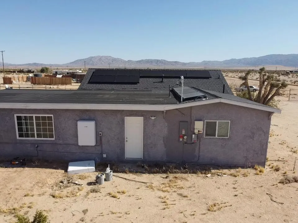 Priced to sell and ready for its next chapter -- don't miss this incredible opportunity in the heart of the Mojave. This 3-bedroom, 2-bathroom home sits on 2 private acres surrounded by breathtaking mountain views in every direction, just minutes from Joshua Tree National Park.Built for desert living, the property features a solar panel system for energy efficiency and a 2,500-gallon water storage tank -- giving you reliability and peace of mind year-round. Enjoy your panoramic mountain backdrop from the comfort of home, whether you're seeking a primary residence, vacation getaway, or investment property in one of the high desert's most exciting and fast-growing communities.Priced to move fast -- with sweeping views, wide-open skies, and room to make it your own, this 29 Palms gem won't last long. Act now before it's gone!