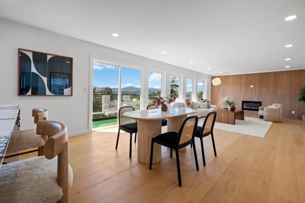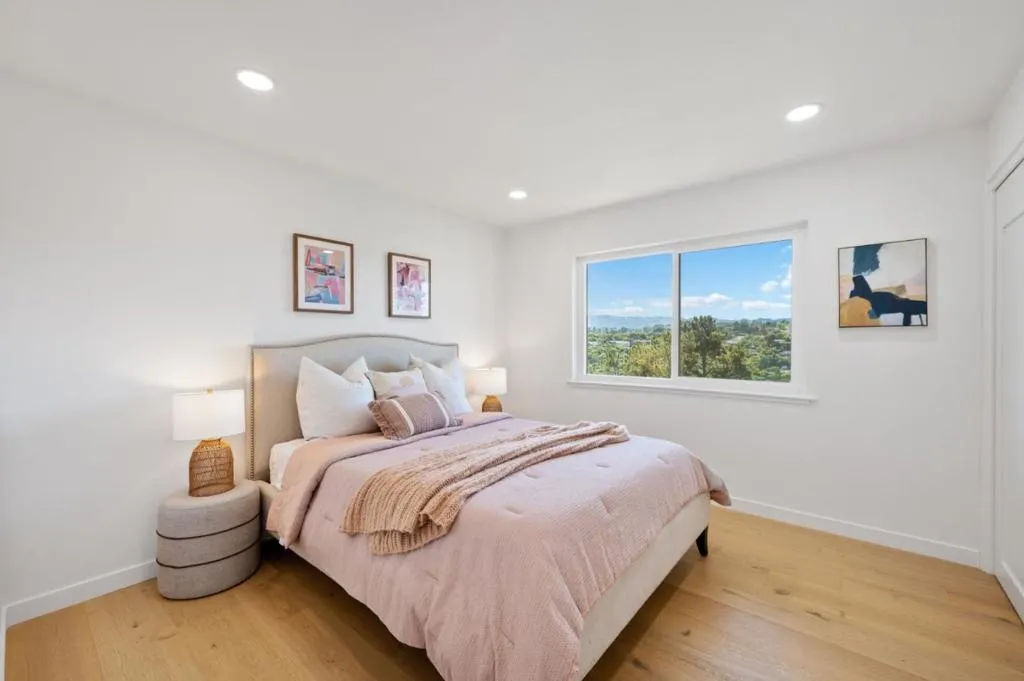 Nestled in the coveted Belmont Hills, this upgraded 4-bed, 3-bath single-family home offers a thoughtfully designed layout with stunning panoramic views of the San Francisco Peninsula. The main level features an expansive great room and gourmet kitchen with designer cabinetry, dramatic countertops, and a generous island all bathed in natural light through picture windows. A glass-railed balcony offers spectacular mountain views. A bedroom and full bath complete this level, ideal for a home office or guest suite. The lower level hosts three bedrooms, including a primary suite with a private balcony with unobstructed views, plus a dedicated laundry room and ample storage. Outside, a spacious deck anchors the landscaped backyard perfect for al fresco dining and entertaining. The unfinished basement offers three painted and floored rooms, ideal for a gym, office, or ADU conversion a rare opportunity. Refined front yard landscaping and a two-car attached garage complete the package. Steps from top-rated Carlmont High School and minutes from downtown Belmont, Caltrain, and major commute corridors hillside living at its finest. Don't miss your chance to make one of Belmont's most exceptional homes your own!
