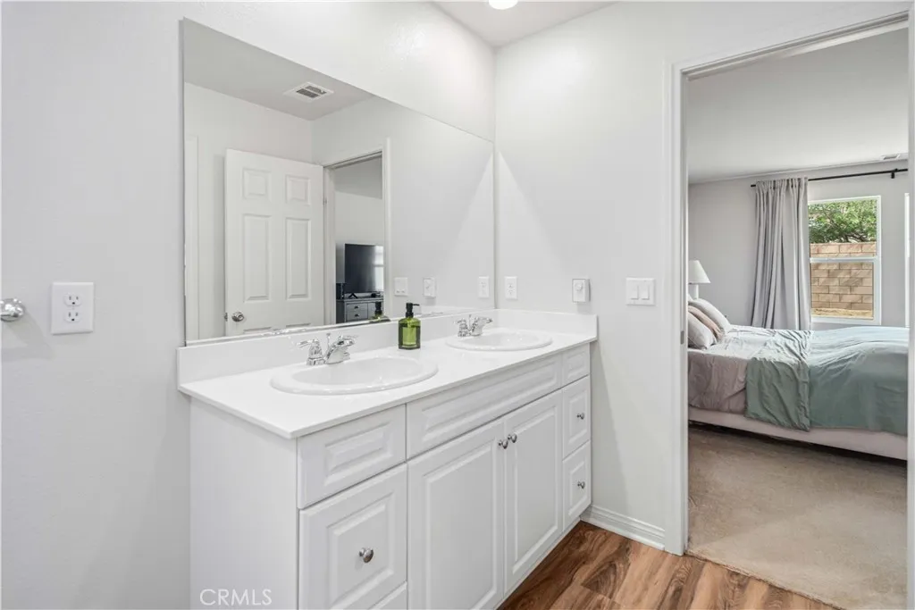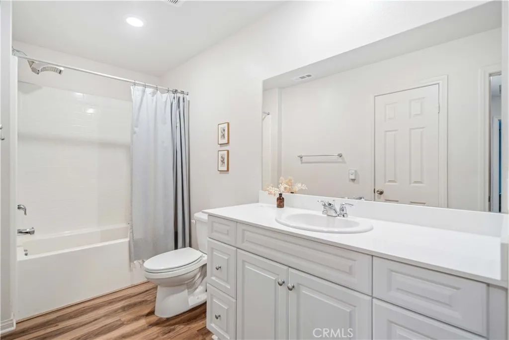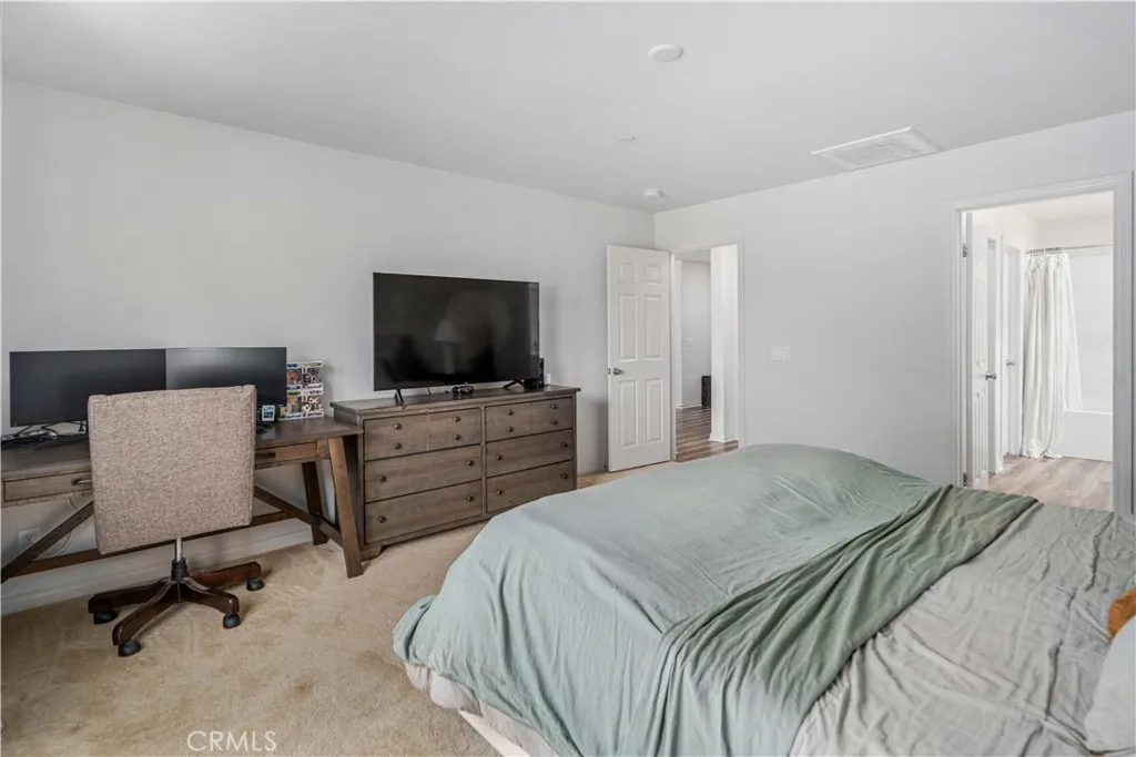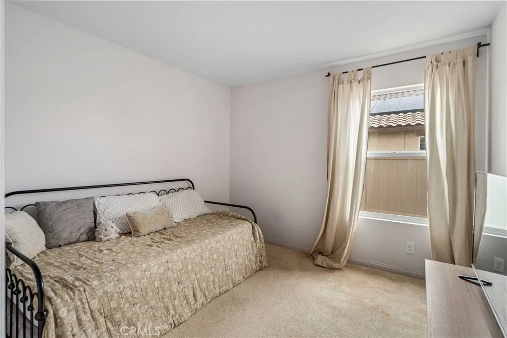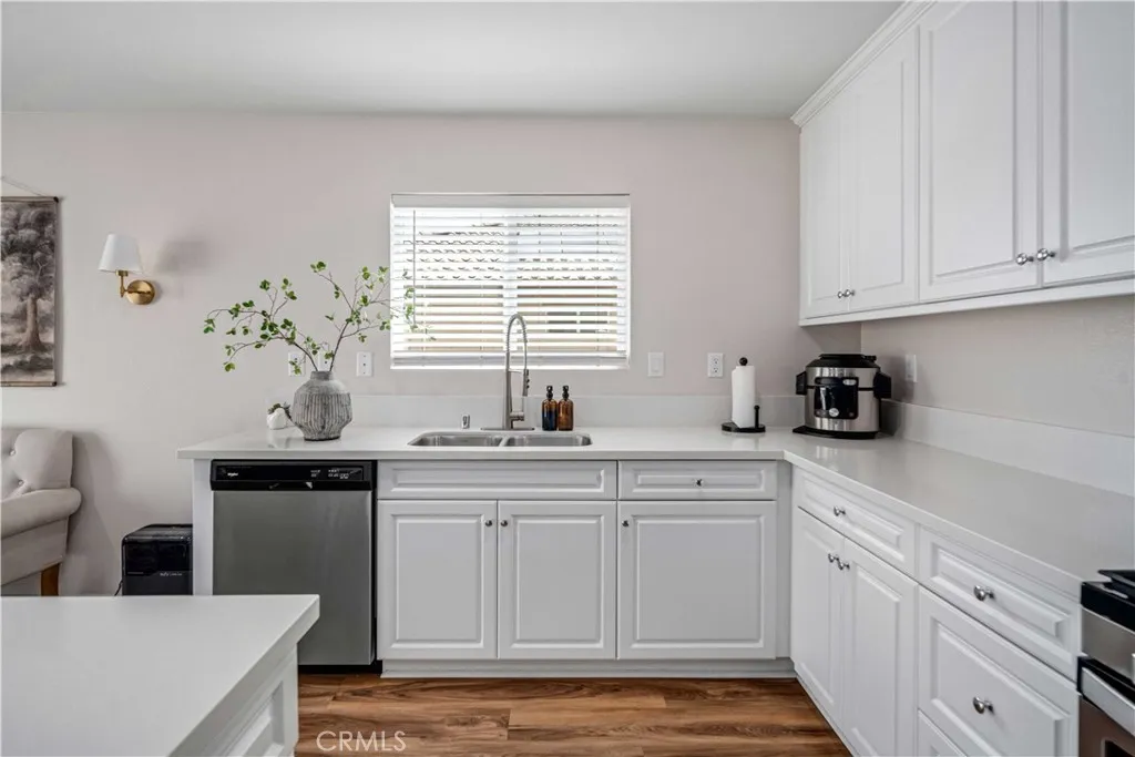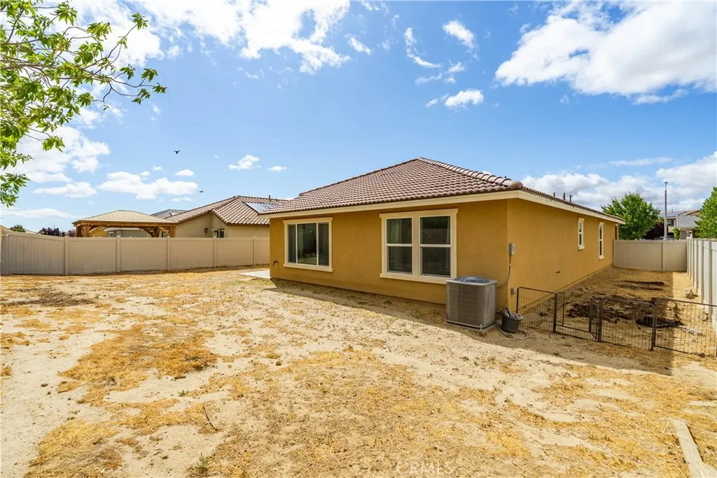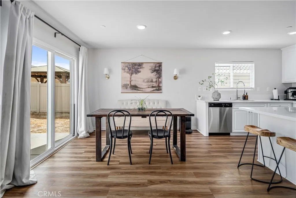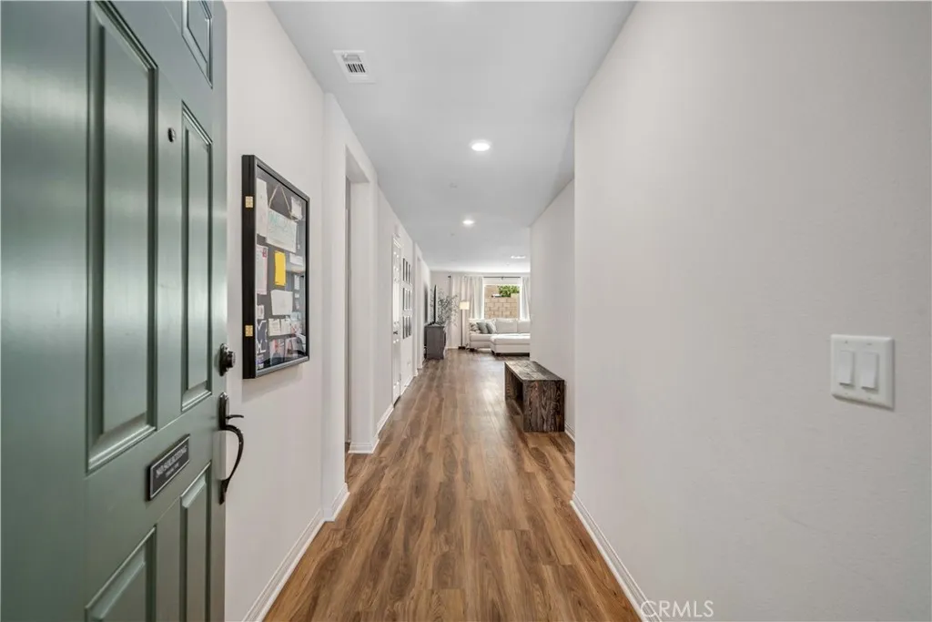 Welcome to this beautifully maintained 2019-built home offering 4 bedrooms and 2 bathrooms, thoughtfully designed for both comfort and convenience. Step inside to a bright, open-concept floor plan featuring recessed lighting and luxury vinyl plank flooring resembling hardwood throughout all main living areas, creating a seamless flow between the living, dining, and kitchen spaces—perfect for everyday living and entertaining. The kitchen serves as the heart of the home, showcasing a large quartz island, upgraded stainless steel appliance package with microwave above the stove, upgraded Samsung smart refrigerator, cabinet above the fridge for added storage, abundant counter space, and crisp white cabinetry—combining both style and functionality for gatherings of any size. Quartz countertops are featured in both the kitchen and all bathrooms for a cohesive, modern finish. The spacious primary suite is privately positioned away from the additional bedrooms, providing a peaceful retreat to relax and unwind. The secondary bathroom includes an extended vanity, offering additional space and convenience. Enjoy modern, energy-efficient features including solar panels, a tankless water heater, smart thermostat, and fire sprinkler system—providing both comfort and potential cost savings. The low-maintenance front yard is designed with drought-tolerant landscaping and a drip irrigation system for easy upkeep. Completing the home is a two-car garage providing added convenience and storage.