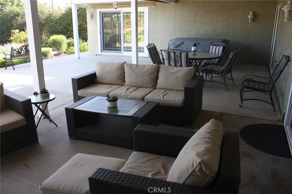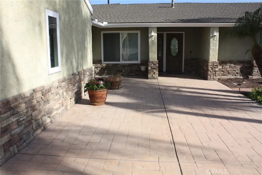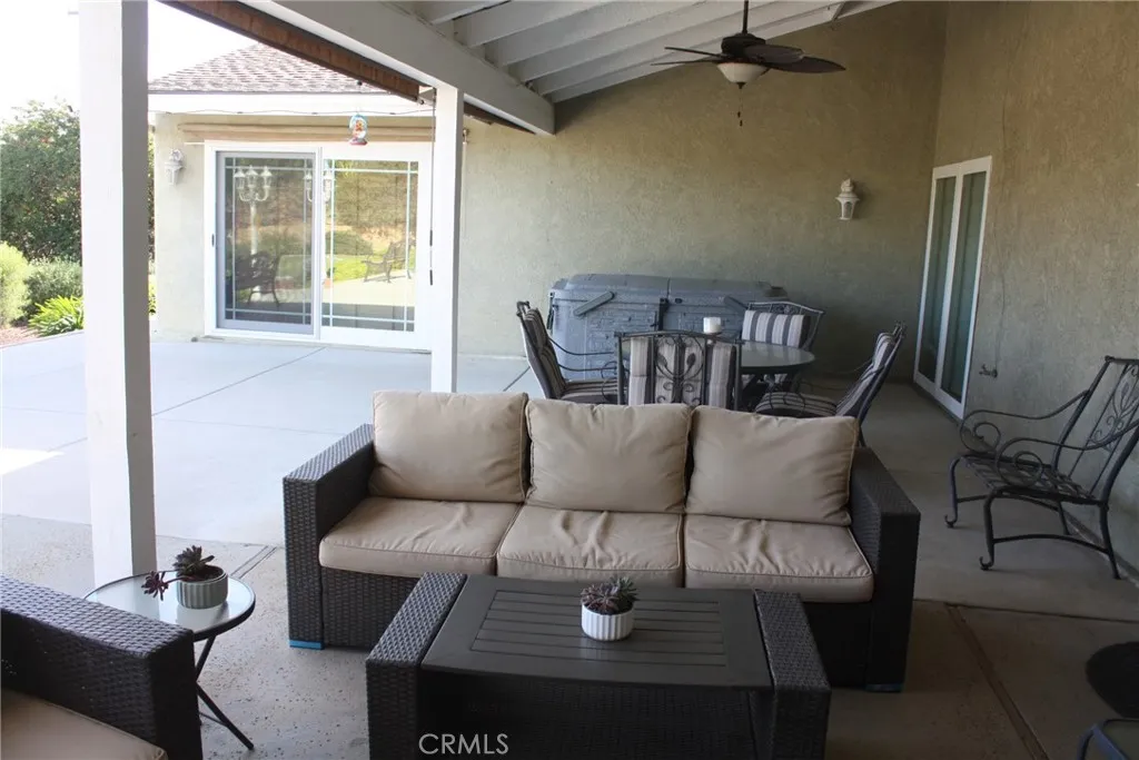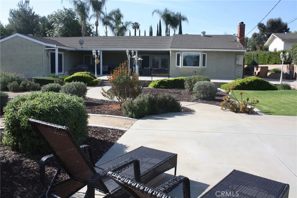 Woodcrest location; located at the end of a Cul-de-sac. This single story 4-bedroom 2 bath home has been updated and sits on over 1/2 acre. New Optimax Hybrid Resilient wood flooring that is free of PVC. Tile in kitchen, bathrooms and laundry area. Large living room that opens to a large, covered patio makes it perfect for entertaining. Large open kitchen offers an abundance of cabinets. Large Island in center of kitchen doubles as a great eating area/conversation table. Bathrooms have been updated, Manicured landscaping in front and back. Large, covered Patio with a TV, and more uncovered with lighting along the length. 3 lemon trees, 4 orange trees, DG pathways compliment various areas of many flowering shrubs that bring butterflies, various birds and bees. Half Basketball court on side surrounded by grass. Eco-Spa and Patio furniture included. Gardener included. Refrigerator, washer and dryer included.