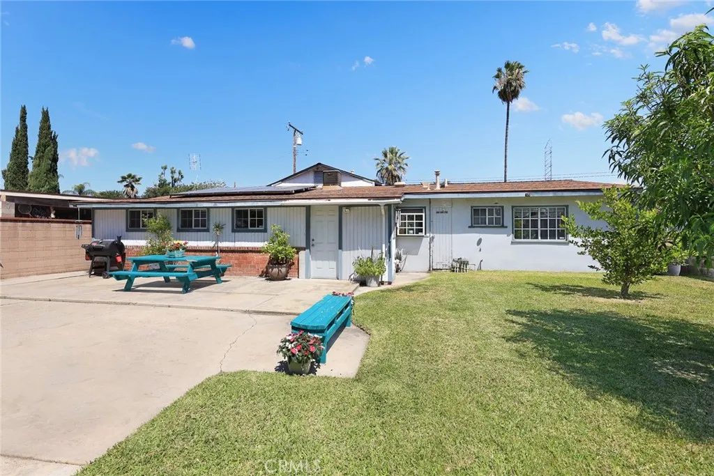 Cozy Azusa home with a comfortable layout and plenty of indoor and outdoor space. The spacious living and dining room combination connects to the kitchen, which offers a good amount of cabinets and room for a breakfast table. The property features three good-sized bedrooms and one bathroom, along with a BONUS ROOM that adds flexibility and includes washer and dryer hookups and additional cabinets for extra storage. The backyard is private with trees and plants and offers open space for gardening or relaxing, with two sheds providing extra room for tools or belongings. The Dalton Bike Path runs behind the property, with nearby access for biking, walking, or jogging. Additional features include a one-car garage, a spacious front yard, an electric gate for added convenience, and PAID SOLAR PANELS. This is a good option for a first-time buyer looking for space, privacy, and access to nearby outdoor areas.