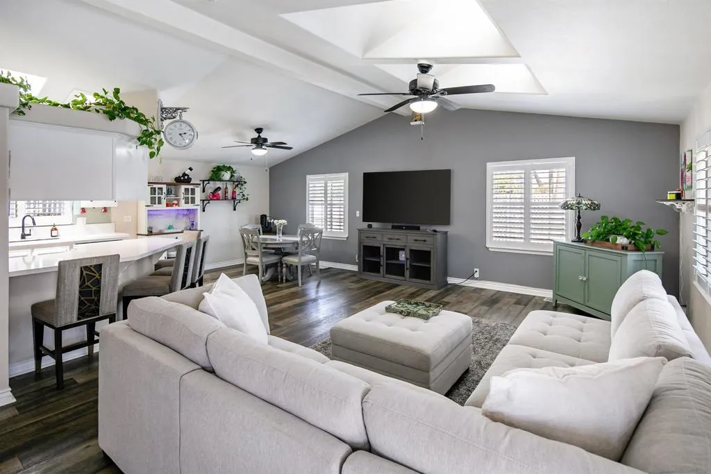 Welcome to this beautifully upgraded 3-bedroom, 2-bath home in a desirable 55+ community with a low space rent, offering comfort, style, and low-maintenance living. This thoughtfully updated residence features an open, inviting floor plan filled with abundant natural light, creating a warm and welcoming atmosphere throughout. Enjoy upgraded flooring and recessed lighting, while providing modern appeal. The refreshed kitchen includes contemporary finishes and flows seamlessly into spacious living and dining areas, ideal for relaxing or entertaining. The primary suite serves as a private retreat with an en-suite bath, while two additional bedrooms offer flexibility for guests, hobbies, or a home office. Recent upgrades include a new roof, adding long-term value and durability. Step outside to a charming fenced-in porch, perfect for morning coffee or evening relaxation, surrounded by mature palm trees that create a peaceful, coastal-inspired setting. Residents enjoy access to a community clubhouse featuring a large heated pool and spa, perfect for socializing and staying active. Conveniently located near shopping, dining, and local attractions, this move-in-ready home is a wonderful opportunity to enjoy easy, comfortable 55+ living.