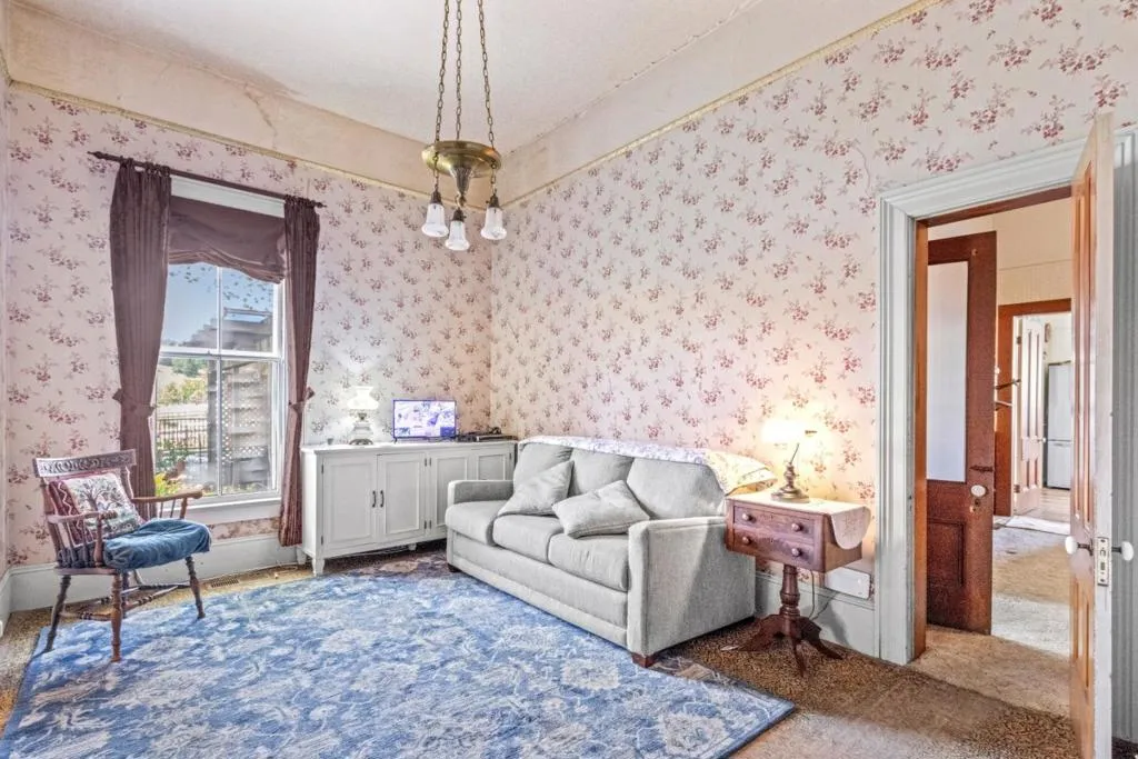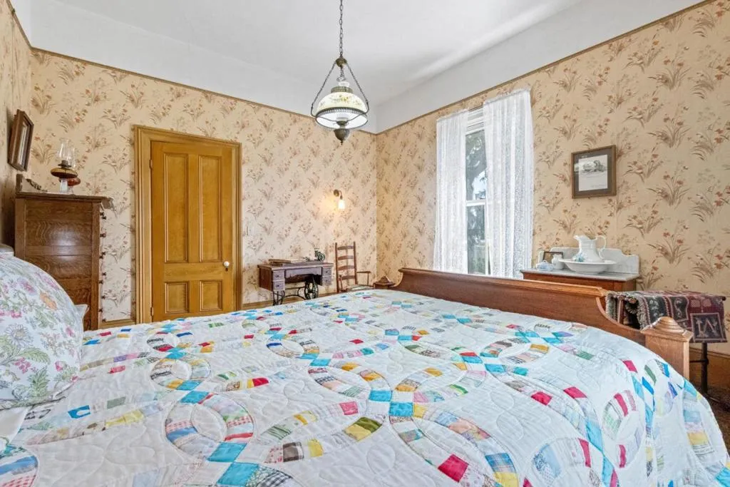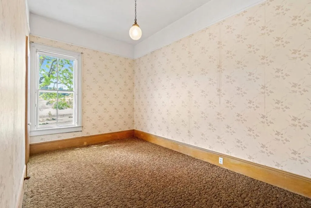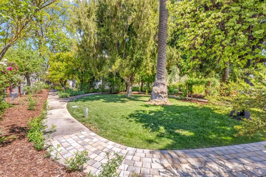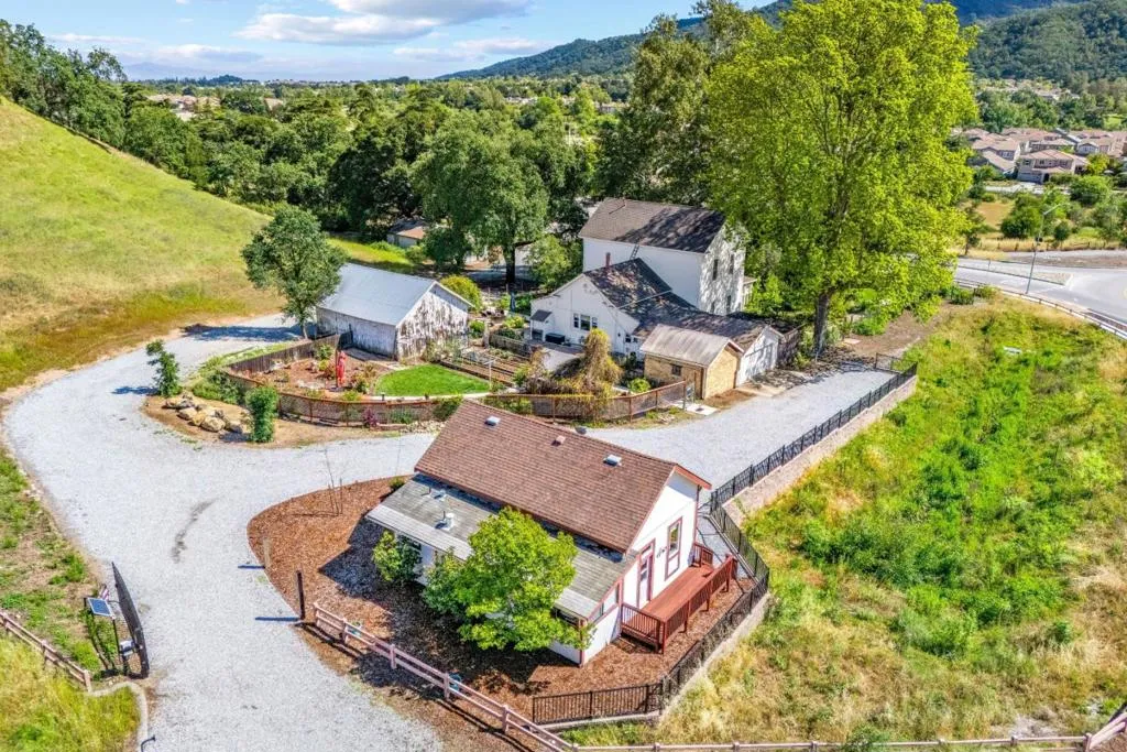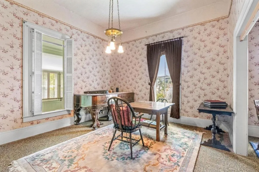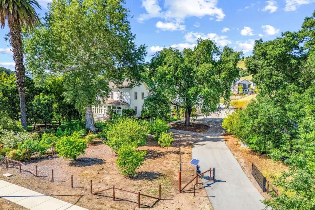 Own a rare piece of California history on 12+ acres, established in 1854 by Electa Ousley. This 3,731 sq. ft. residence reflects the elegance of 19th-century agrarian life, with architectural details largely untouched by time. Held by only one family since its 1872 completion, the home offers a deep sense of heritage. Original wood-frame windows line the front, while 12-ft ceilings and a dramatic 24-ft entry hall create a grand arrival. Lathe-and-plaster walls, original fixtures, and a mahogany banister showcase period craft. Solid redwood doors feature hand-painted faux designs on amber-stained panels. The layout flows from a Victorian hallway into an Arts and Crafts dining room. Built on a foundation of concrete/native stone from the ranch, the home is shaded by a 100 year-old Sycamore in a garden of Victorian-era plantings and heritage roses now preserved in the San Jose Heritage Rose Garden to carry the legacy forward.