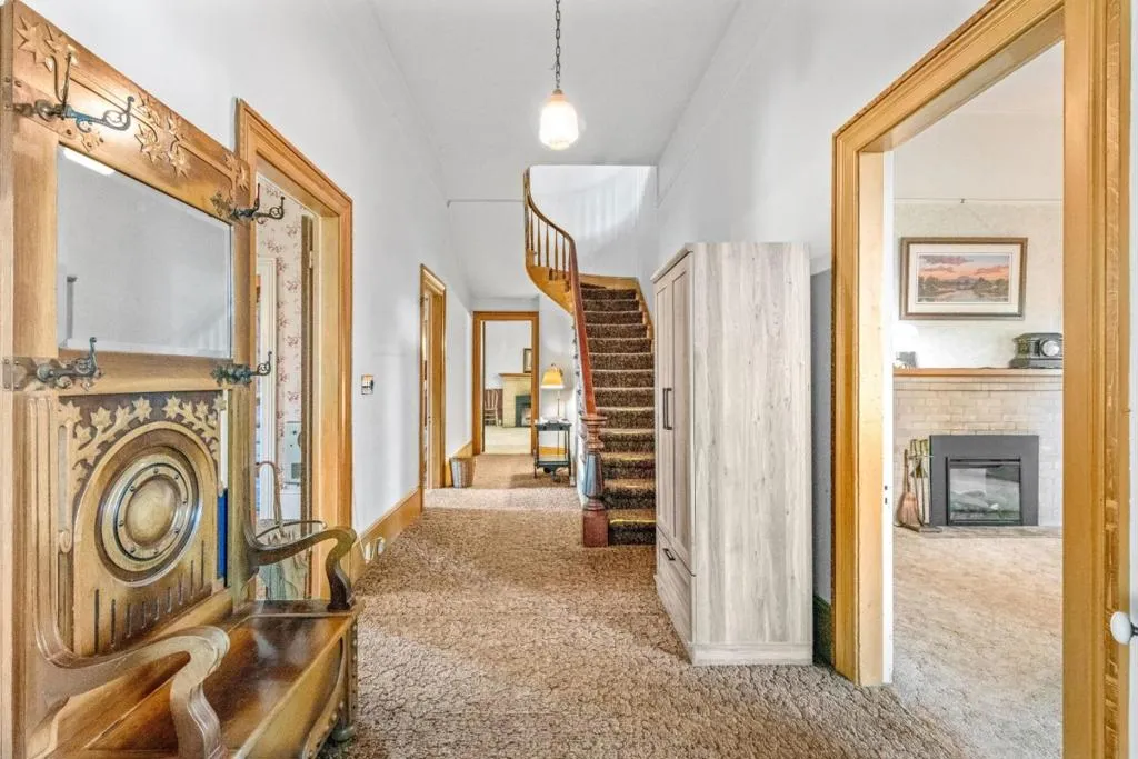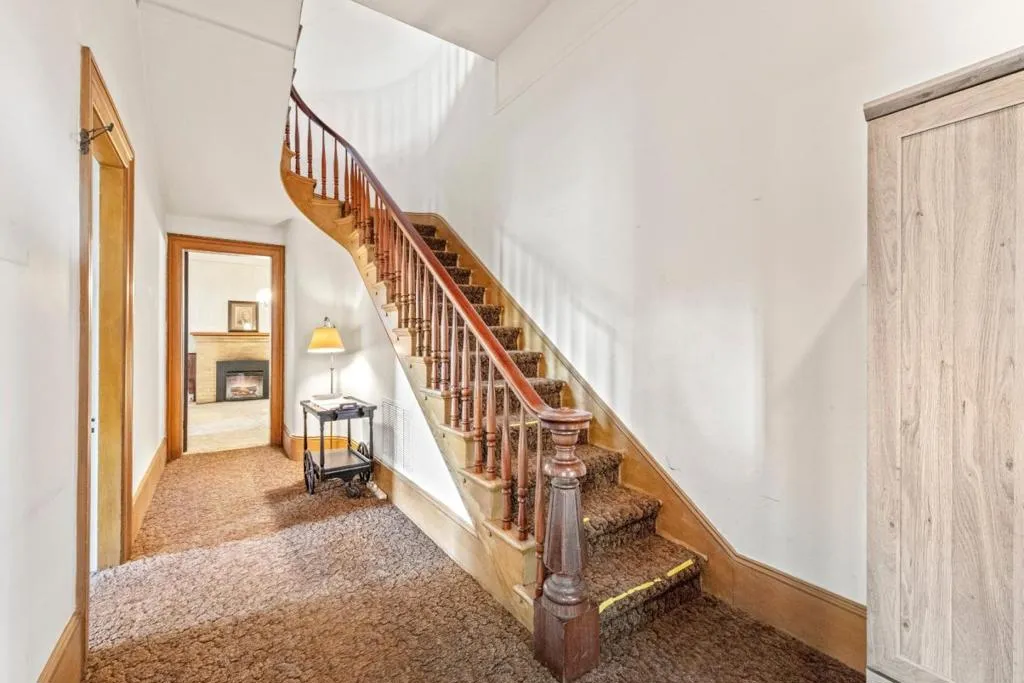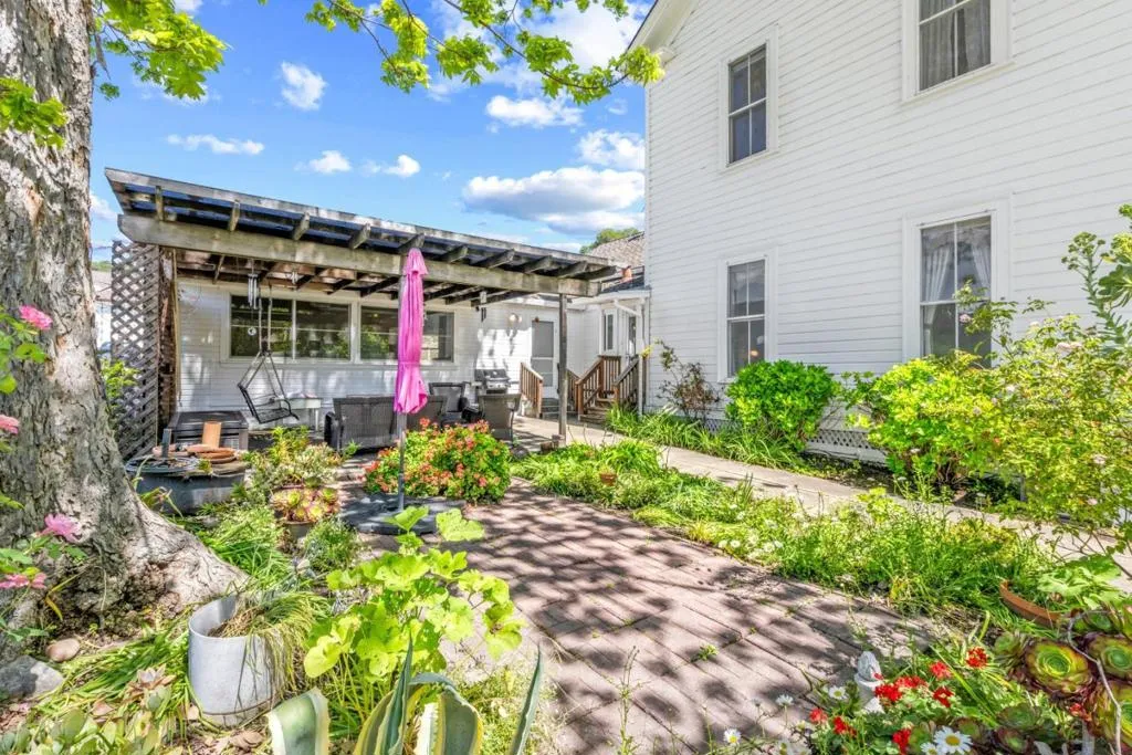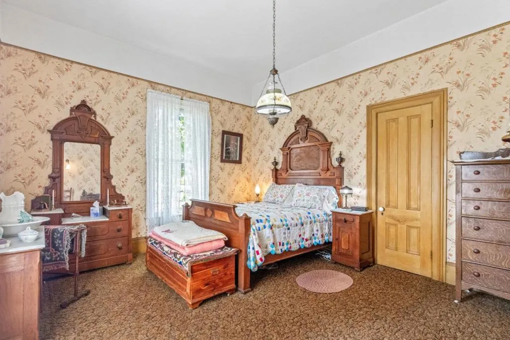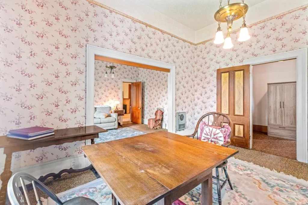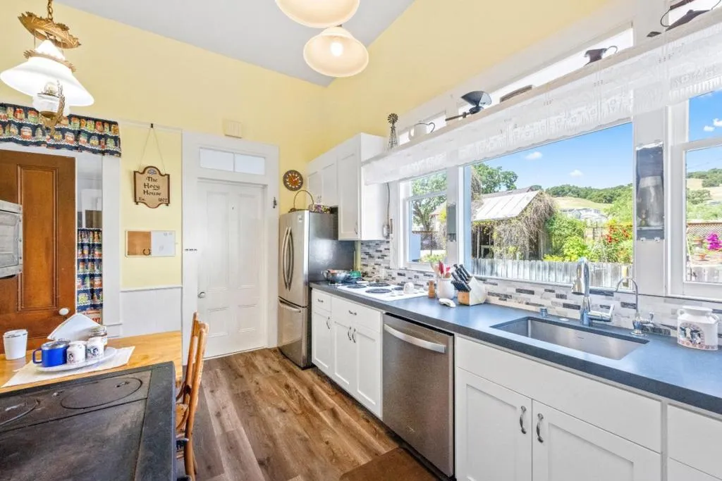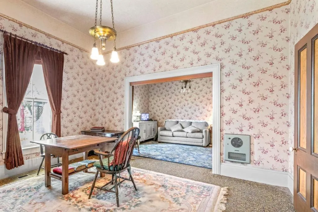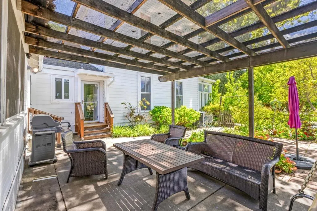 Own a rare piece of California history on 12+ acres, established in 1854 by Electa Ousley. This 3,731 sq. ft. residence reflects the elegance of 19th-century agrarian life, with architectural details largely untouched by time. Held by only one family since its 1872 completion, the home offers a deep sense of heritage. Original wood-frame windows line the front, while 12-ft ceilings and a dramatic 24-ft entry hall create a grand arrival. Lathe-and-plaster walls, original fixtures, and a mahogany banister showcase period craft. Solid redwood doors feature hand-painted faux designs on amber-stained panels. The layout flows from a Victorian hallway into an Arts and Crafts dining room. Built on a foundation of concrete/native stone from the ranch, the home is shaded by a 100 year-old Sycamore in a garden of Victorian-era plantings and heritage roses now preserved in the San Jose Heritage Rose Garden to carry the legacy forward.