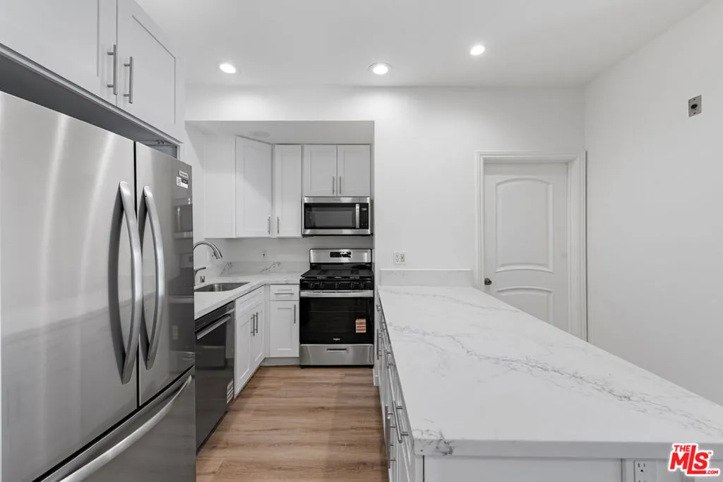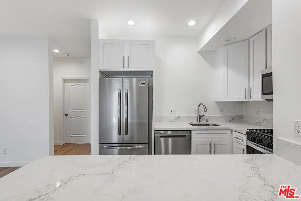 This well-appointed first-floor residence is situated above subterranean parking and offers a functional and spacious layout featuring 3 bedrooms and 3 full bathrooms. The unit has been recently updated with new flooring and modern finishes throughout, providing a clean and contemporary living environment. The open living area includes abundant natural light, recessed lighting, and direct access to a private balcony, ideal for indoor-outdoor living. The kitchen is equipped with new stainless steel appliances, quartz countertops, and ample cabinetry, offering both style and practicality. Each bedroom is generously sized, with well-designed closet space, while the bathrooms feature updated fixtures and finishes. Additional highlights include in-unit washer and dryer, central air and heat, and a well-maintained building with a landscaped courtyard. Conveniently located with easy access to nearby amenities, shopping, dining, and major transportation routes. Move-in and Move-out cost will be $200 each.