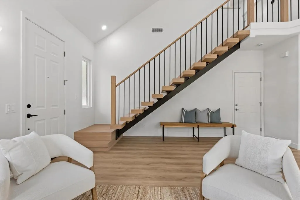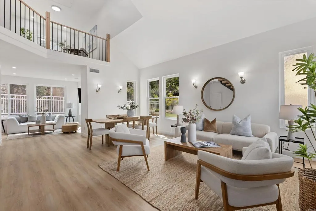 A truly one-of-a-kind home in the heart of Encinitas, this extensively remodeled residence blends modern design, thoughtful upgrades, and effortless indoor-outdoor living on one of the largest lots in the neighborhood. A standout feature is the fully owned solar system with backup battery on SDG&E NEM 2.0, offering long-term efficiency and peace of mind. Beautifully refreshed landscaping and an enhanced front porch create a warm and inviting entry. Inside, a striking modern floating staircase serves as an immediate focal point, setting the tone for the home’s open and airy feel. The first floor flows seamlessly, with subtle architectural improvements that create a connected and welcoming layout filled with natural light and backyard views. A completely remodeled kitchen, thoughtfully designed with brand-new stainless steel appliances and timeless finishes complements the modern aesthetic. New luxury vinyl plank flooring runs throughout, paired with fresh interior paint, updated lighting, and all-new windows and doors that enhance both style and energy efficiency. Large new sliding door open to a spacious backyard featuring an expansive grassy area and inviting hardscape seating, ideal for entertaining, relaxing, or everyday living. Upstairs offers three well-appointed bedrooms along with a true bonus space, perfectly suited for a home office, playroom, or additional living area. Closets have been thoughtfully built out, and the bathrooms have been beautifully updated, including a refreshed powder room and an upgraded primary bath. Beyond the design, the home has been improved where it matters most, including a recently replaced HVAC system, upgraded electrical panel, Tesla charger, new attic insulation with ladder access, and insulated garage doors with smart openers. The exterior has also been enhanced with fresh trim and door paint, concrete resurfacing, and a sand and epoxy sealed driveway, adding to the home’s overall curb appeal and functionality. This is a rare opportunity to own a turnkey home in Encinitas that has been thoughtfully upgraded throughout, offering a seamless blend of style, comfort, efficiency, and space, ready to be enjoyed from day one.