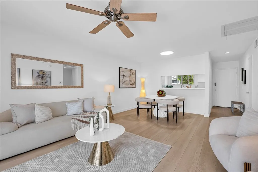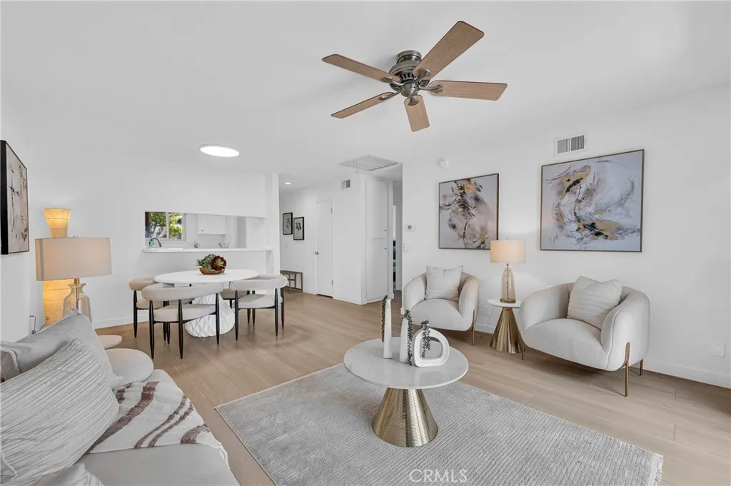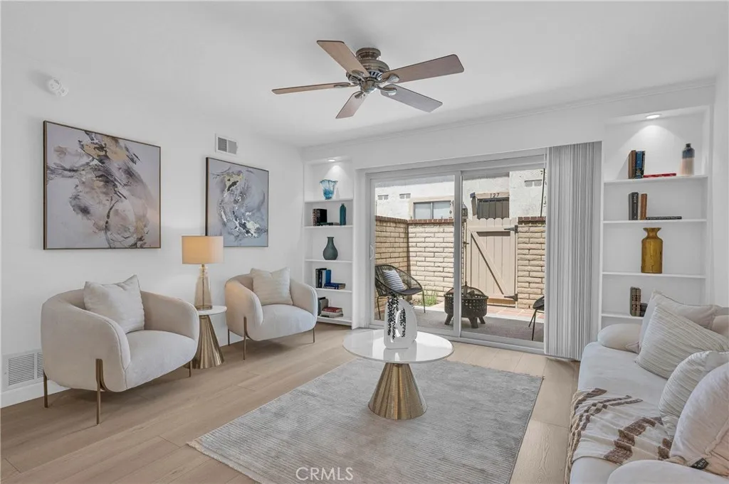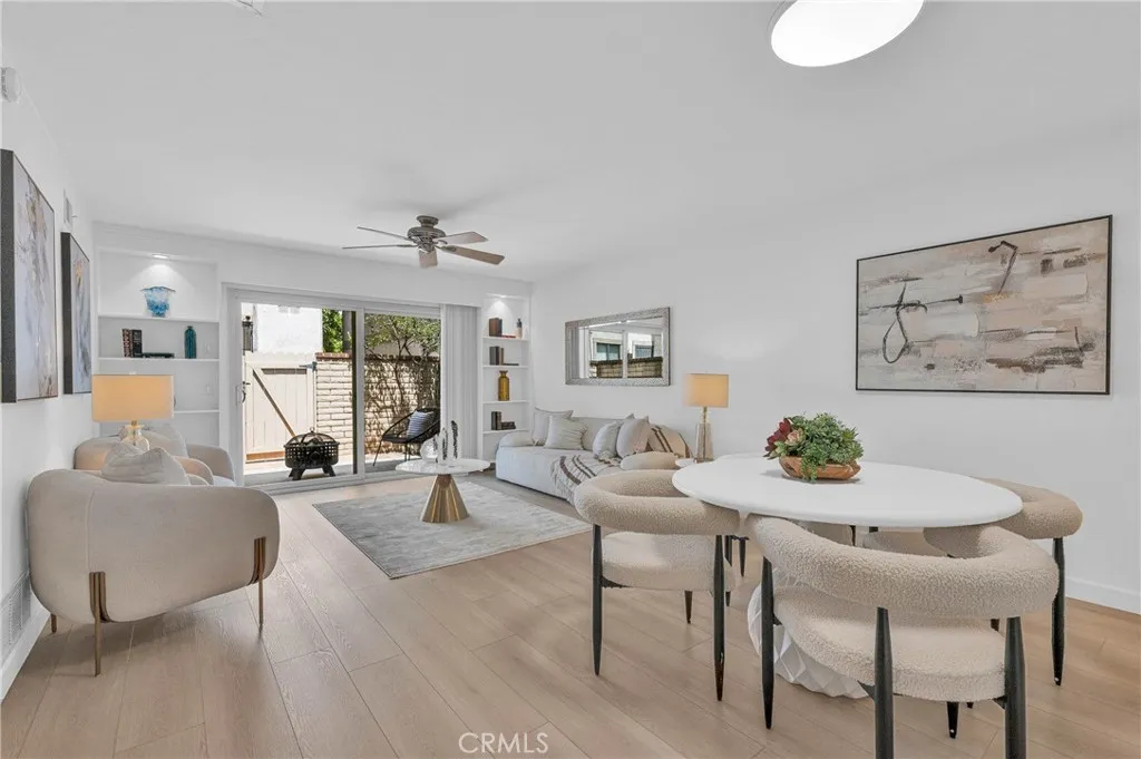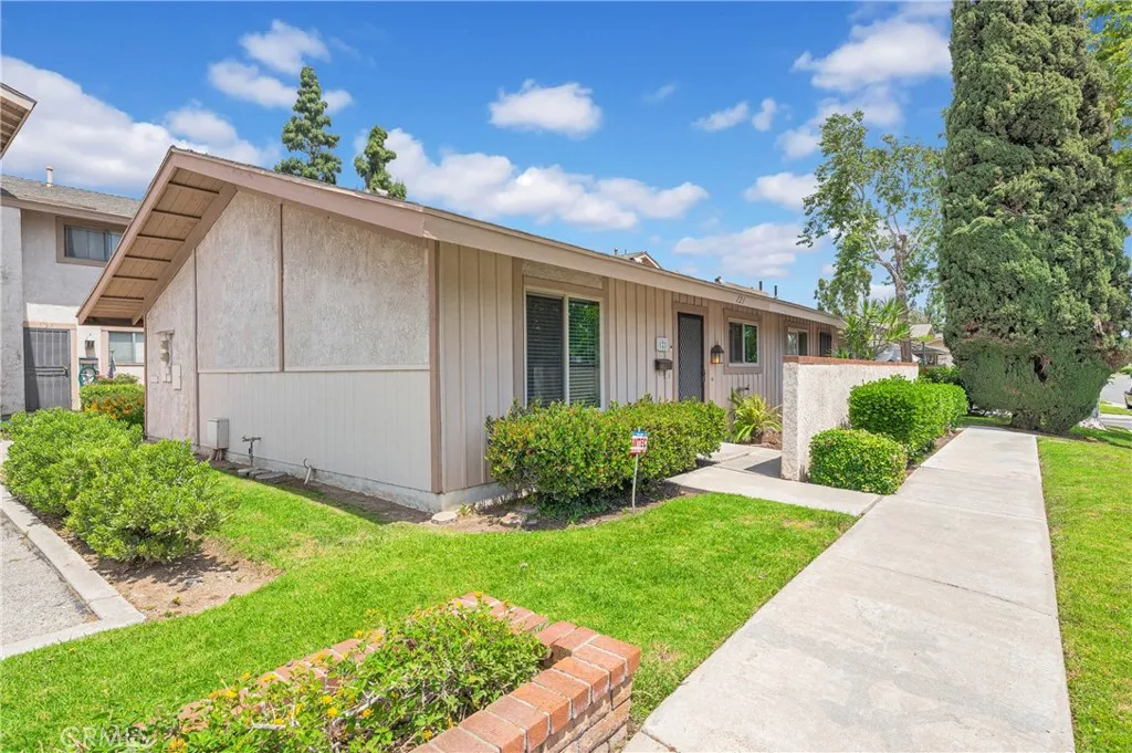 Rarely available and truly unique, this newly upgraded single-level end-unit townhome offers the privacy and feel of a single-family home, with no unit above and one of only two exclusive units in the community featuring this highly desirable floor plan. The fully remodeled kitchen features quartz countertops, newer cabinetry, updated stainless steel appliances, and an open-concept layout that flows seamlessly into the dining and living areas, creating a bright, spacious, and highly functional living environment. The inviting living room opens directly to a private backyard-style patio, offering rare indoor-outdoor convenience and a lifestyle feature seldom found in townhome living. Two spacious bedrooms offer excellent proportions, large closets, and everyday comfort, while newer laminate flooring runs throughout the home. The bathroom has also been fully remodeled with a new vanity, updated fixtures, and tasteful finishes. Brand new dual-pane windows and sliding doors enhance natural light, energy efficiency, and overall modern appeal. Additional upgrades such as recessed lighting, newer HVAC, and an attic fan provide year-round comfort and practical energy efficiency. This highly efficient single-level layout is ideal for students, professionals, seniors, or anyone seeking easy, stair-free living. The property also includes a one-car private garage, two additional community parking permits, and access to community amenities including a swimming pool, recreation room, and beautifully maintained park-like grounds. Conveniently located near shopping, dining, banks, major freeways (57, 55, and 91), Troy High School, and California State University, Fullerton, this rare home offers exceptional versatility, convenience, and long-term appeal for both owner-occupants and investors.